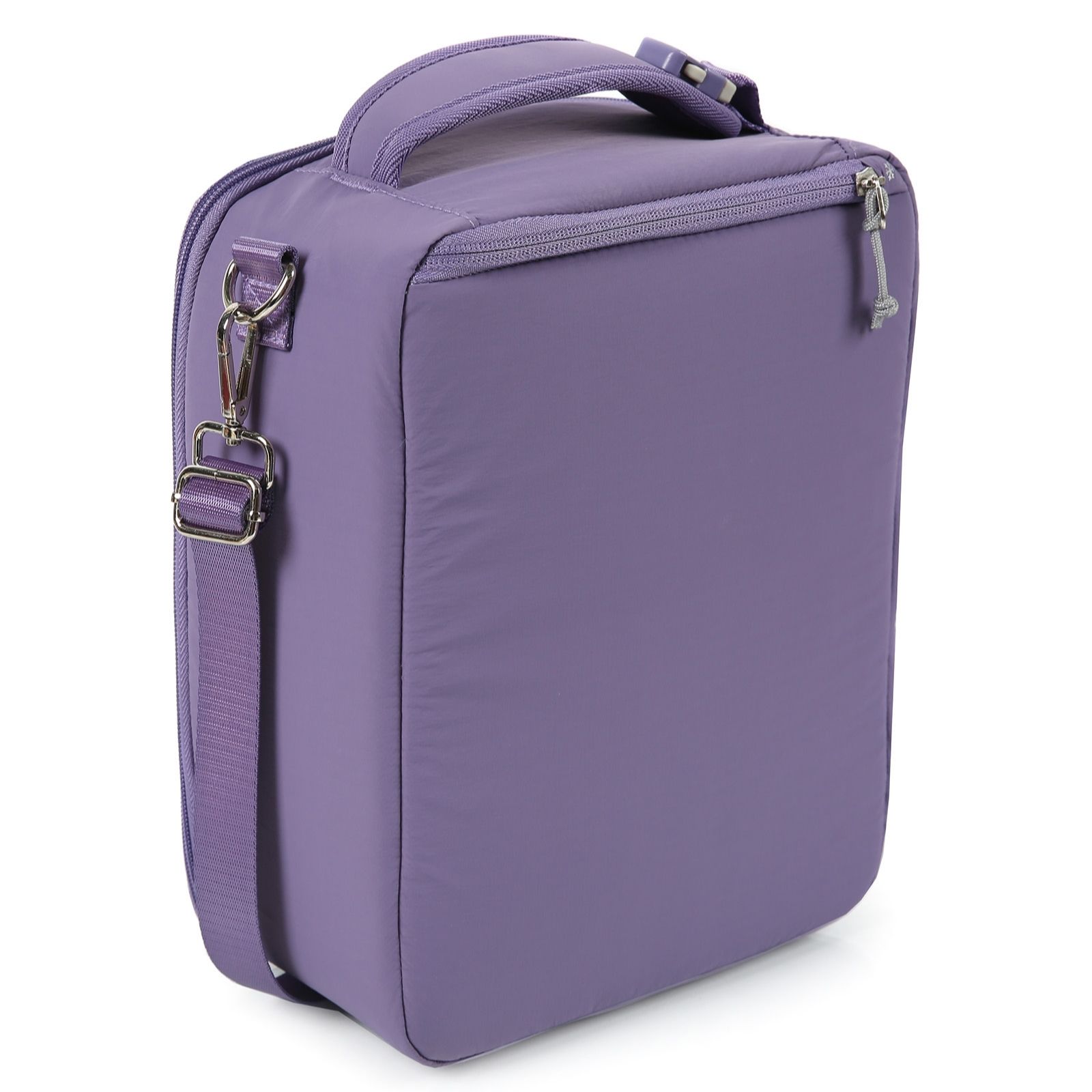 - Adjustable, removable shoulder straps and carry handle with snap-on side release clip