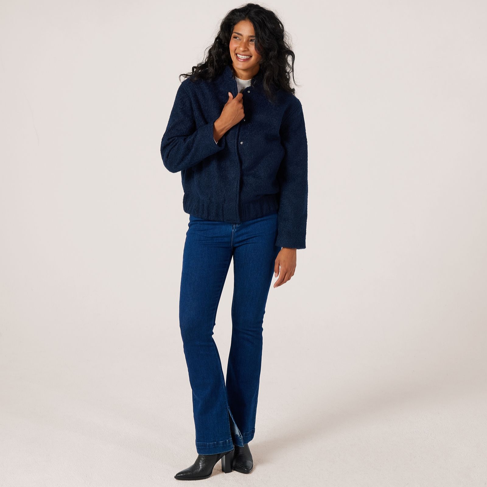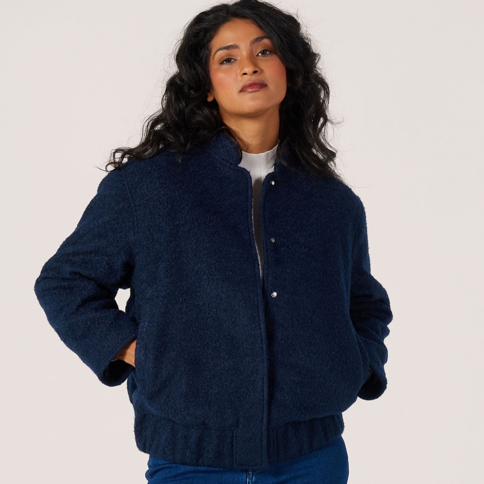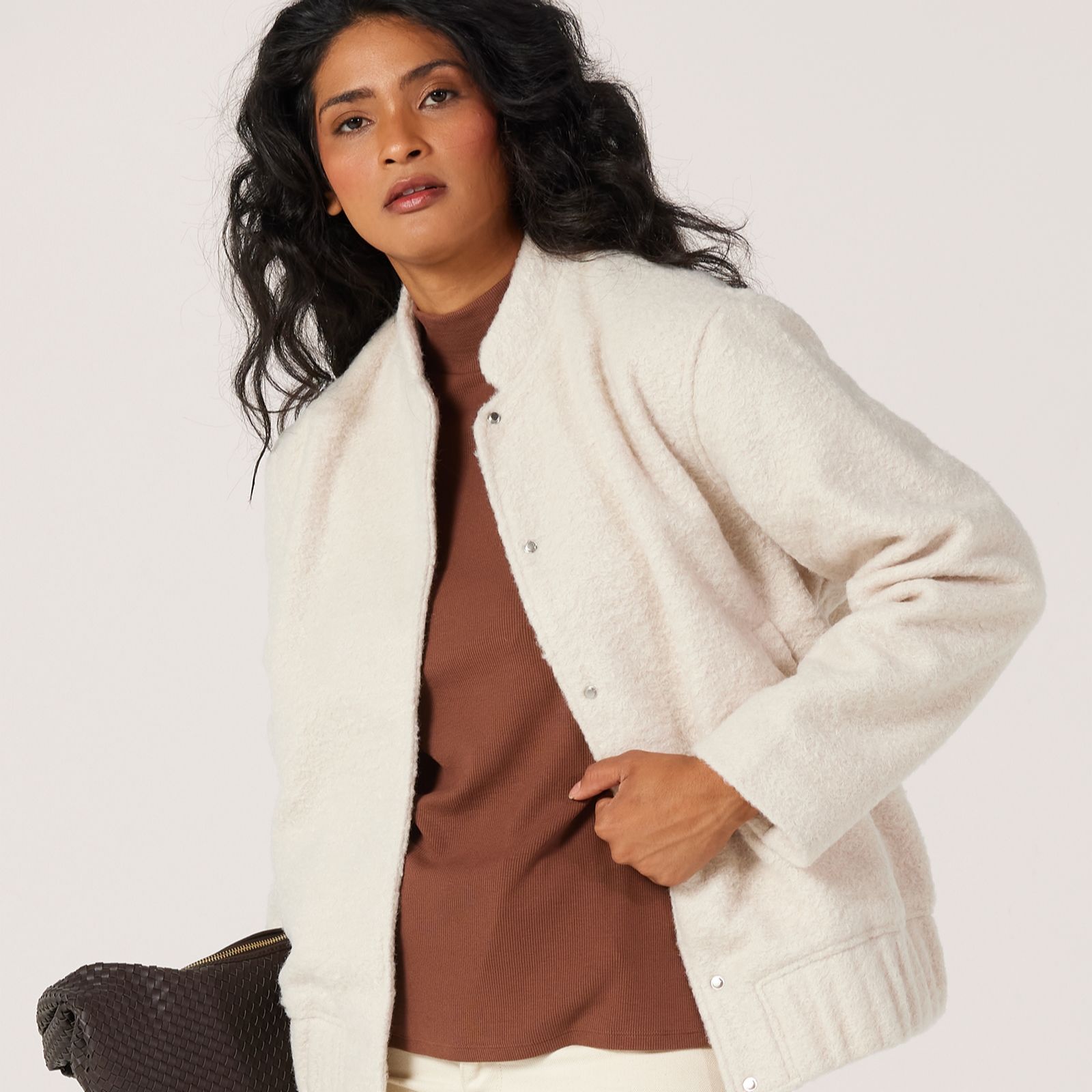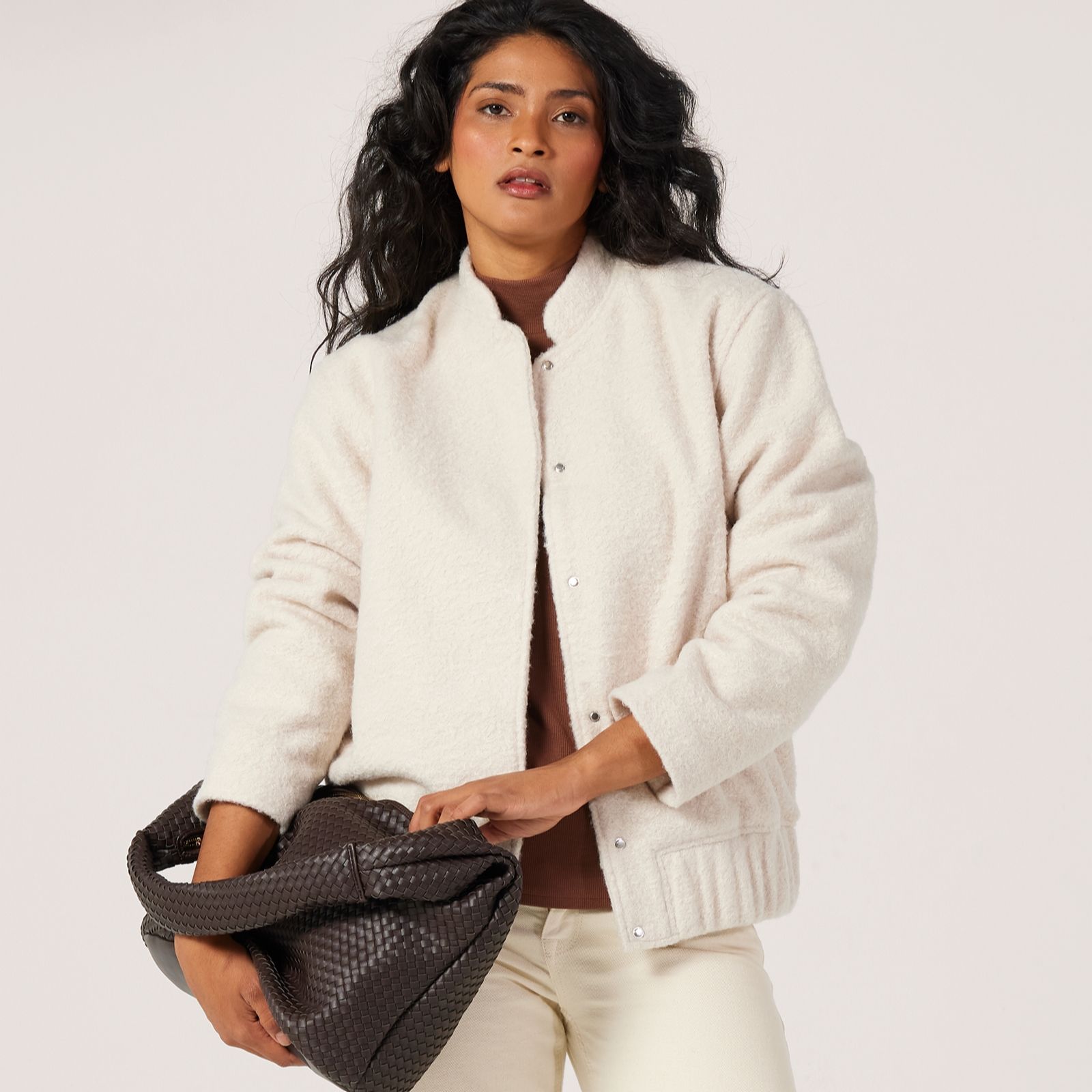 Bring a new dimension to your wardrobe with the Centigrade boucle bomber, designed to add cosy character and a touch of urban flair to your autumn looks. This bomber features a faux wool effect texture and elasticated hem that creates an effortlessly modern silhouette, while the discreet popper front keeps it sleek for everyday layering. Pair it with wide-leg trousers or a midi skirt for an easy, fashion-forward ensemble.