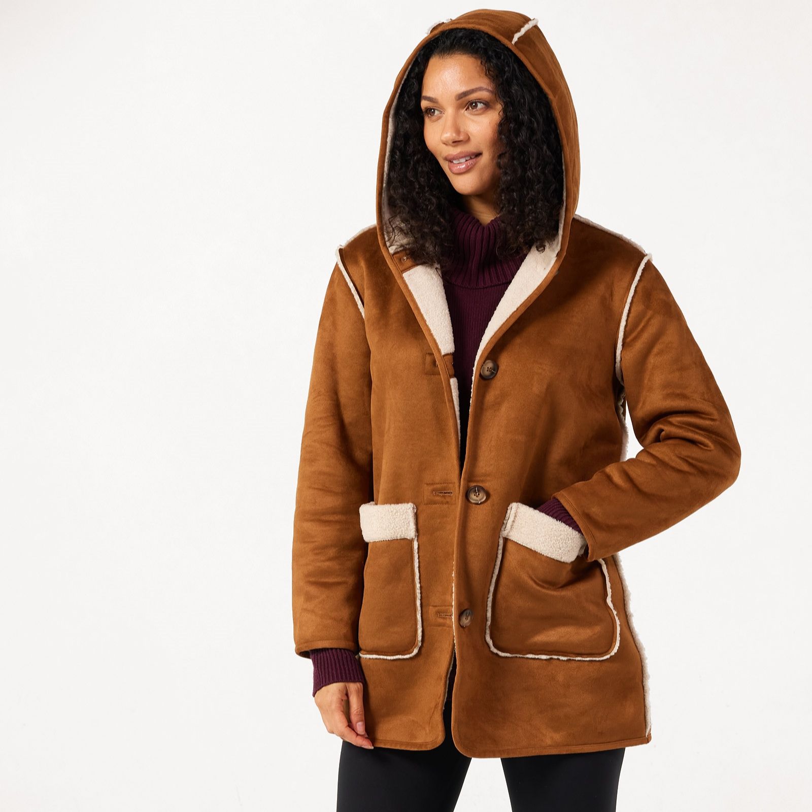 Envelop yourself in the plush comfort of the Centigrade faux-suede bonded hooded coat, designed to bring a touch of refined elegance to your everyday layering. With its button-up front, practical hood and chic patch pockets, this snuggly coat is ideal for everything from weekends out to weekday commutes. For effortless style, pair it with skinny jeans and ankle boots for a polished, modern look.