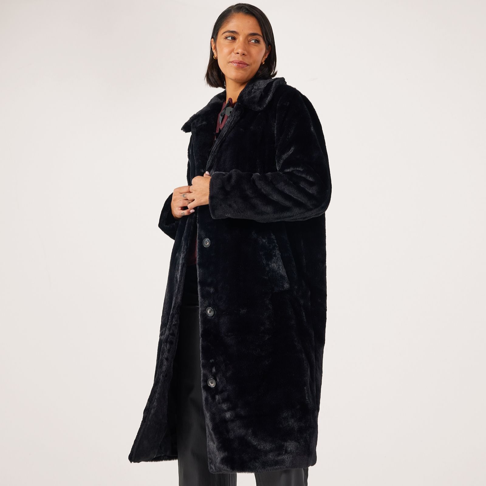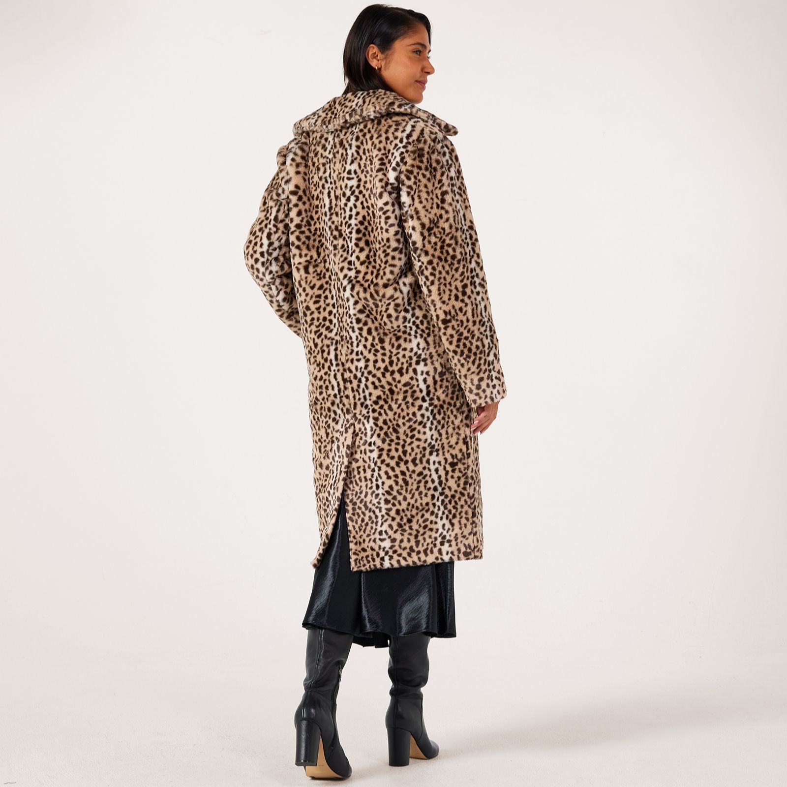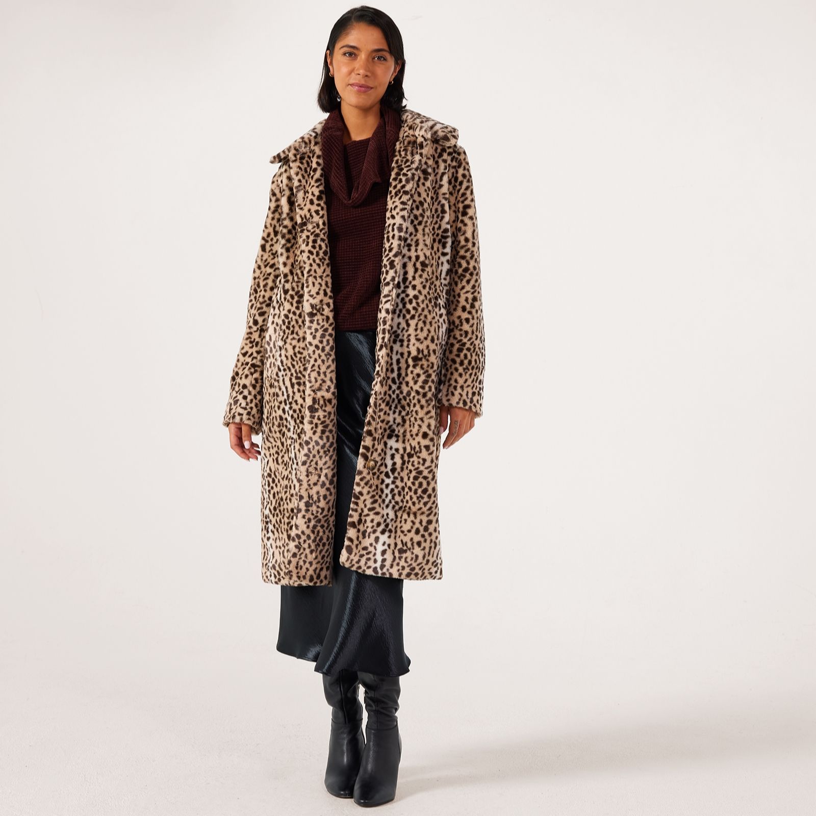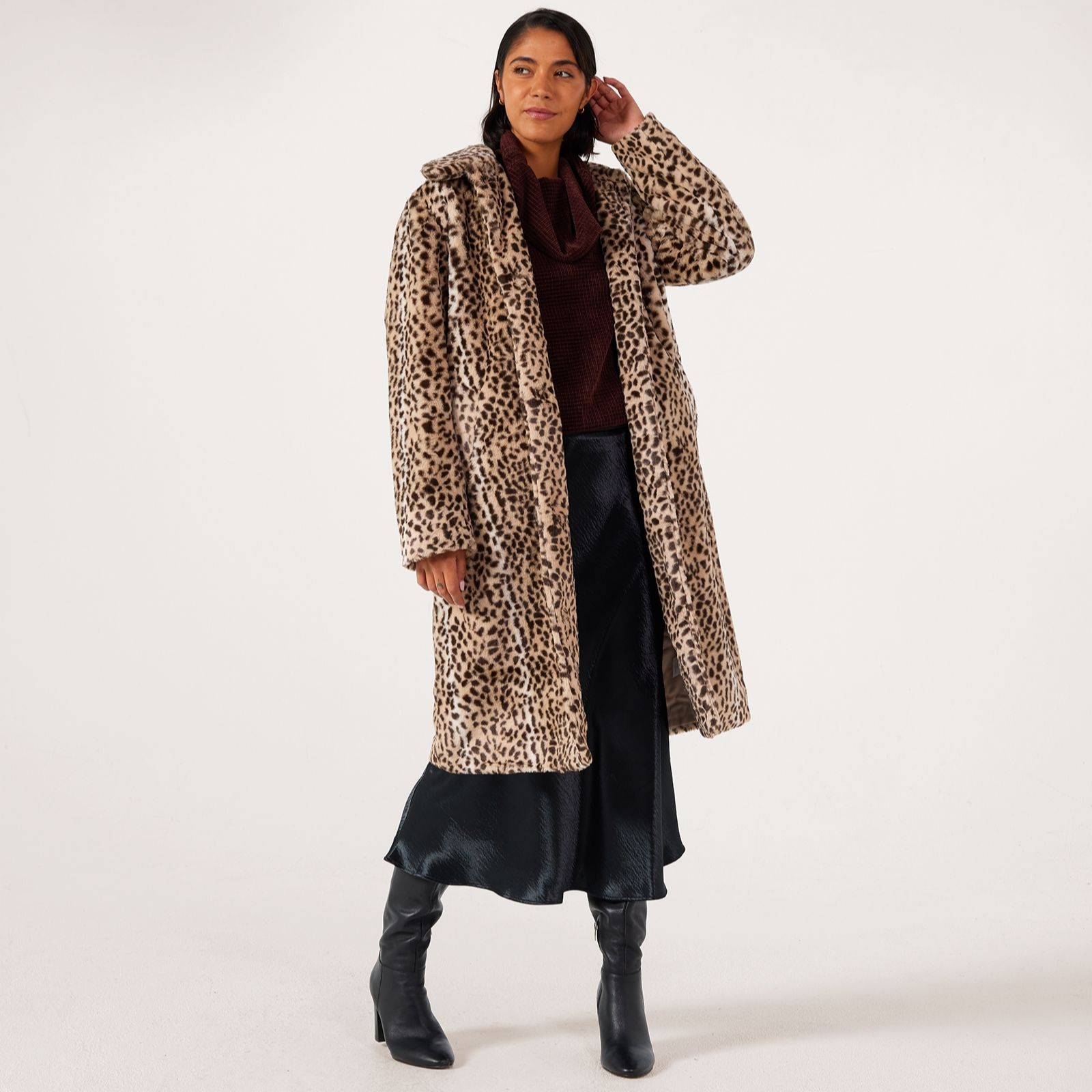 Make your mark in the Centigrade long line faux fur coat, where a bold leopard print and structured collar combine for a look that's as chic as it is statement-making. Perfect for elevating winter walks, coffee dates or evening outings, this mid-length coat transitions seamlessly from casual daytime to dressed-up ensembles. Try layering it over a roll-neck top and sleek skirt for a 'purrfectly' glamorous finish.