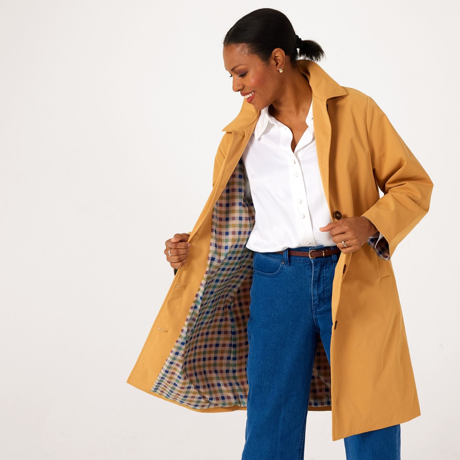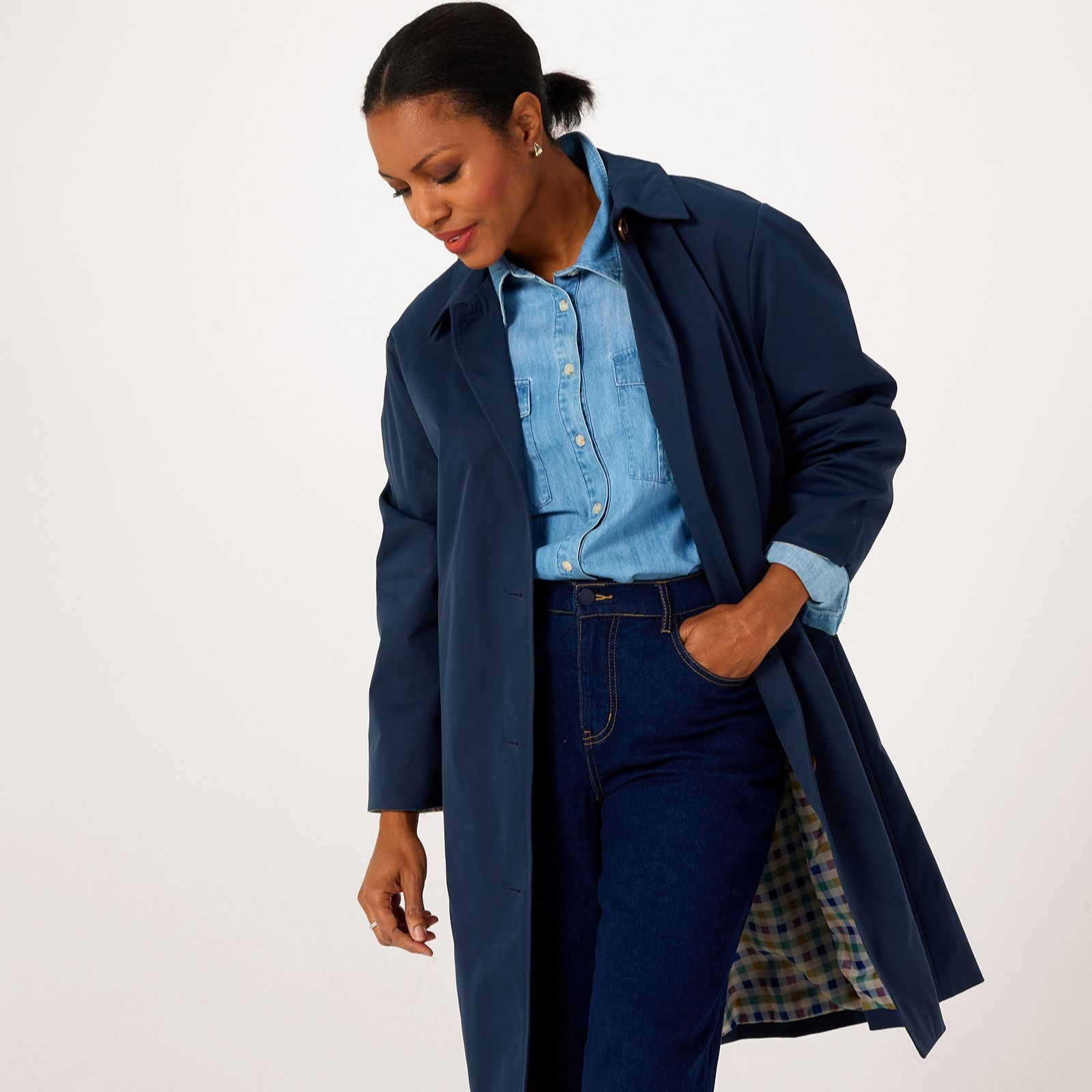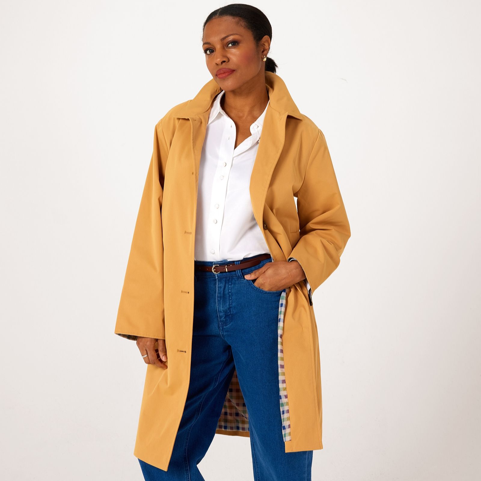 Embody timeless elegance in the Centigrade long trench coat with check contrast. This chic trench coat features a classic design with a modern twist, showcasing a stylish check lining that can be turned up at the cuffs for a distinctive look. Perfect for both casual and formal occasions, try pairing this versatile coat with anything from tailored trousers to your favourite dress.