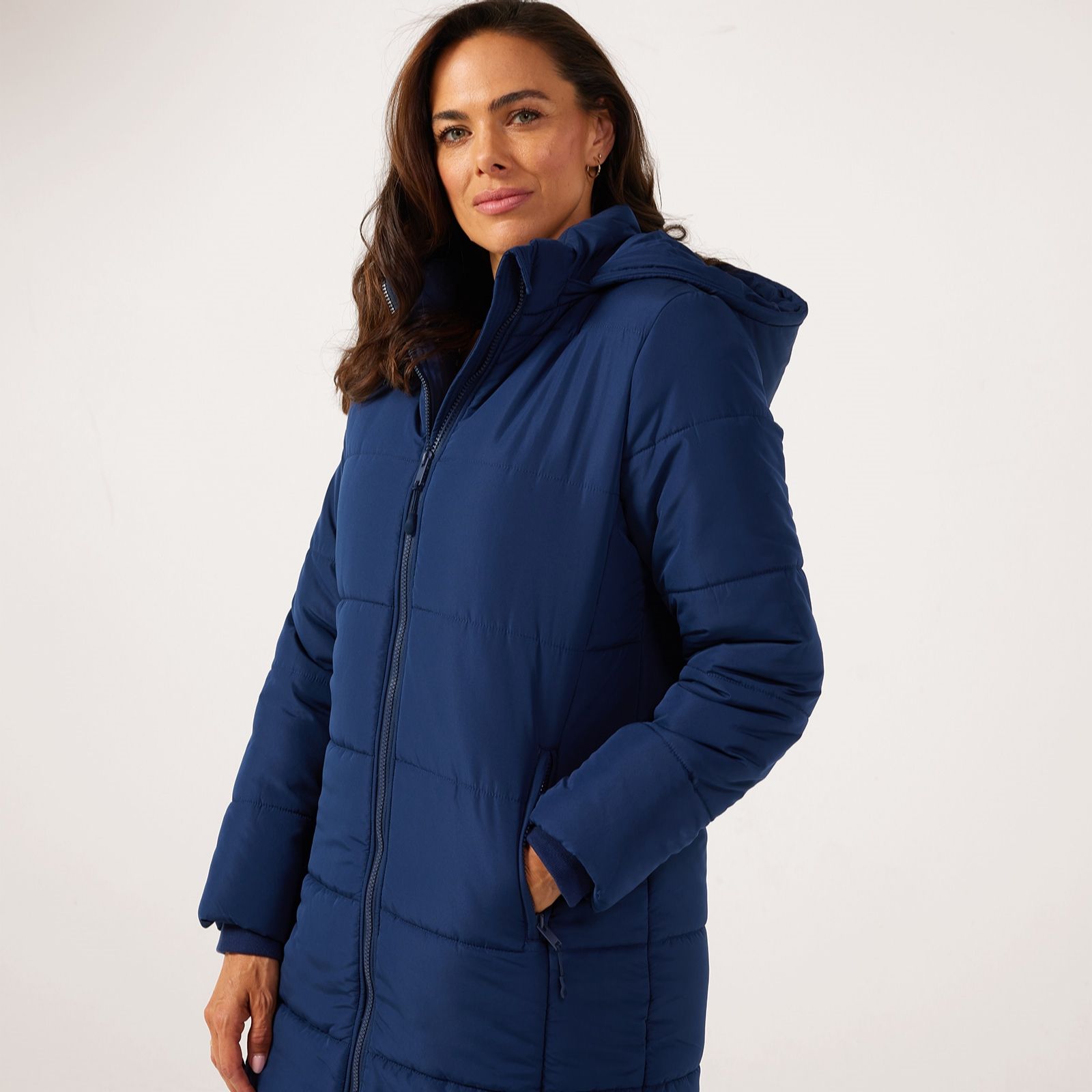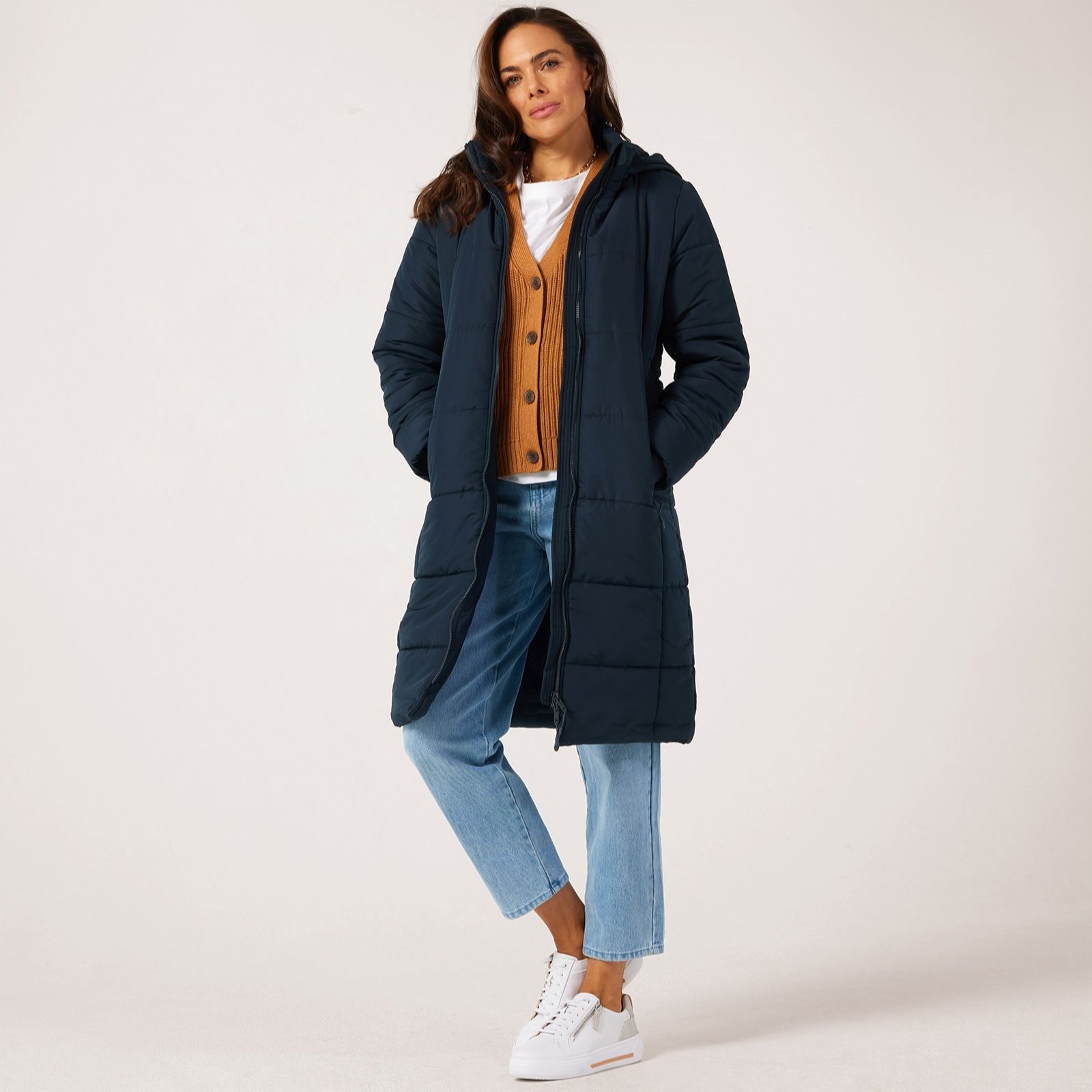 Brave chilly days in style with this mid length puffer coat from Centigrade, designed with a cosy hood, practical front zip, and handy pockets for all your essentials. Its snug silhouette makes it perfect for everything from brisk walks to running errands, while the lightweight feel ensures comfort wherever your day takes you. Layer over a jumper and jeans for an effortlessly warm and casual look.
