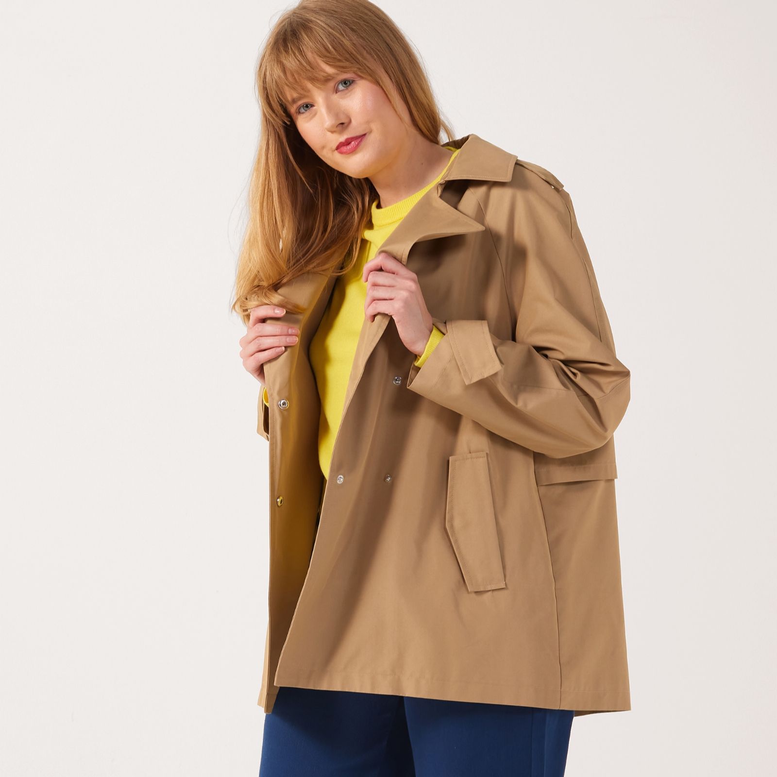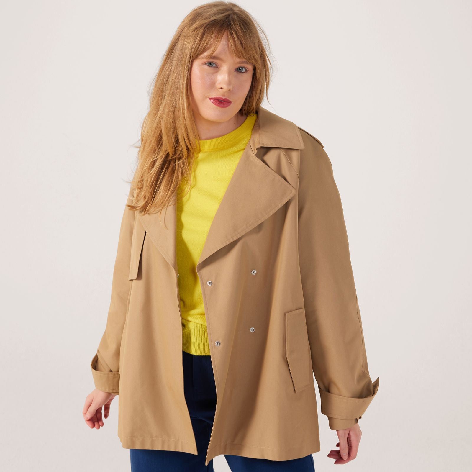 With its chic double-breasted design and contemporary cropped length, this Centigrade short trench jacket is your new go-to for effortless style. Perfect for layering over denim for a casual day out or pairing with tailored pieces for a more polished look, this versatile jacket seamlessly blends fashion and function. Try styling it with a crisp white shirt and slim-fit jeans for a timeless, sophisticated ensemble.