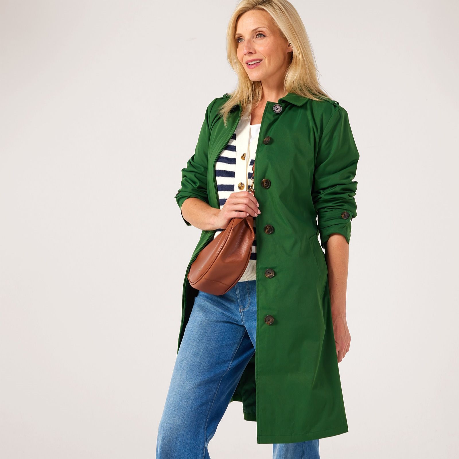 Ace your transitional wardrobe this season with this stylish trench coat from Centigrade. Featuring a classic, single-breasted design with a tie waist, gathered cuffs and slot pockets, it's sure to become your new grab-and-go coat to pull together your look instantly, whether you're heading out to lunch or running errands. Made from water-resistant fabric, it's just the thing for throwing on in the changeable British weather, finishing off your look in style.