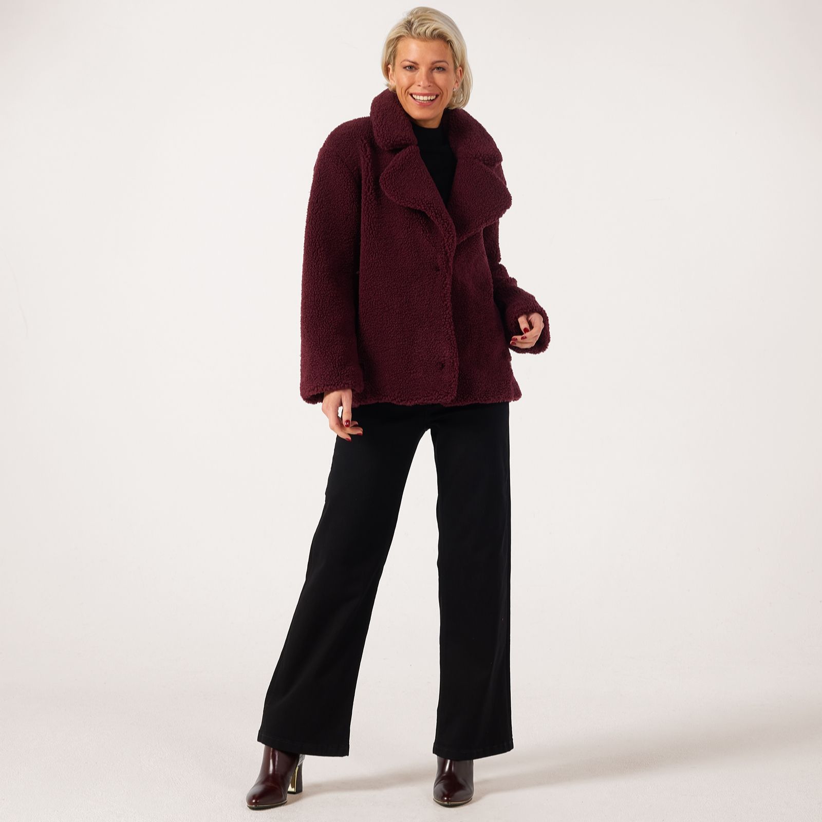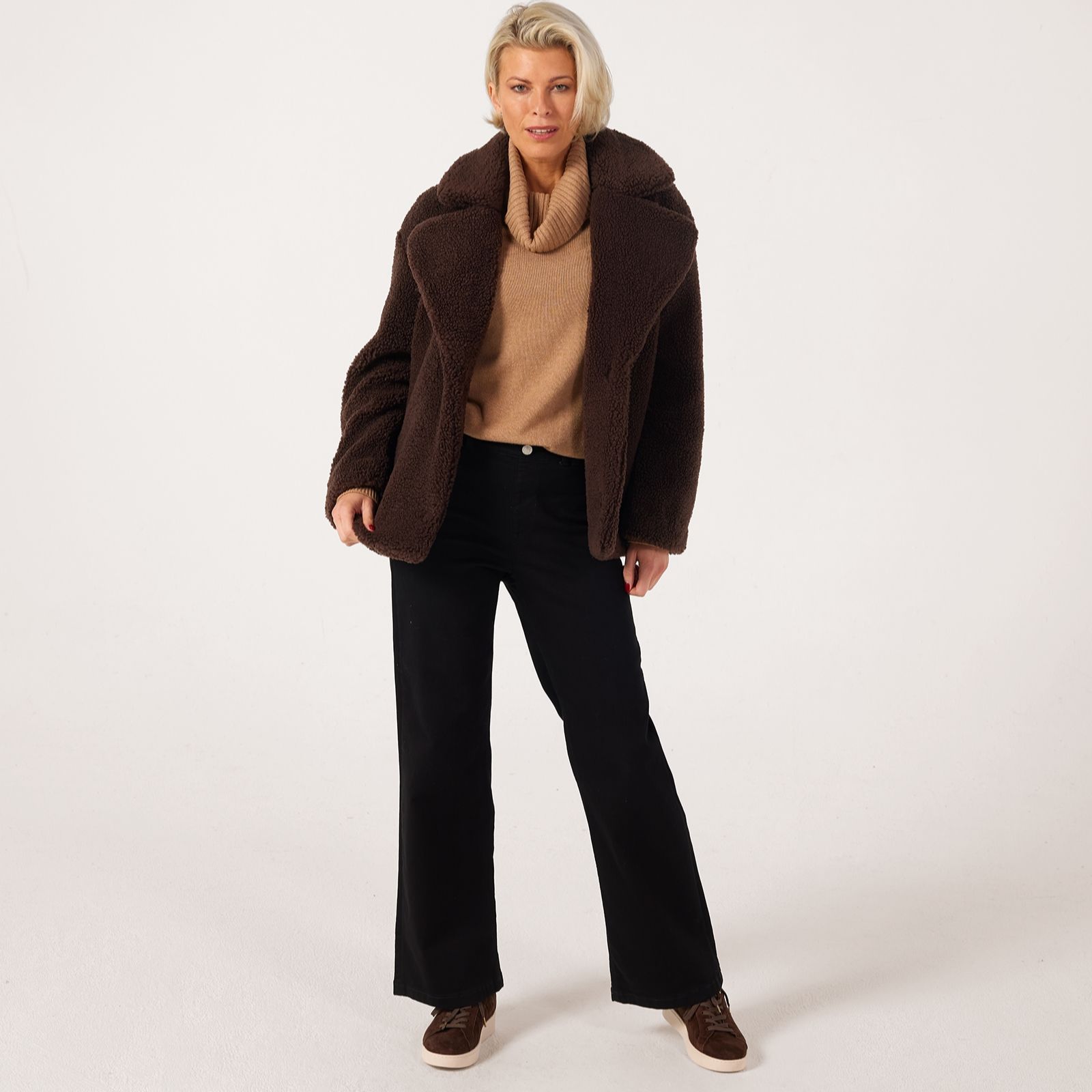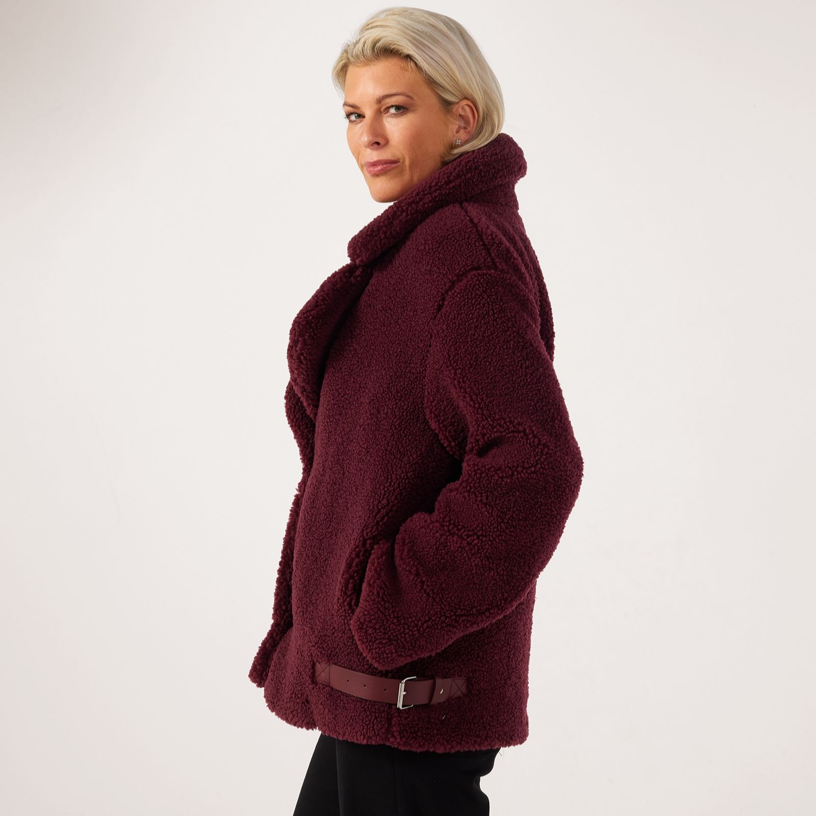 Wrap yourself in cosy sophistication with the Centigrade Teddy Mid Length Coat, crafted in a soft teddy borg fabric thats perfect for braving crisp autumn air. The concealed popper fastening keeps the look sleek, while buckle trim detailing at the side hem adds a subtle edge. Ideal for everything from weekend walks to coffee catch-ups, it pairs beautifully with slim trousers and ankle boots for an effortlessly chic layered look.
