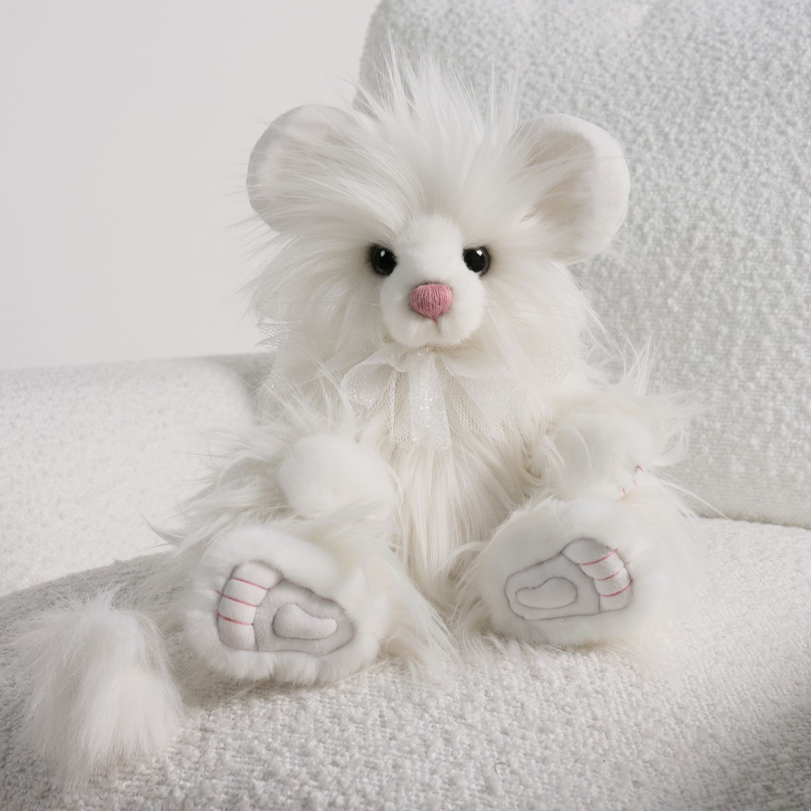 Add a touch of collectable charm to your home with Bambalina, a delightful 12" plush mouse from the Charlie Bears Signature Collection. This numbered limited edition of just 1200 worldwide is beautifully crafted from long pile plush fur, complete with intricate hand-embroidered detailing and sculpted paws, making it a truly special piece for collectors aged 14 and over.