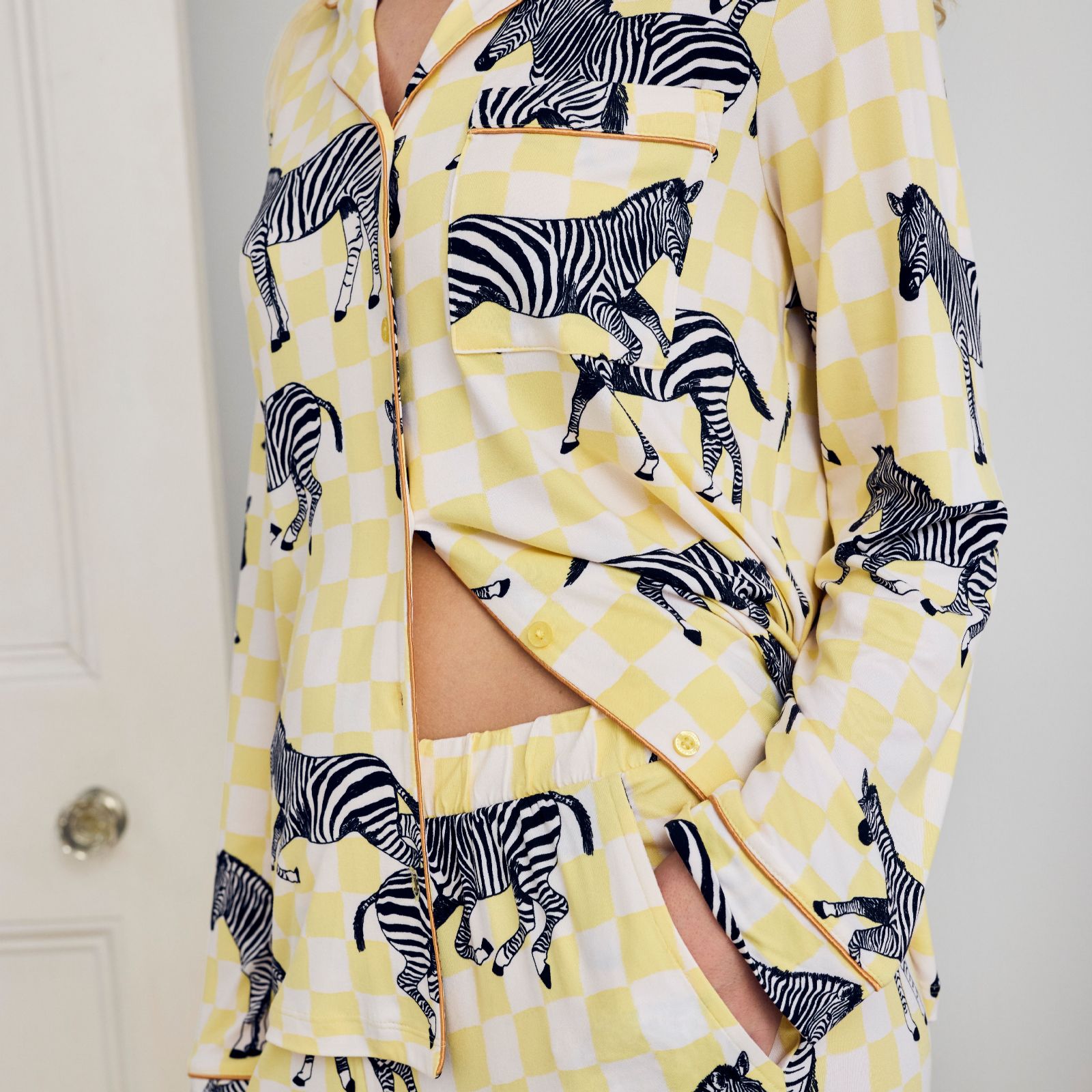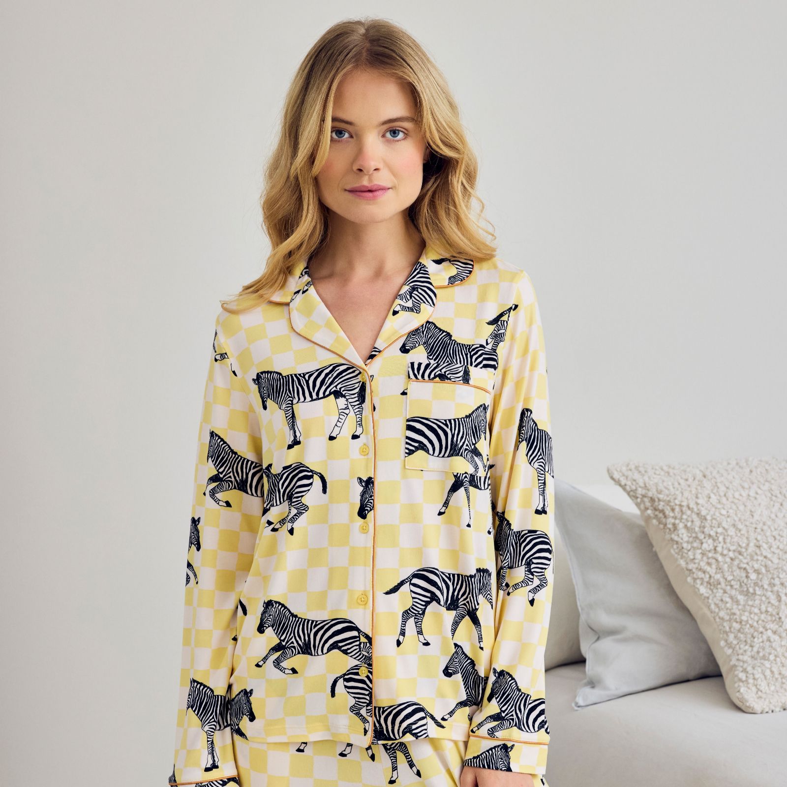 Whether youre winding down after a busy day or enjoying a lazy morning, the Chelsea Peers Classic Long Sleeve Set brings a touch of playful style to your downtime. Featuring a button-up top and matching trousers in a striking zebra checkerboard print, this relaxed-fit set offers comfort and personality in equal measure, making it perfect for lounging, reading, or simply curling up on the sofa.
