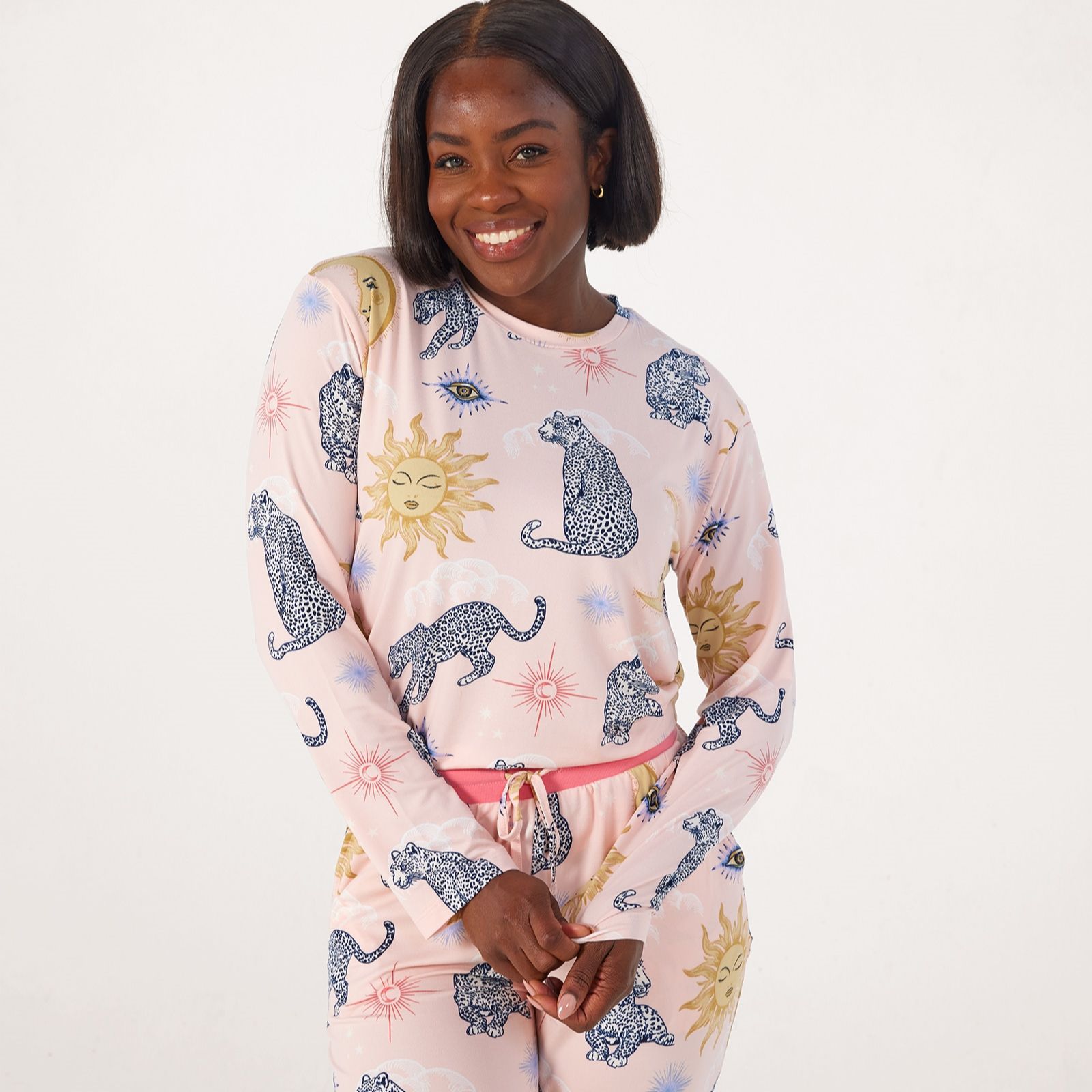 Drift off into your perfect slumber with the Chelsea Peers classic crew neck pyjama set, designed for cosy nights and relaxed mornings. You'll receive a soft jersey long-sleeve top with a timeless crew neckline, paired with matching jogger-style bottoms featuring an elasticated waistband for comfort. Whether you're curling up with a good book or enjoying a leisurely start to your weekend, these pyjamas bring a touch of laid-back style to your downtime.