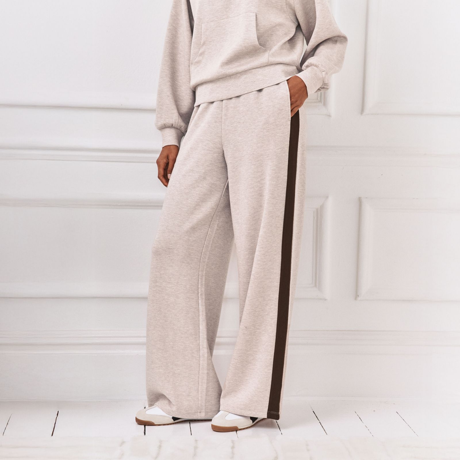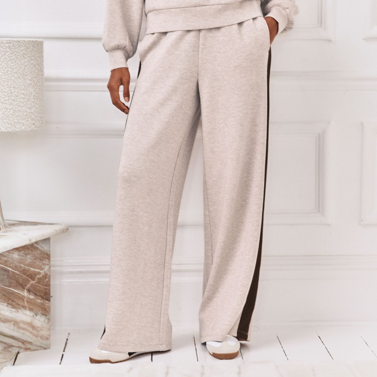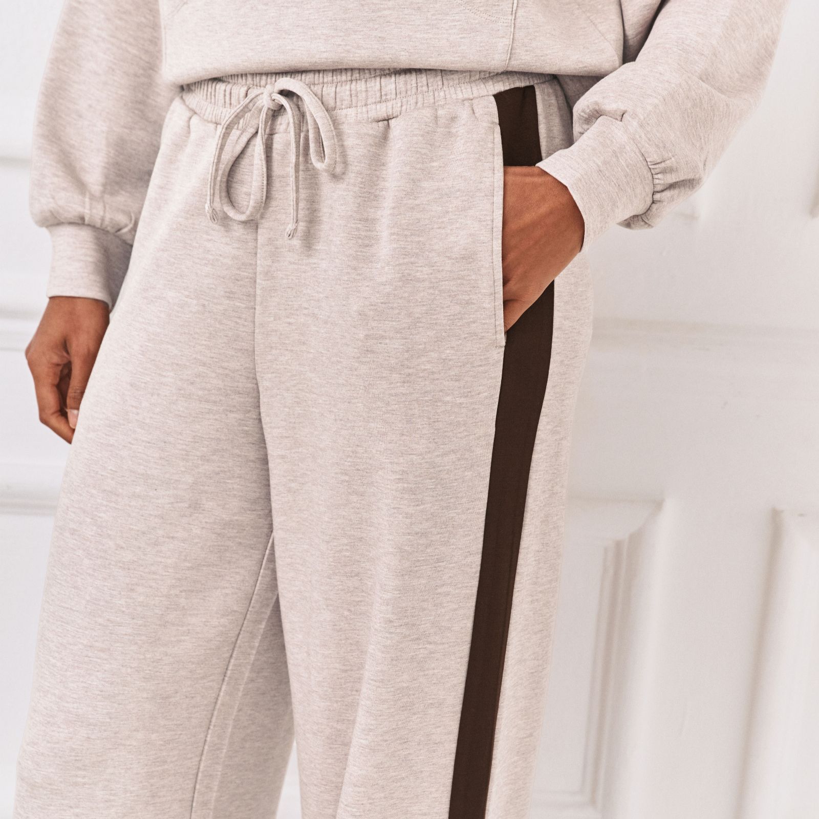 Put a bold twist on your basics with the Scuba stripe joggers from Chelsea Peers. Crafted in their signature cloud-soft Scuba, this camel pair is elevated with striking espresso side panels for a streamlined, polished look. Perfect for everything from relaxed weekends to casual coffee catch-ups, they balance comfort and style effortlessly. Pair with a half zip fleece or a cosy knit for an off-duty ensemble with a refined edge.