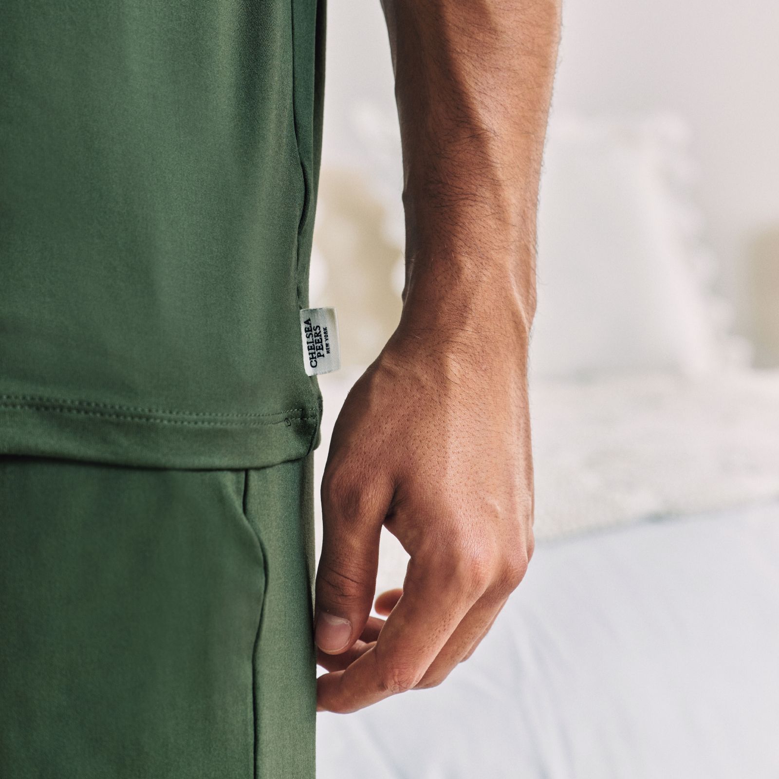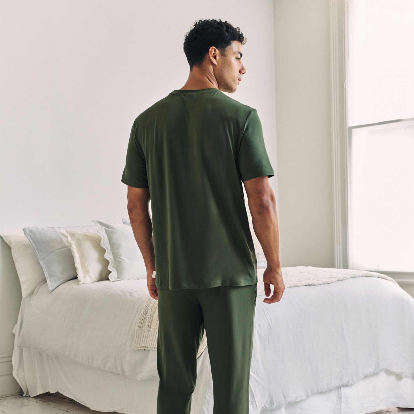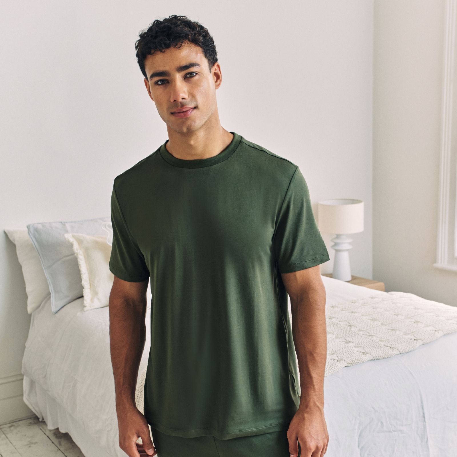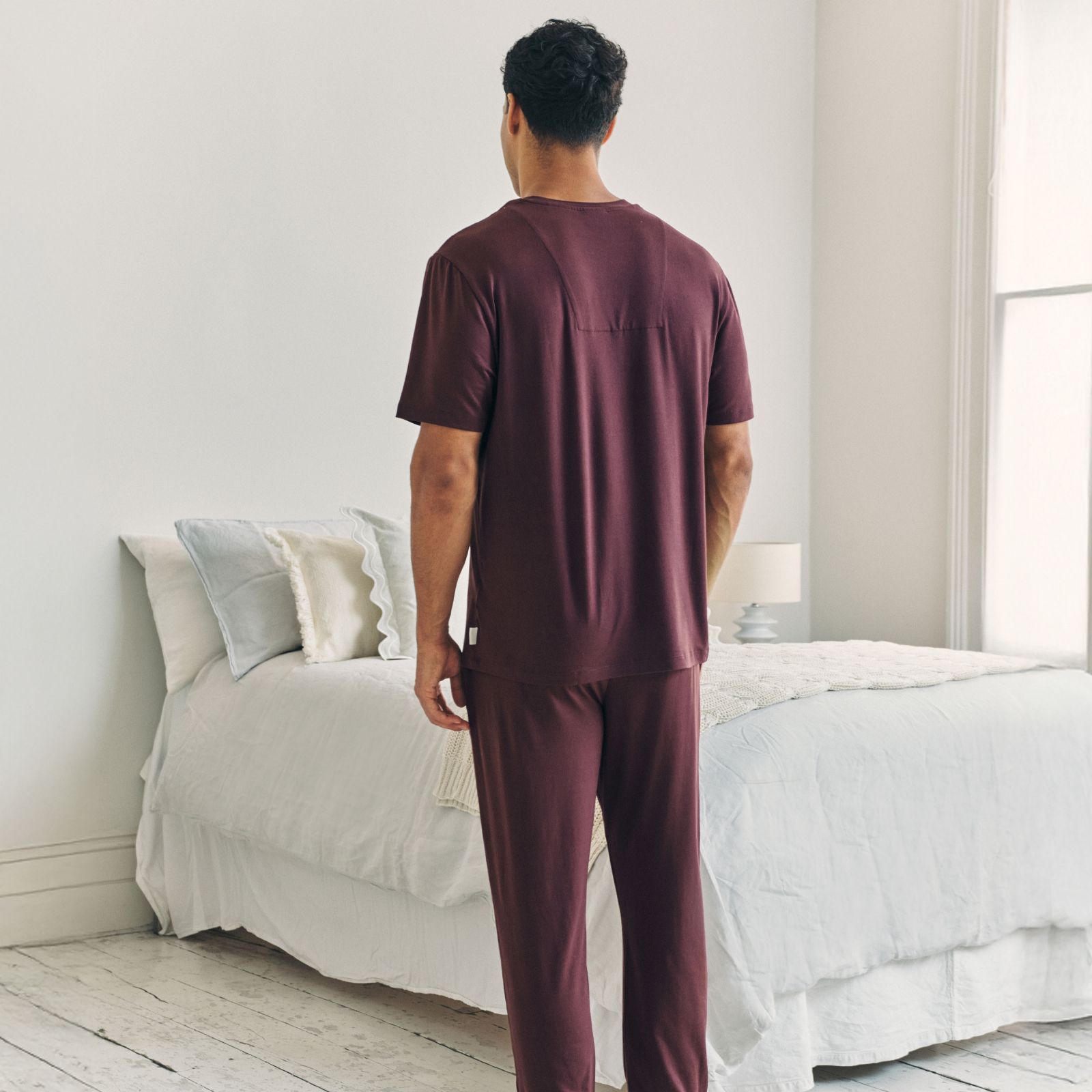 Create a relaxed vibe with the Chelsea Peers men's crew neck T-shirt and joggers pyjama set, designed in their signature super-soft fibre knit jersey for all-day comfort. Ideal for lounging at home or enjoying a laid-back weekend, this matching set combines a classic crew neck tee with long cuffed bottoms for an effortlessly stylish look. Pair with snug socks or layer with a hoodie for the ultimate in downtime dressing.