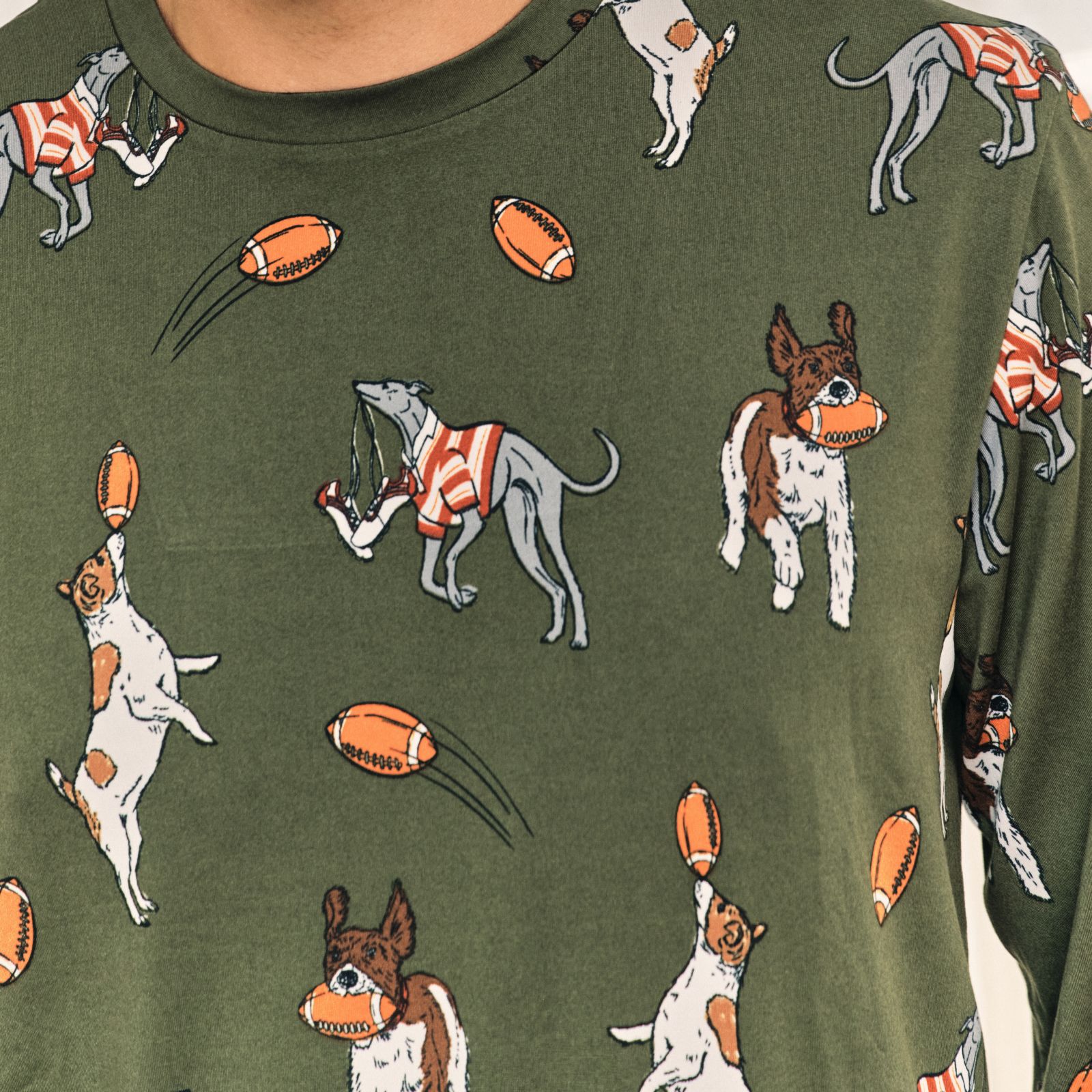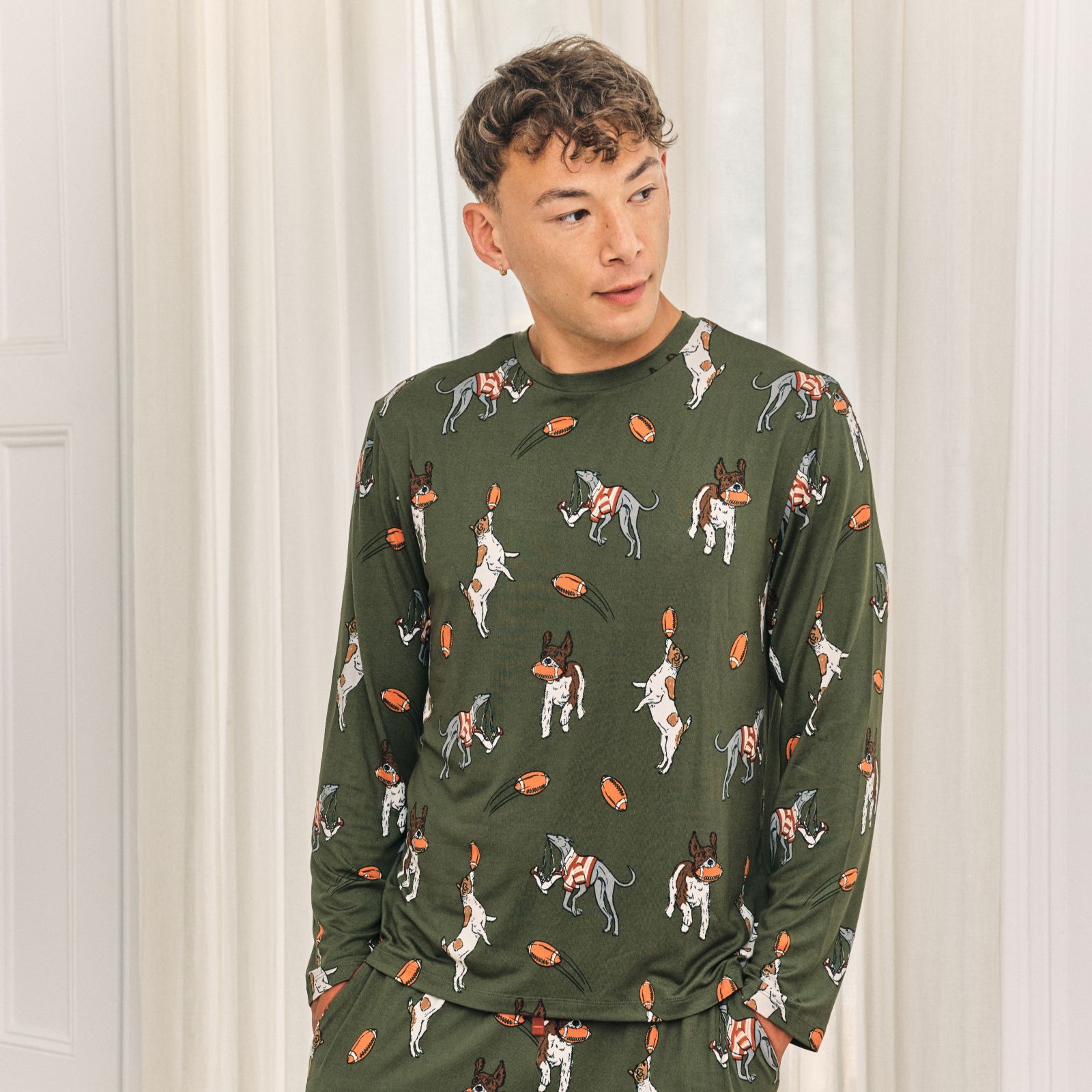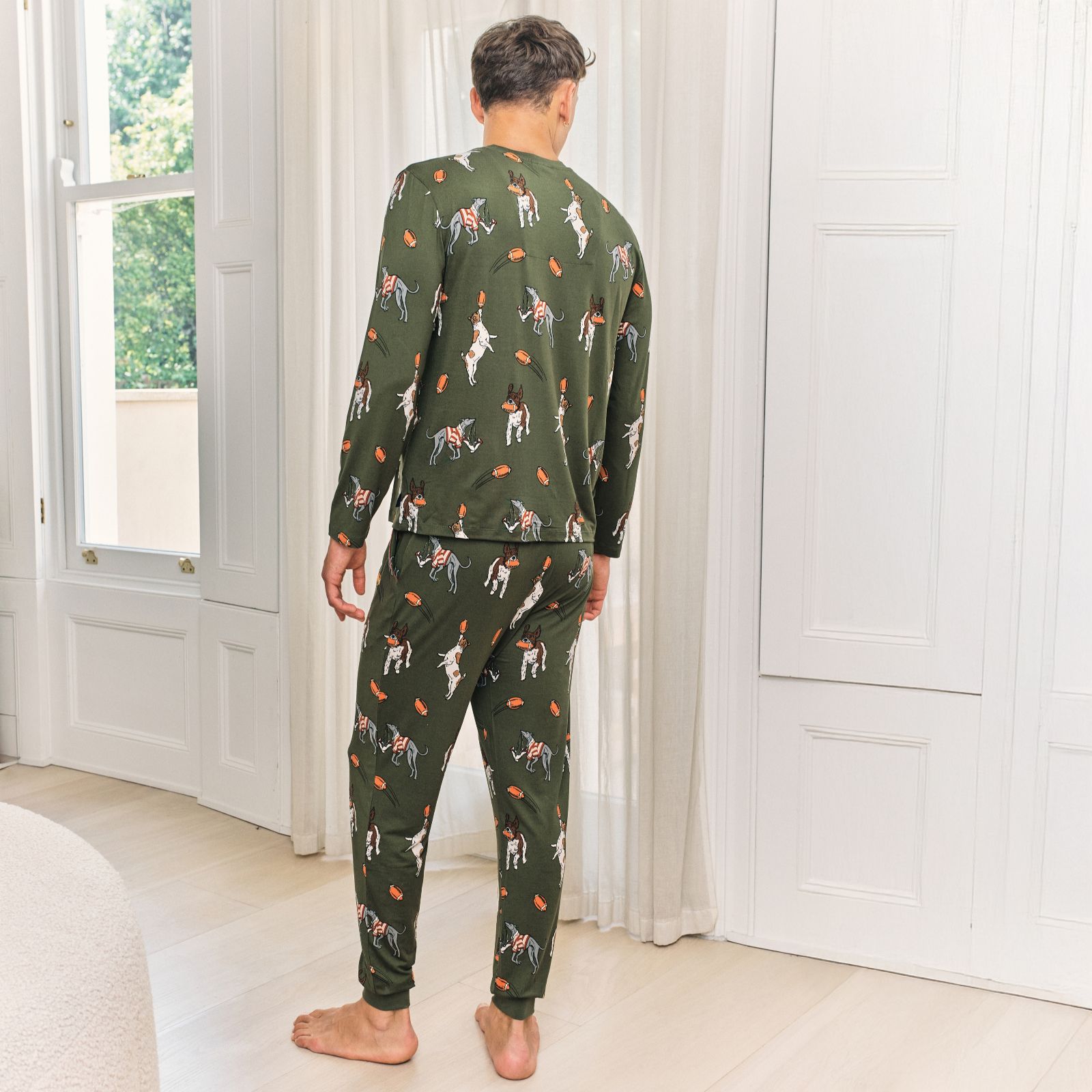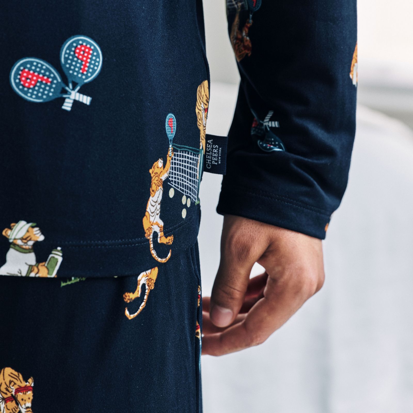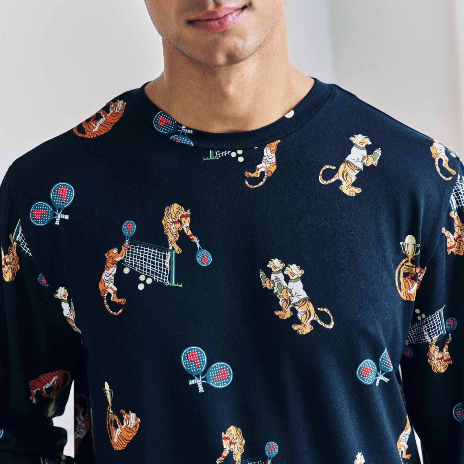Make your weekends more relaxing with the men's long-sleeved crew neck pyjama set from Chelsea Peers, featuring playful prints for a fun, laid-back vibe. Perfect for lounging at home or enjoying a slow Sunday morning, this set combines comfort with a touch of personality. Pair with your favourite socks and a thick robe for the ultimate downtime look.