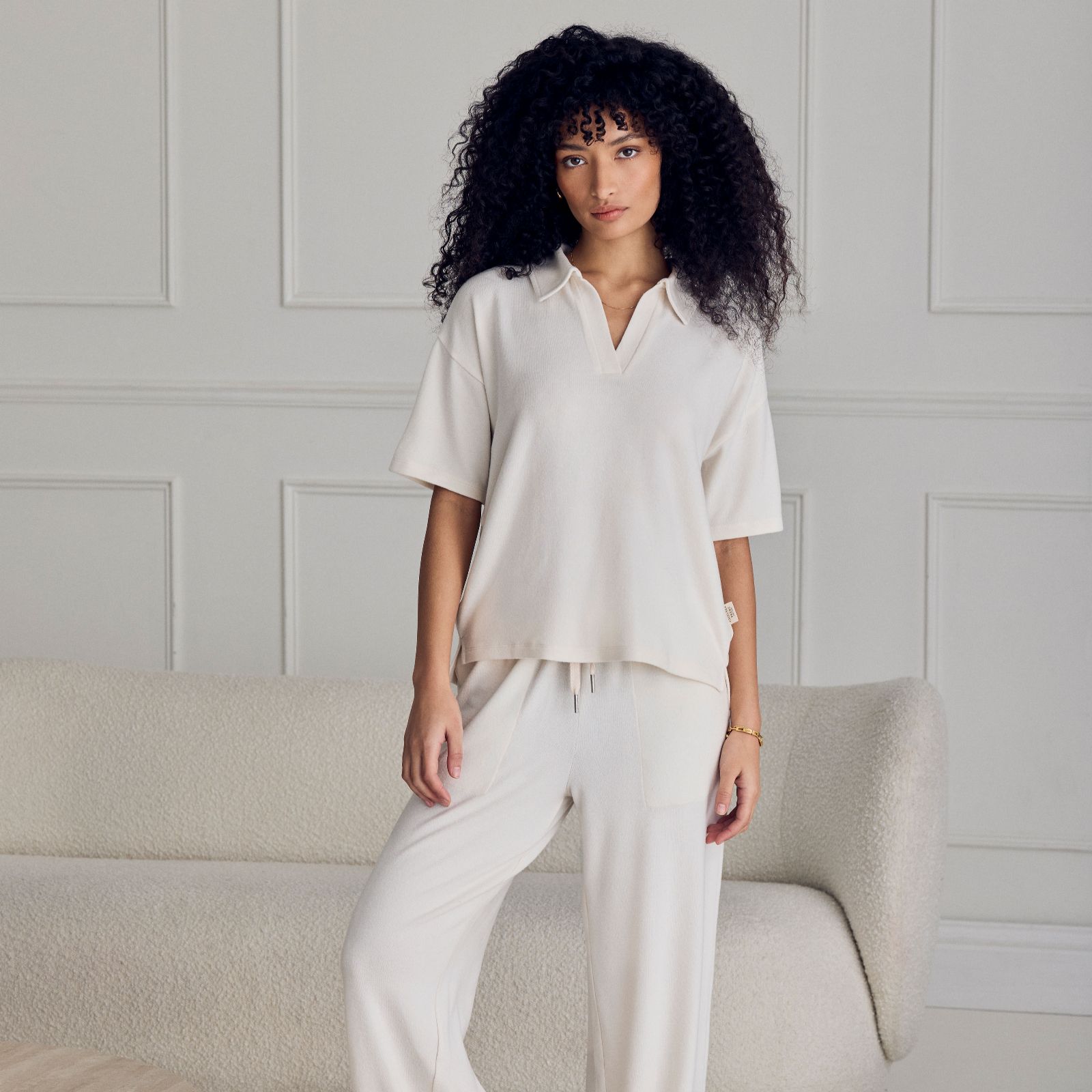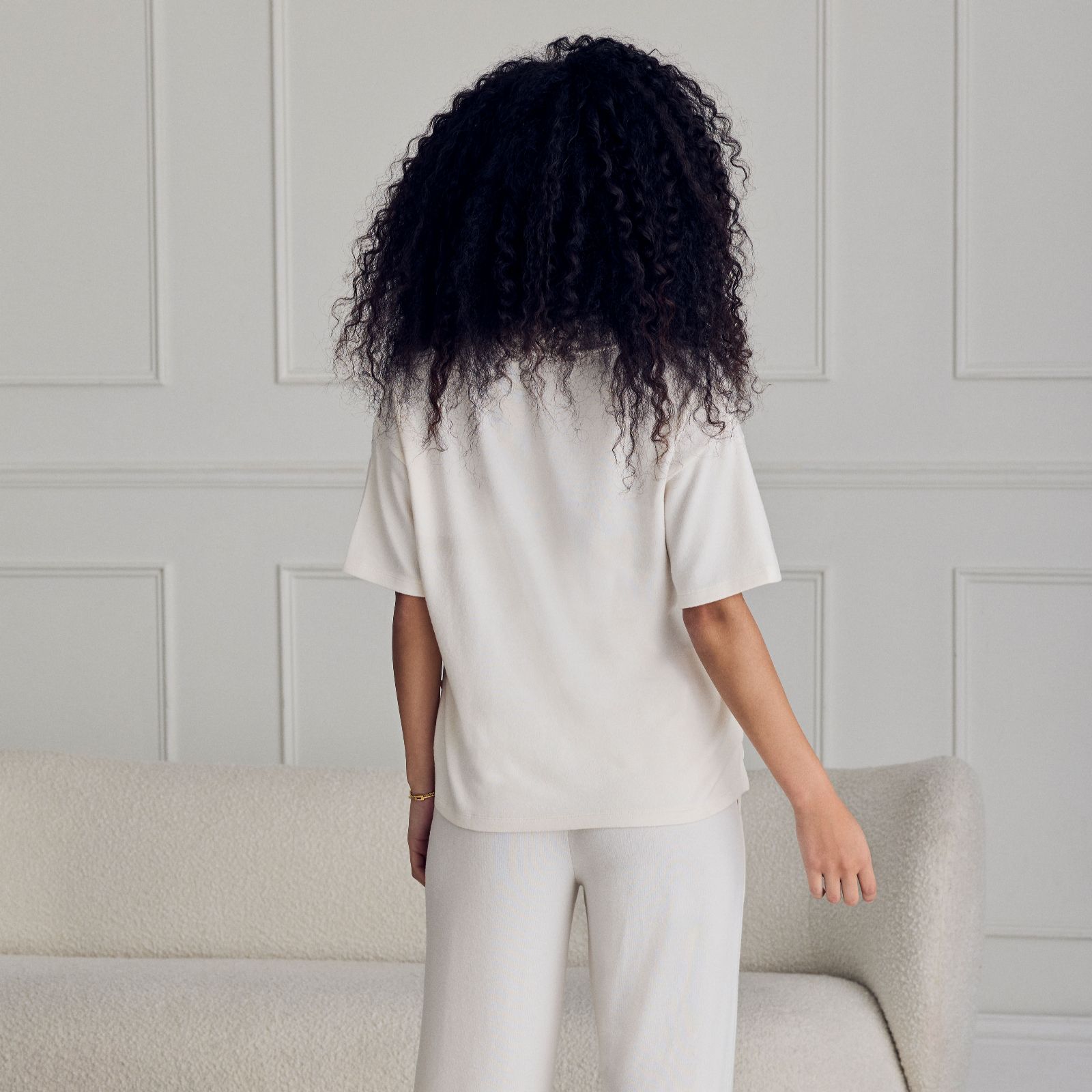Ease into effortless style with the V-neck short sleeve sweatshirt from Chelsea Peers. Designed with a relaxed silhouette and soft snit texture, this laid-back top brings casual comfort to your everyday wardrobe. Perfect for everything from lazy mornings to weekend strolls, it pairs beautifully with joggers or denim for an easy, modern look that feels as good as it looks.