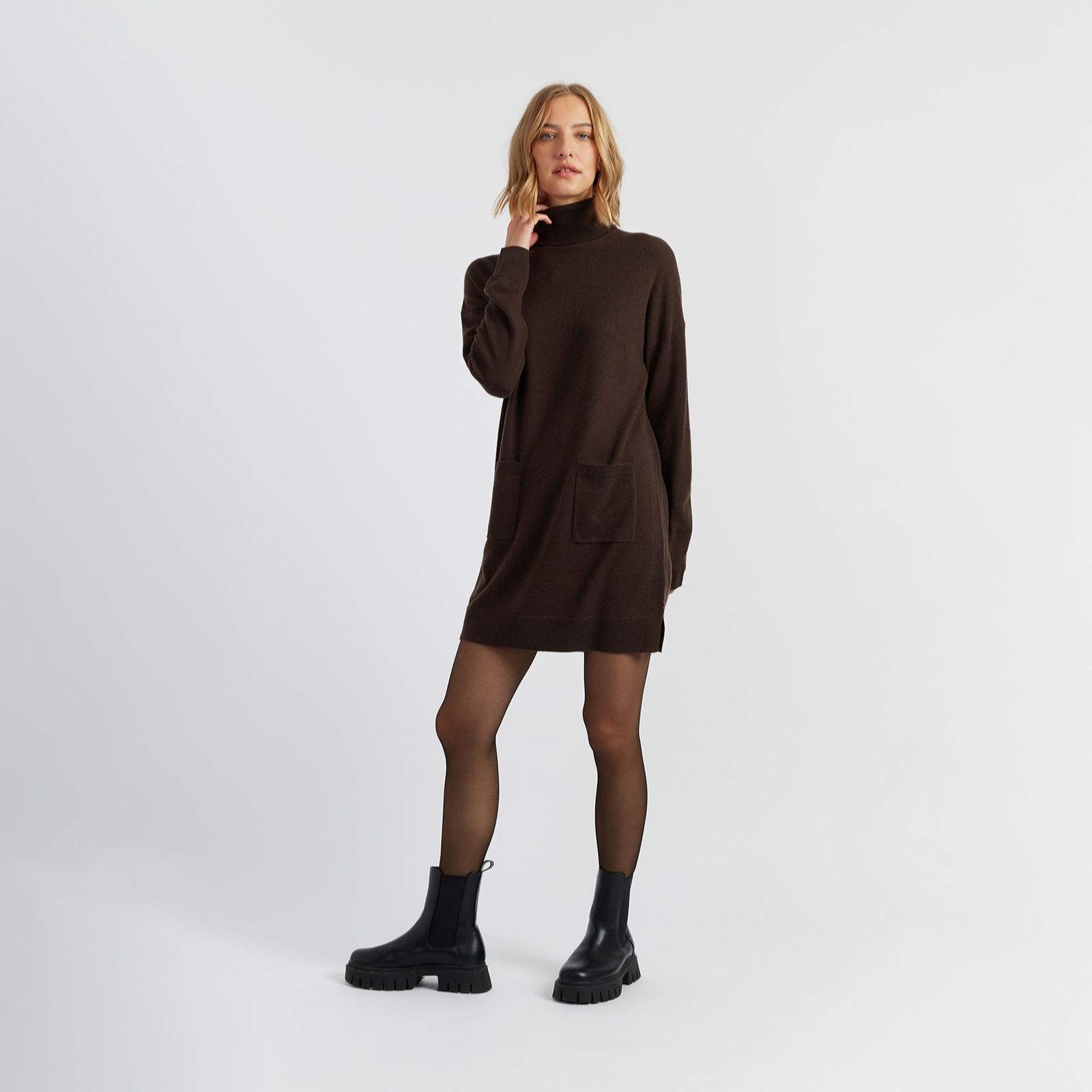 Combine cosy with style in the Chinti & Parker wool cashmere blend dress, finely knitted for everyday comfort and a laid-back vibe. The relaxed silhouette is effortlessly easy to wear, finished with practical pockets and a subtle signature cross. Dress it up for brunch or keep things casual for daily errands - just add trainers or ankle boots for a fresh, modern look.