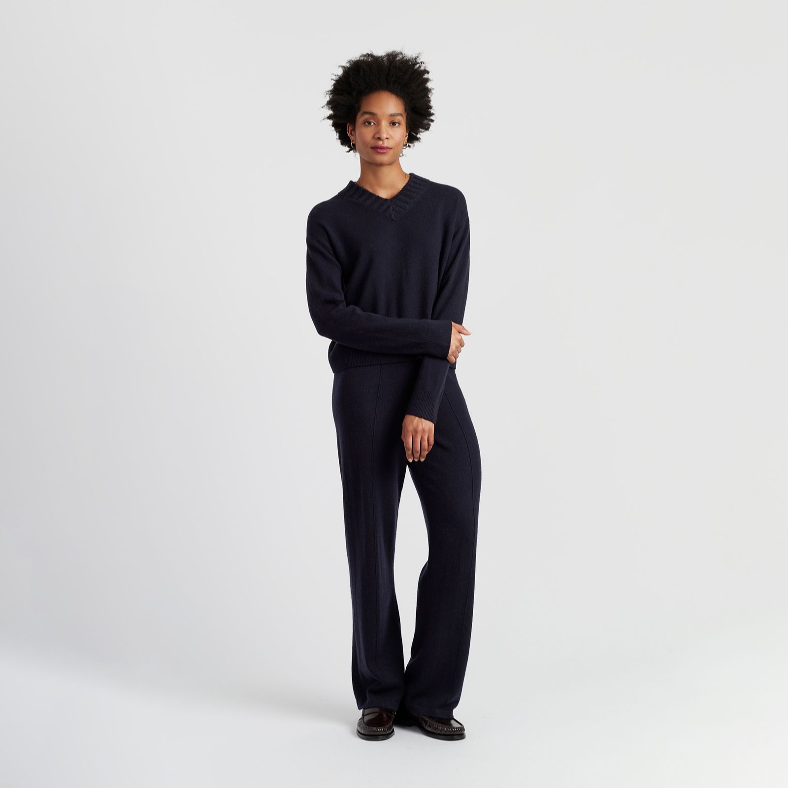 Perfect your cold-weather look this season with Chinti & Parker's wool cashmere ribbed V-neck jumper, offering a modern, boxy silhouette and deep ribbed neckline for effortless style. With its dropped shoulders and signature cross detail, this jumper is ideal for everything from morning walks to relaxed evenings at home. For a chic touch, layer it over a crisp shirt and pair it with your favourite denim.
