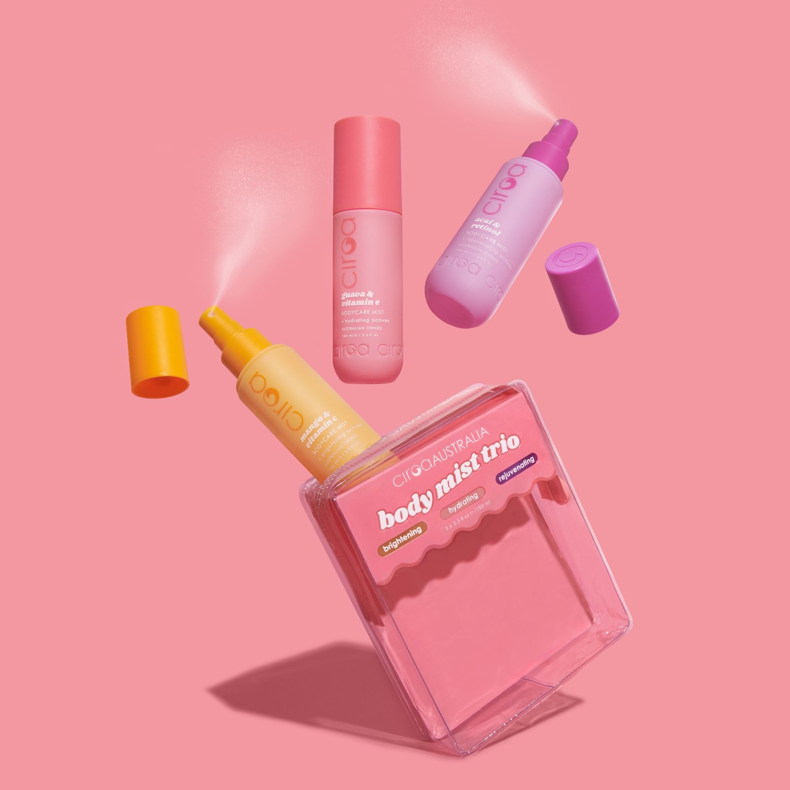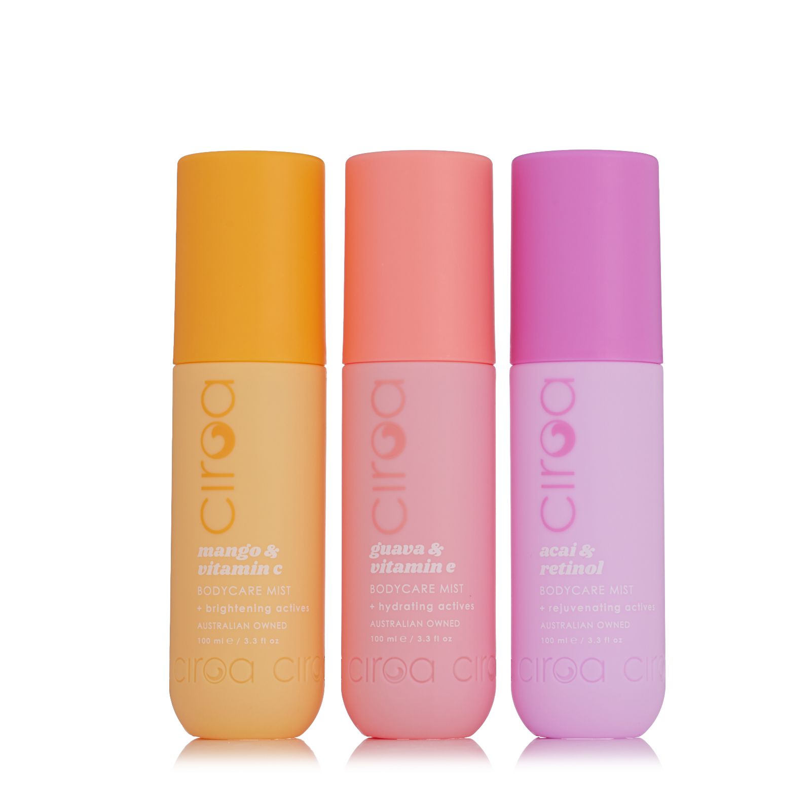 • 3 x Fruity Body Mist (100ml each) – includes Mango + Vitamin C, Acai + Retinol, Guava + Vitamin E