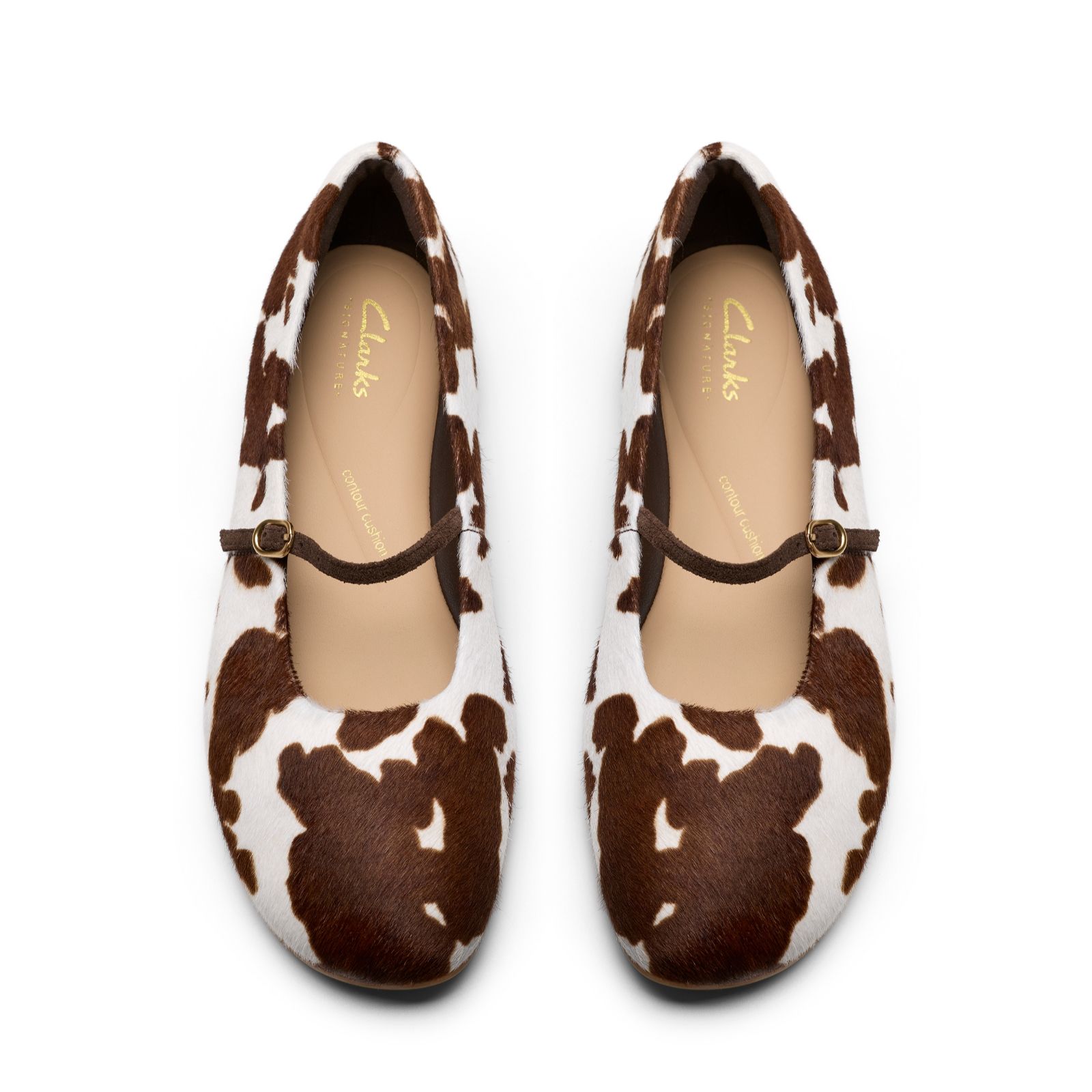 Stand out with the Clarks Livia Sky Mary Jane shoes, where cow print suede meets a natural foot-shaped silhouette for lightweight comfort and effortless style. Perfect for days at the office, weekend brunches or evening strolls, these Mary Janes add a playful twist to any outfit. Pair them with cropped trousers or a flowing midi skirt for a chic, contemporary look.