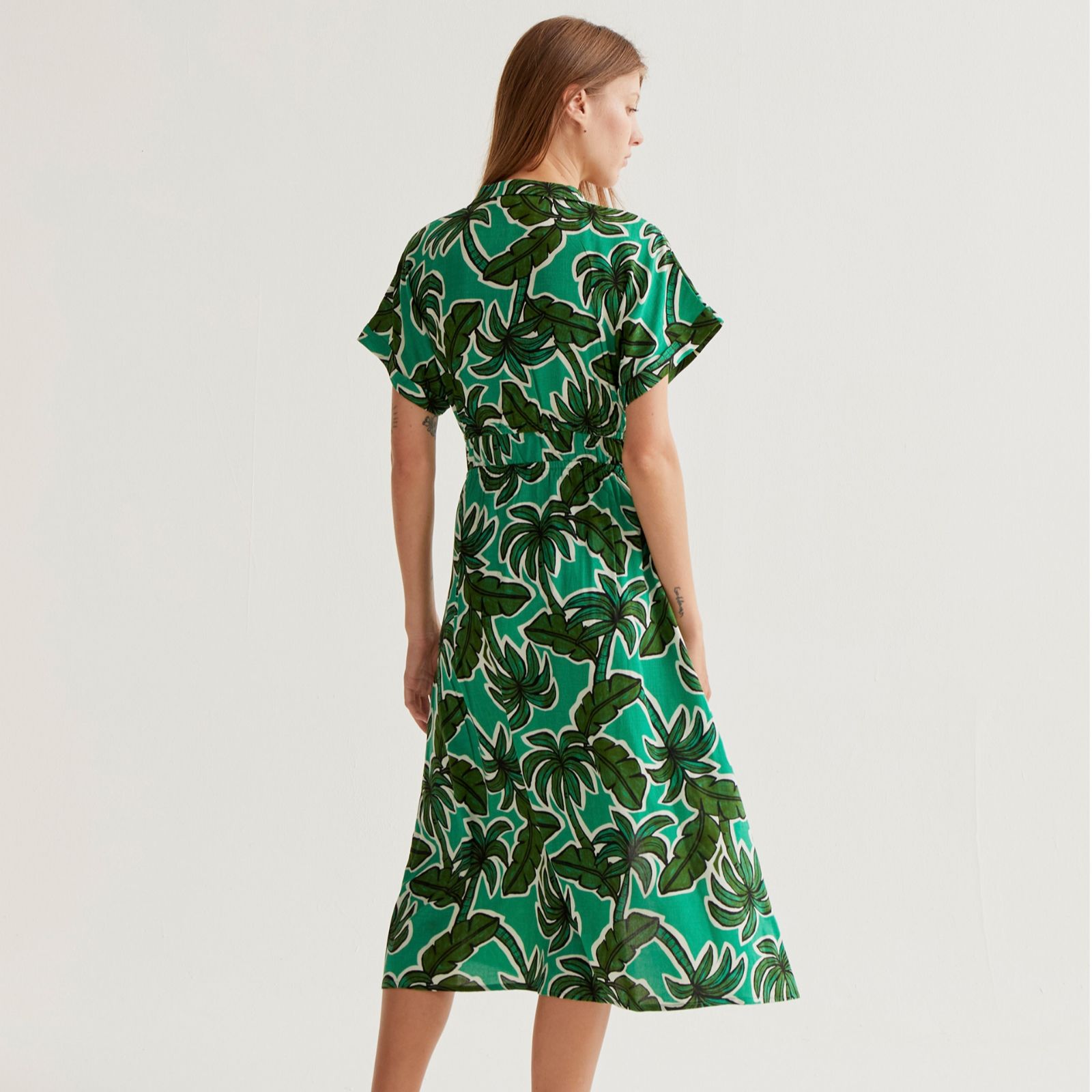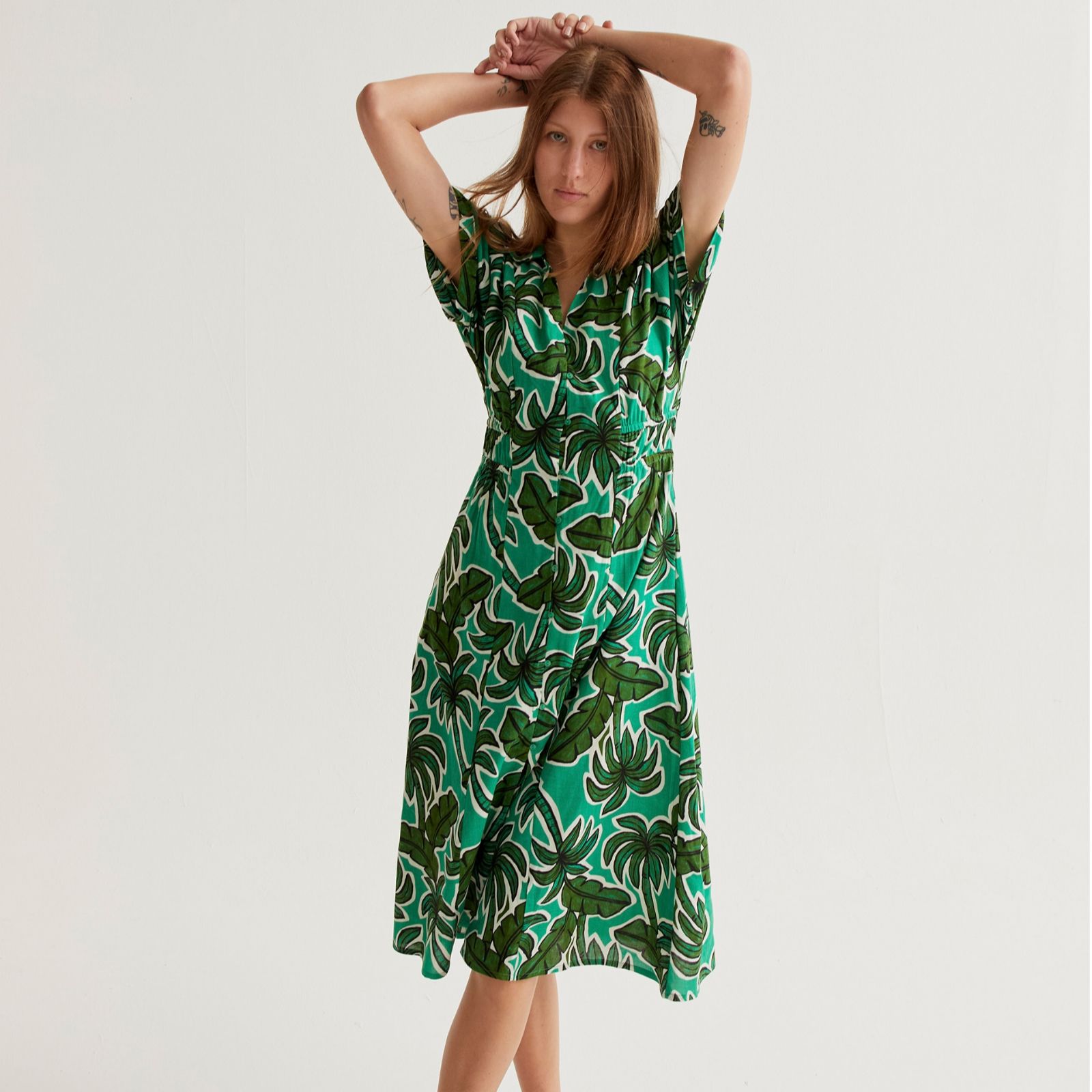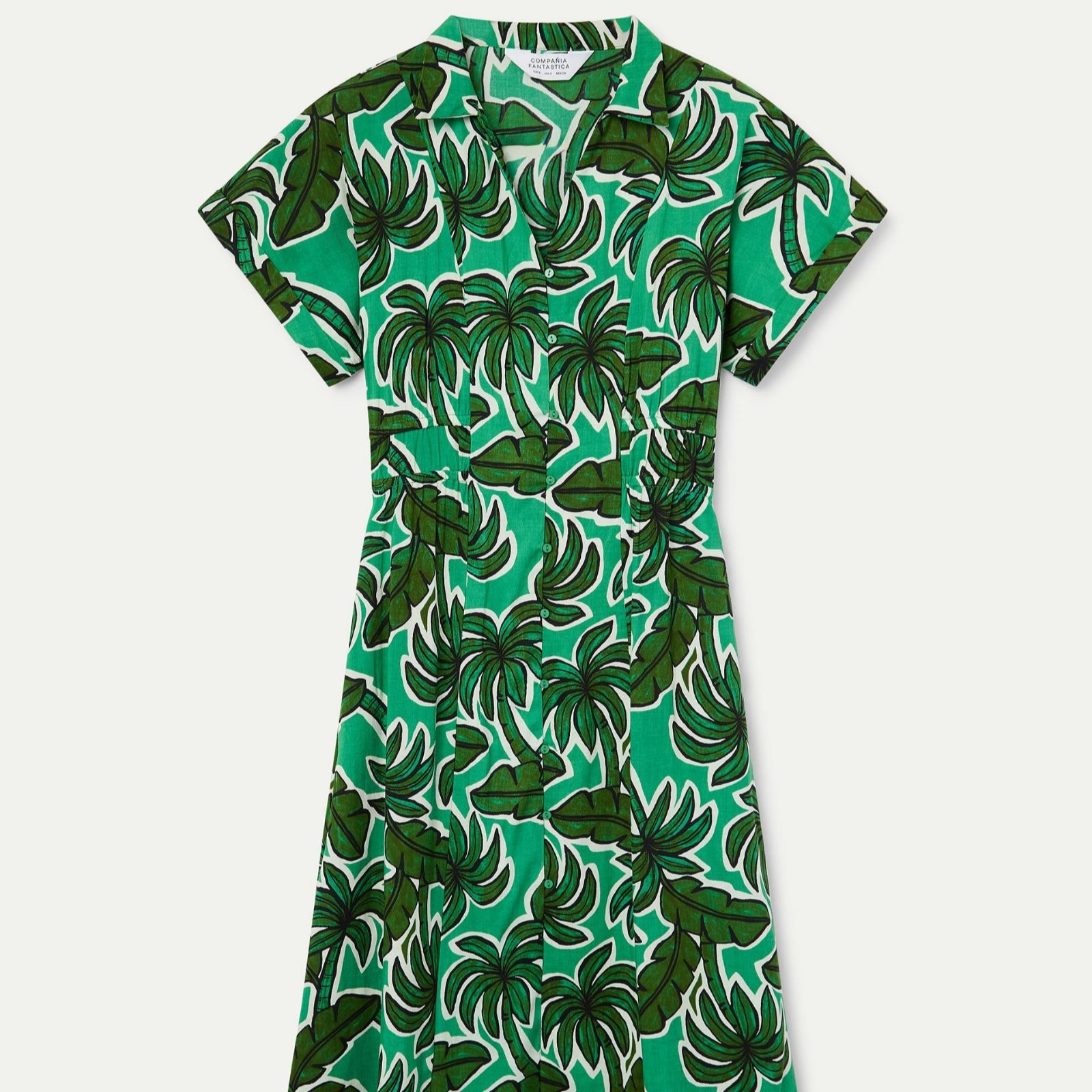 Bring a touch of playful charm to your wardrobe with this button down printed midi dress from Compania Fantastica, showcasing a delightful palm tree motif that exudes easy-going summer style. The lapel collar and V-neckline lend a refined edge, while the elasticated waist and short sleeves offer all-day comfort. Perfect for holidays or weekend outings, simply pair it with sandals and a woven bag for an effortlessly chic look.