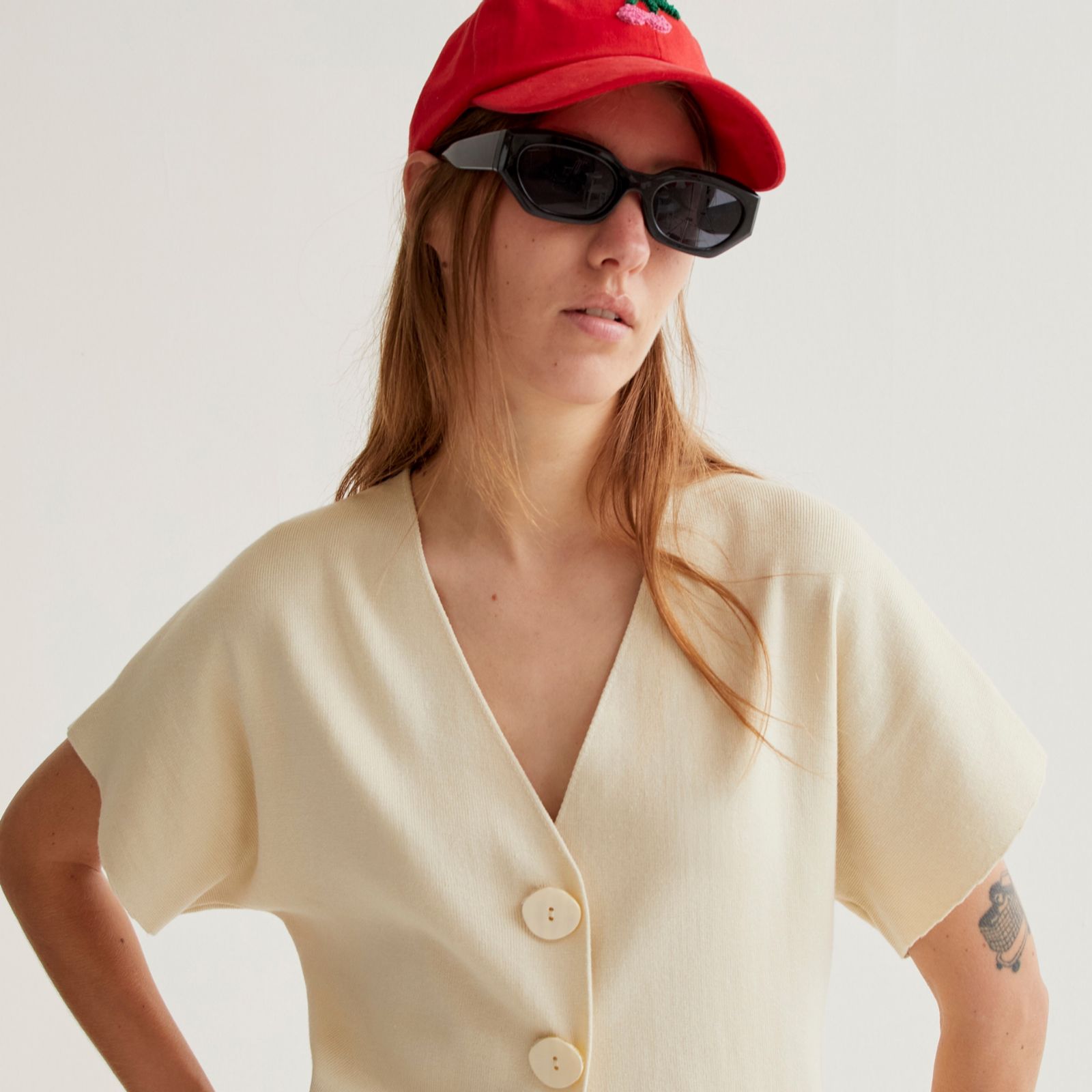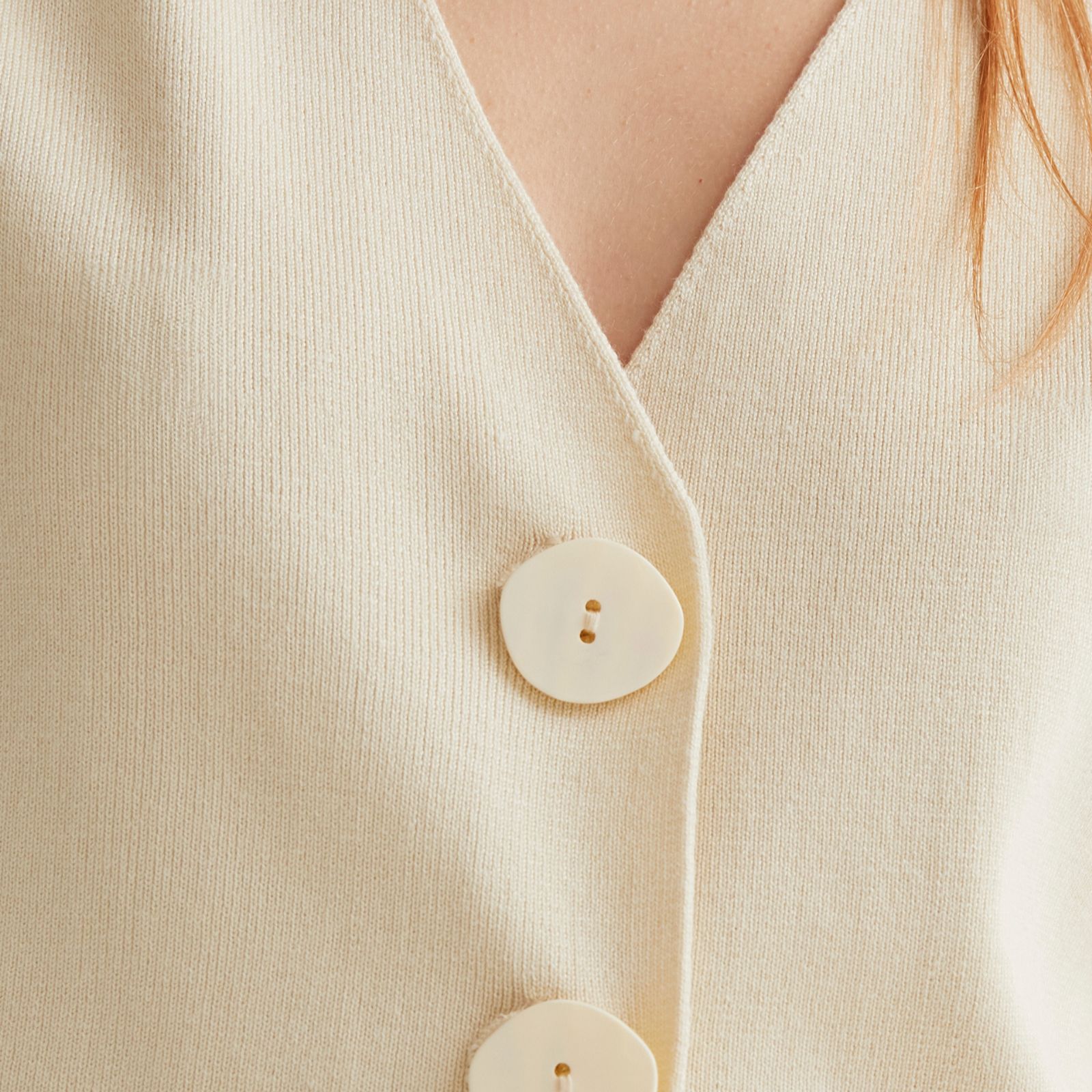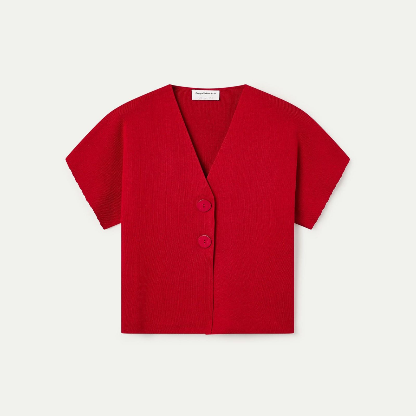 Opt for a touch of playful charm with the short-sleeved cardigan from Compania Fantastica, featuring a V-neckline, large matching buttons and slightly dropped shoulders. This cardigan blends a relaxed silhouette with a semi-fitted shape for easy everyday wear. Perfect for layering over dresses or teaming with jeans, it's a capsule wardrobe piece that will effortlessly take you from casual brunches to smart-casual evenings. Try styling it with wide-leg trousers and loafers for a chic, modern look.