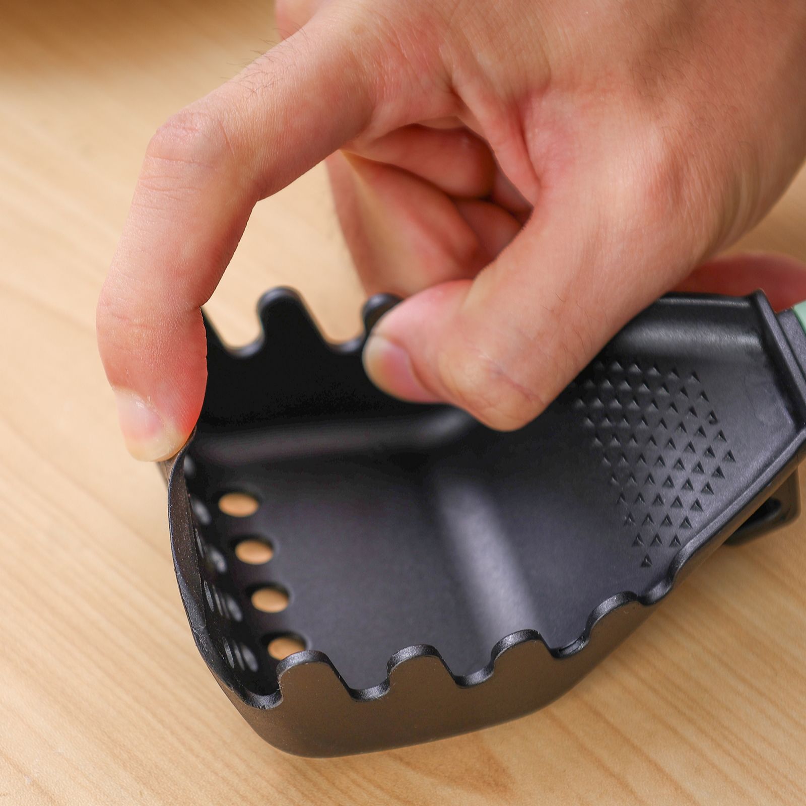 - TPR handle with a rectangular hanging hole