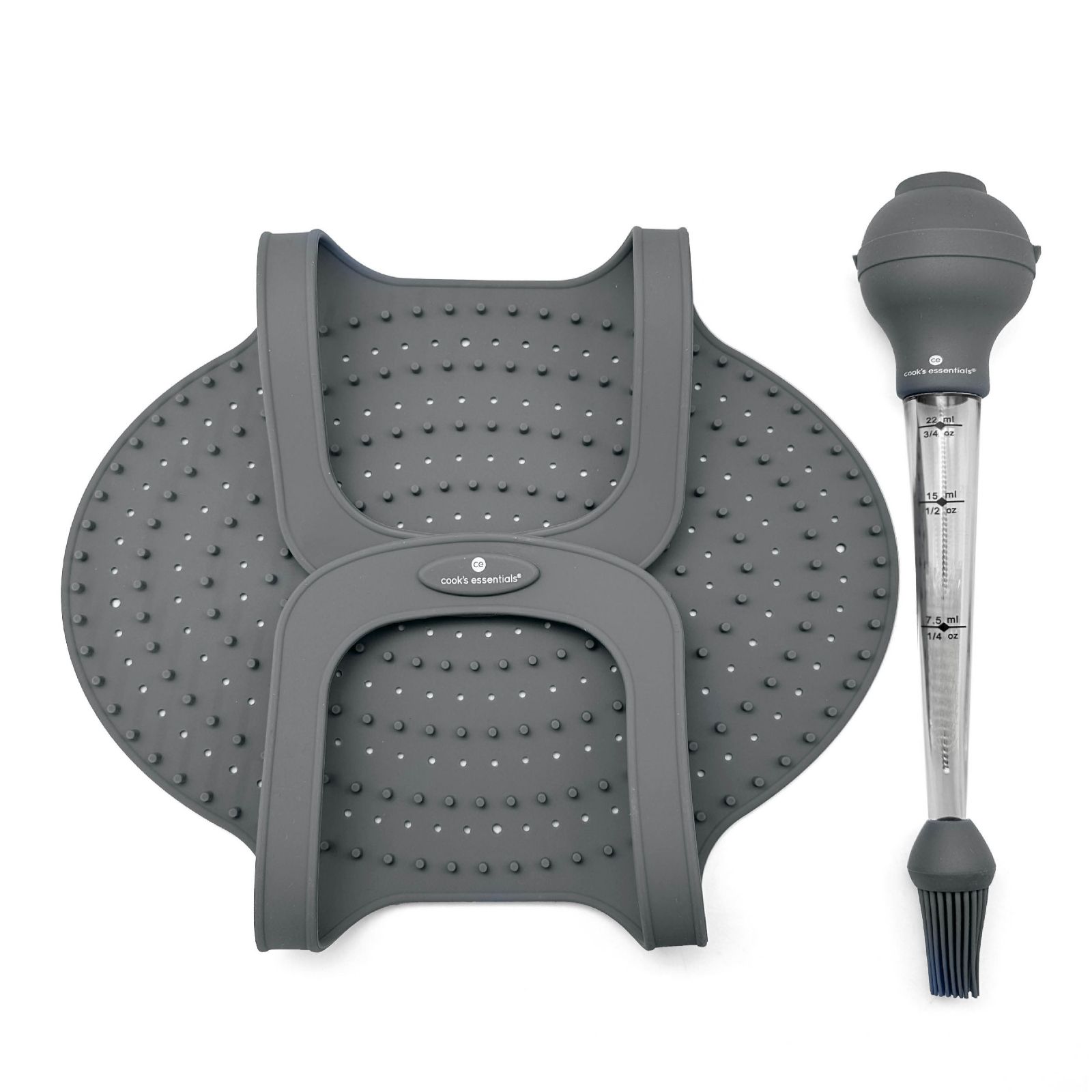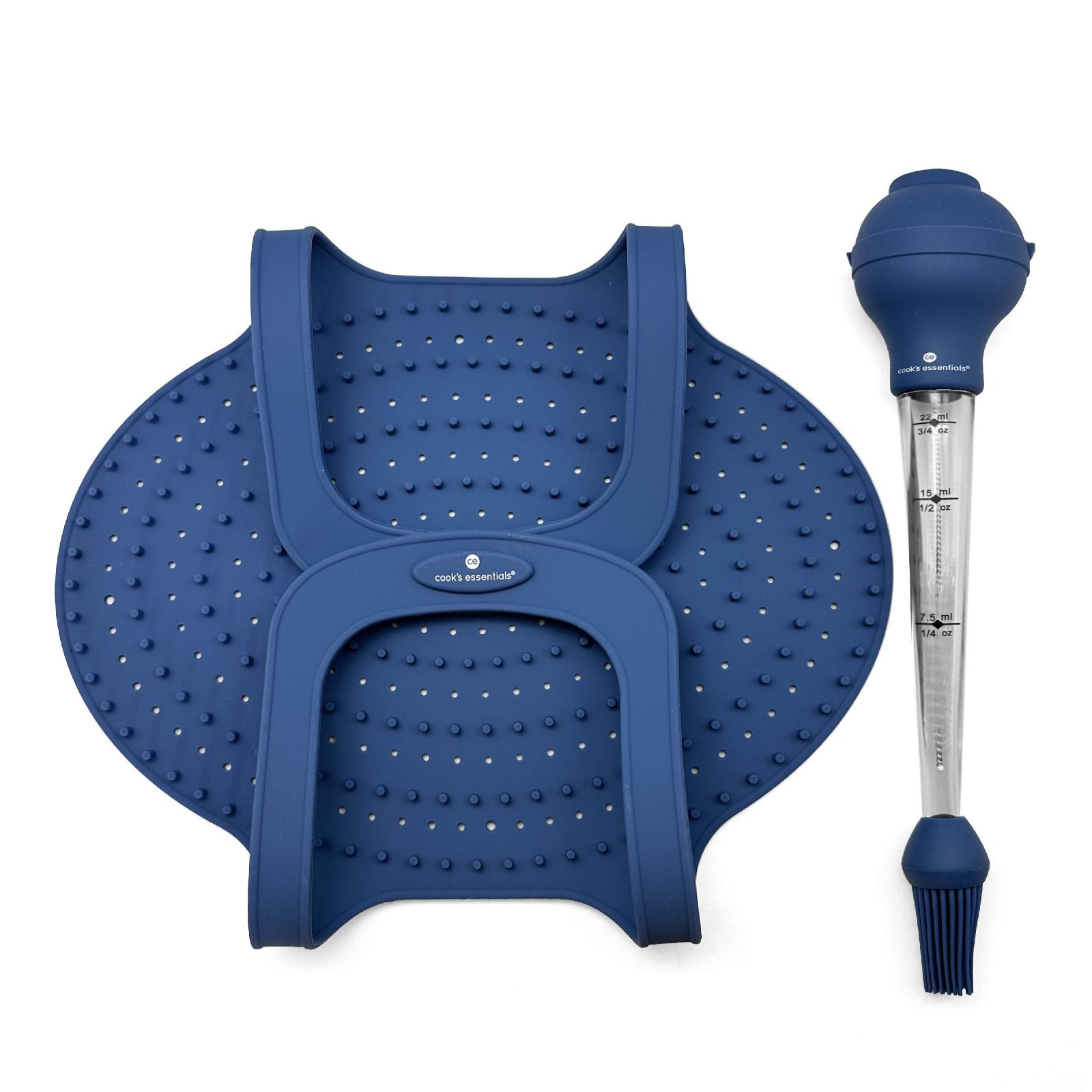 Upgrade your roasting experience with the Cook's Essentials Silicone Roasting Sling with Baster. This versatile kitchen tool, crafted from premium food-grade silicone, effortlessly lifts and roasts your favourite meats to perfection. Designed to withstand high temperatures, it provides excellent heat resistance and protection, while also boasting a non-stick surface and compact, foldable form. Ideal for lifting heavy roasts, poultry and more, this set also includes a multi-use baster and brush for precise basting.