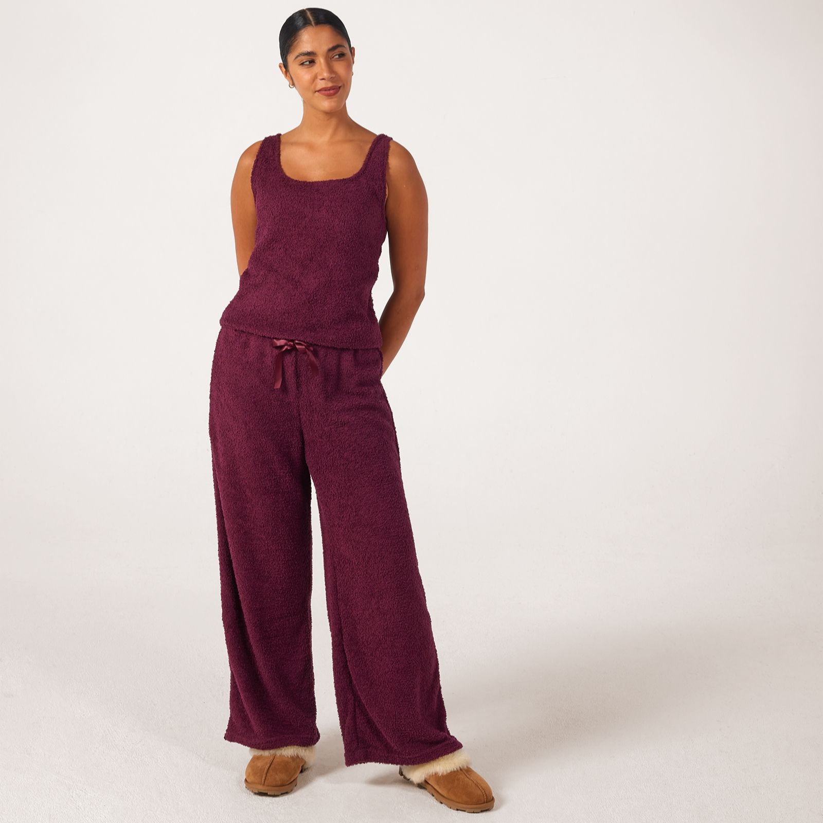 Sink into effortless comfort with the Cozee Home Boucle two-piece Lounge Set, featuring a square neck vest and wide-leg trousers with a satin tie detail. Whether you're unwinding after a busy day or enjoying a slow morning, this elegant lounge set brings a touch of luxury to your everyday routine. Pair it with your favourite slippers and a cosy robe for the ultimate in at-home style.