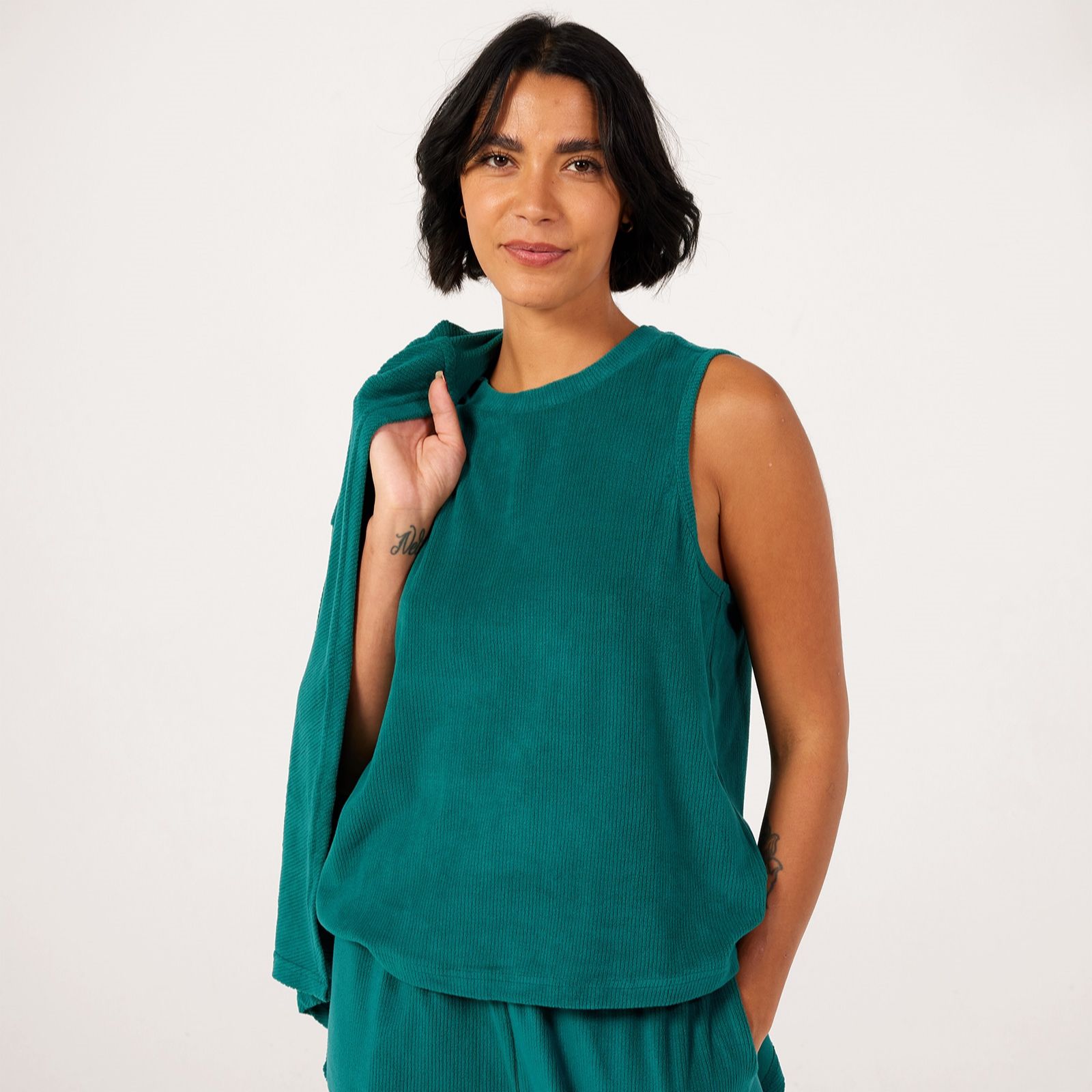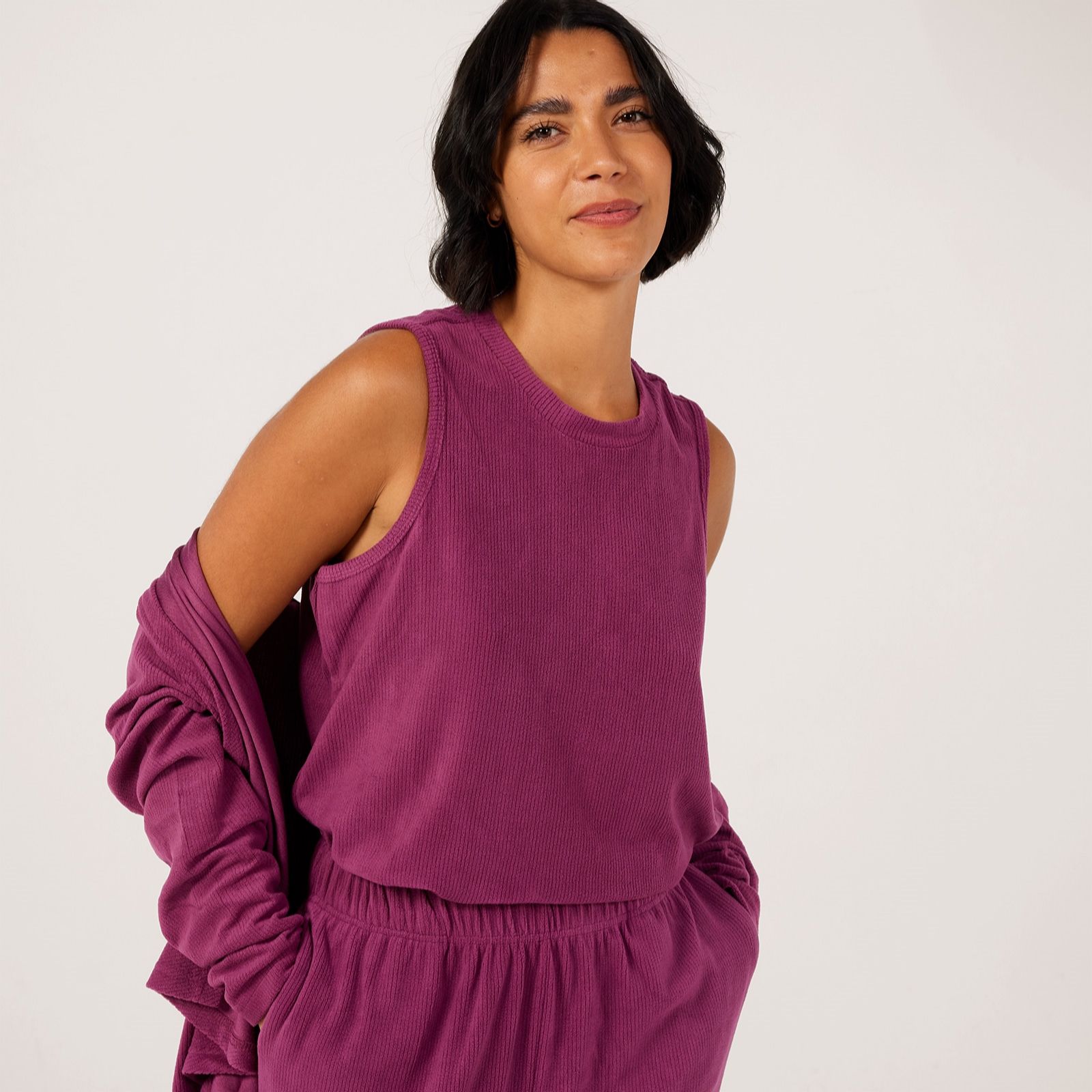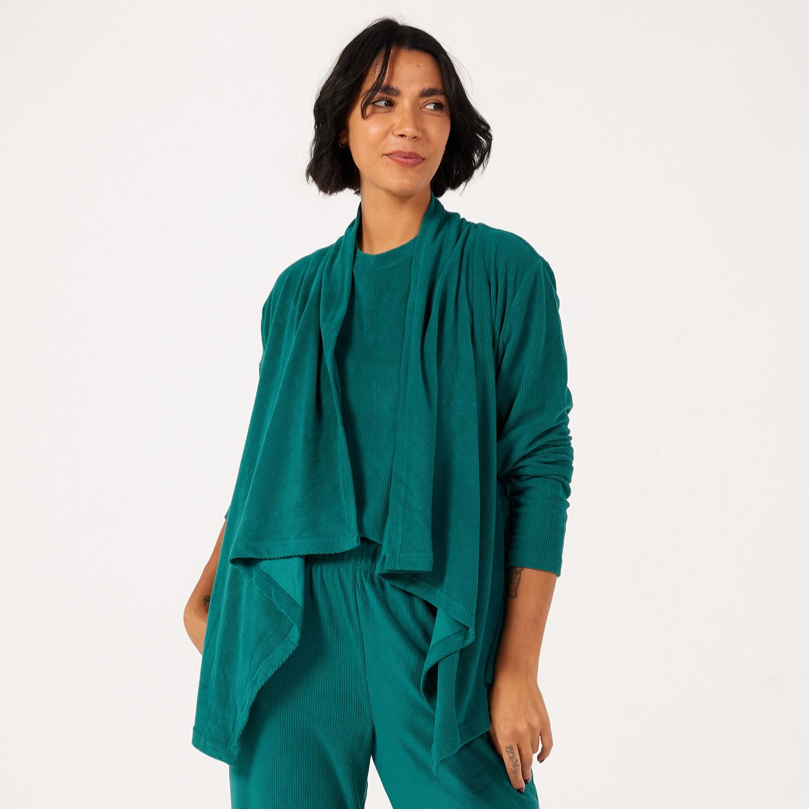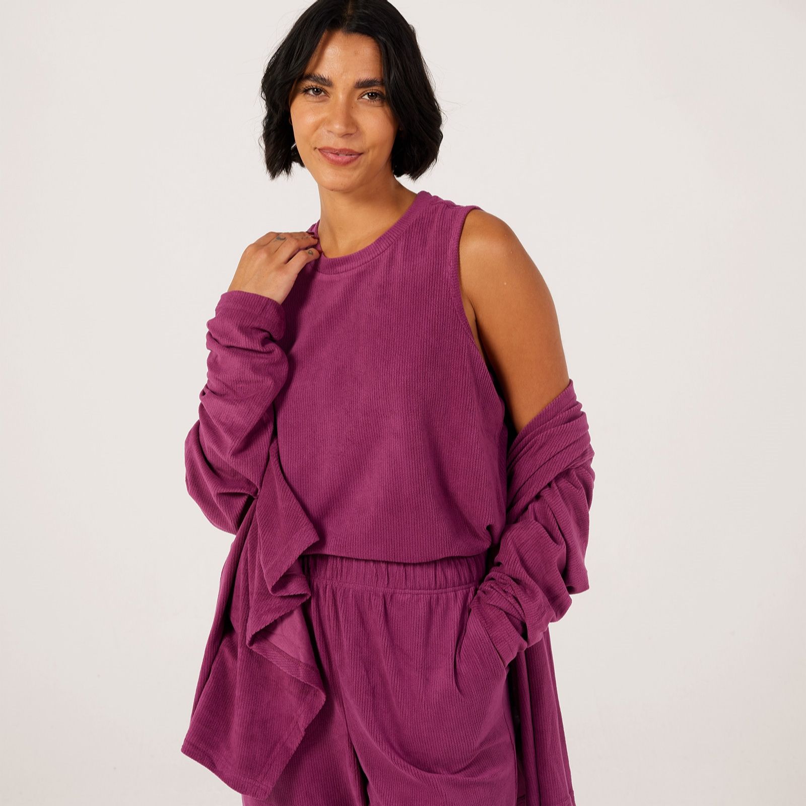 Relax in cosy comfort with the Cozee Home Dobby ribbed three-piece lounge set, designed for easy layering and all-day wear. Featuring an open-front cascade cardigan, sleeveless tank top and matching trousers, this set is perfect for unwinding at home, enjoying a weekend lie-in or adding an extra layer for a relaxed coffee run. Pair with your favourite slippers or trainers for a laid-back look that works from sofa to street.