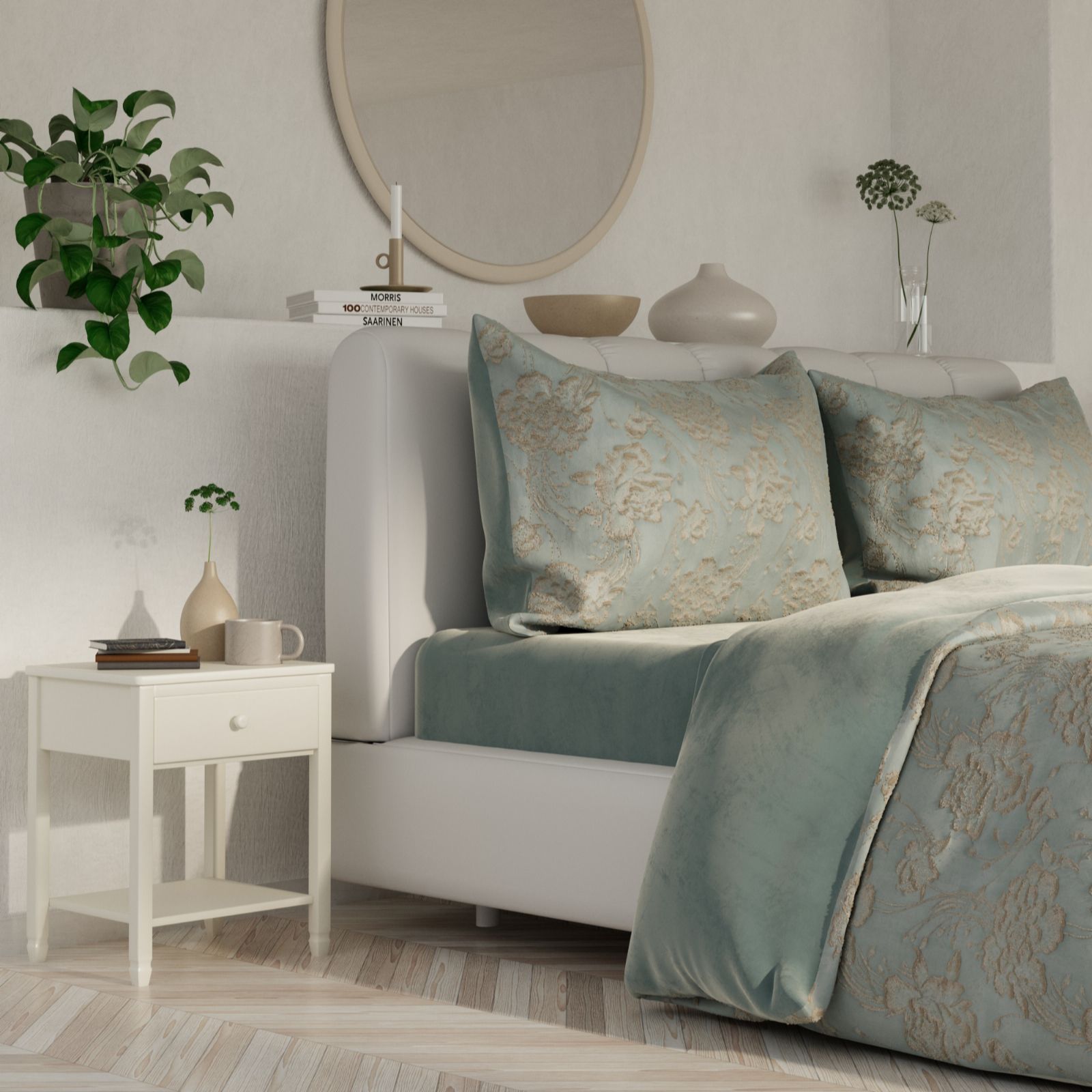 Transform your bed into a haven of opulence with the Cozee Home floral jacquard with Velvetsoft four-piece duvet set. Featuring a richly textured floral jacquard front and sumptuous Velvetsoft reverse, this duvet set combines elegance with comfort. Perfect for adding a touch of luxury to your restful nights, it includes a duvet cover, two pillowcases and a fitted sheet to dress your bed in coordinated style.