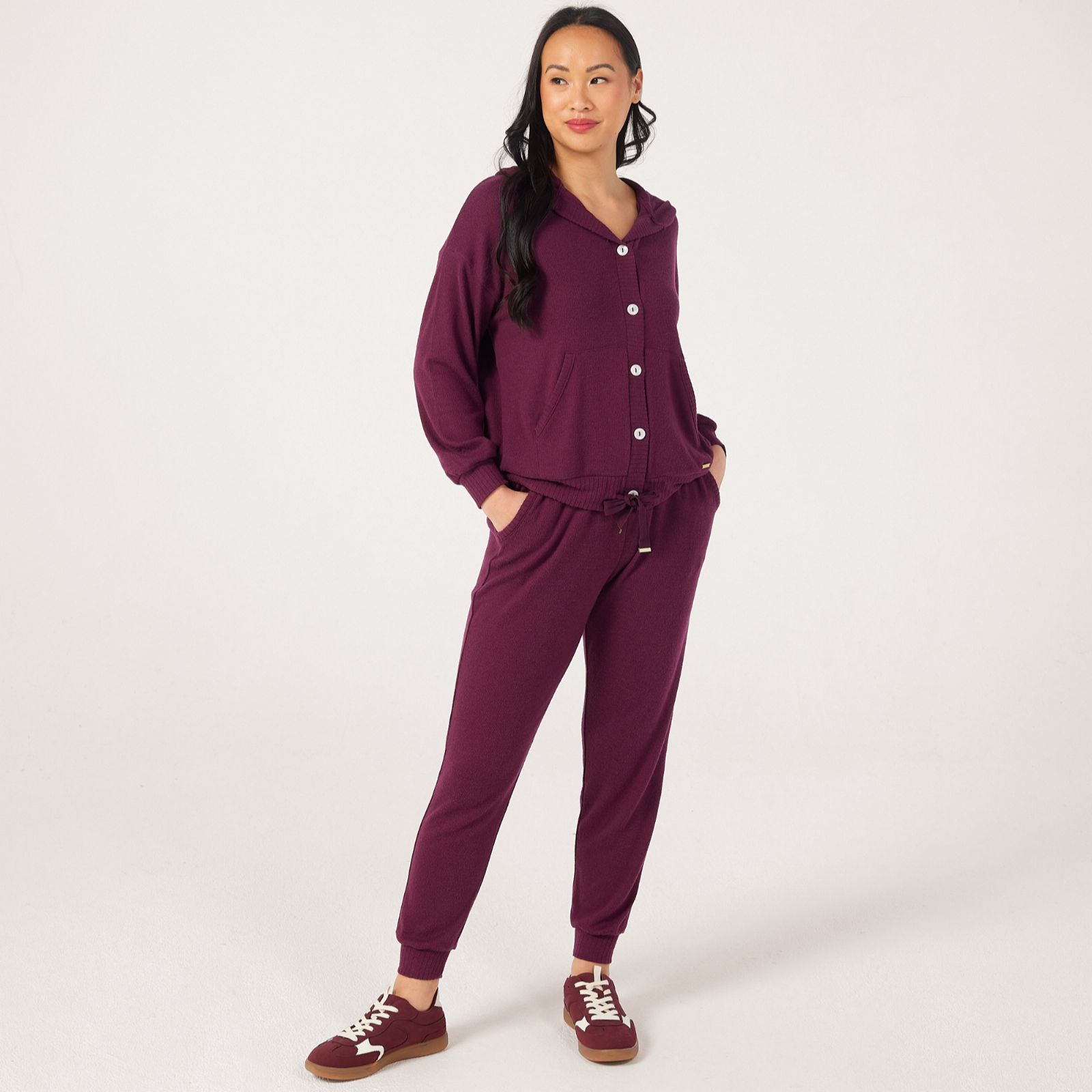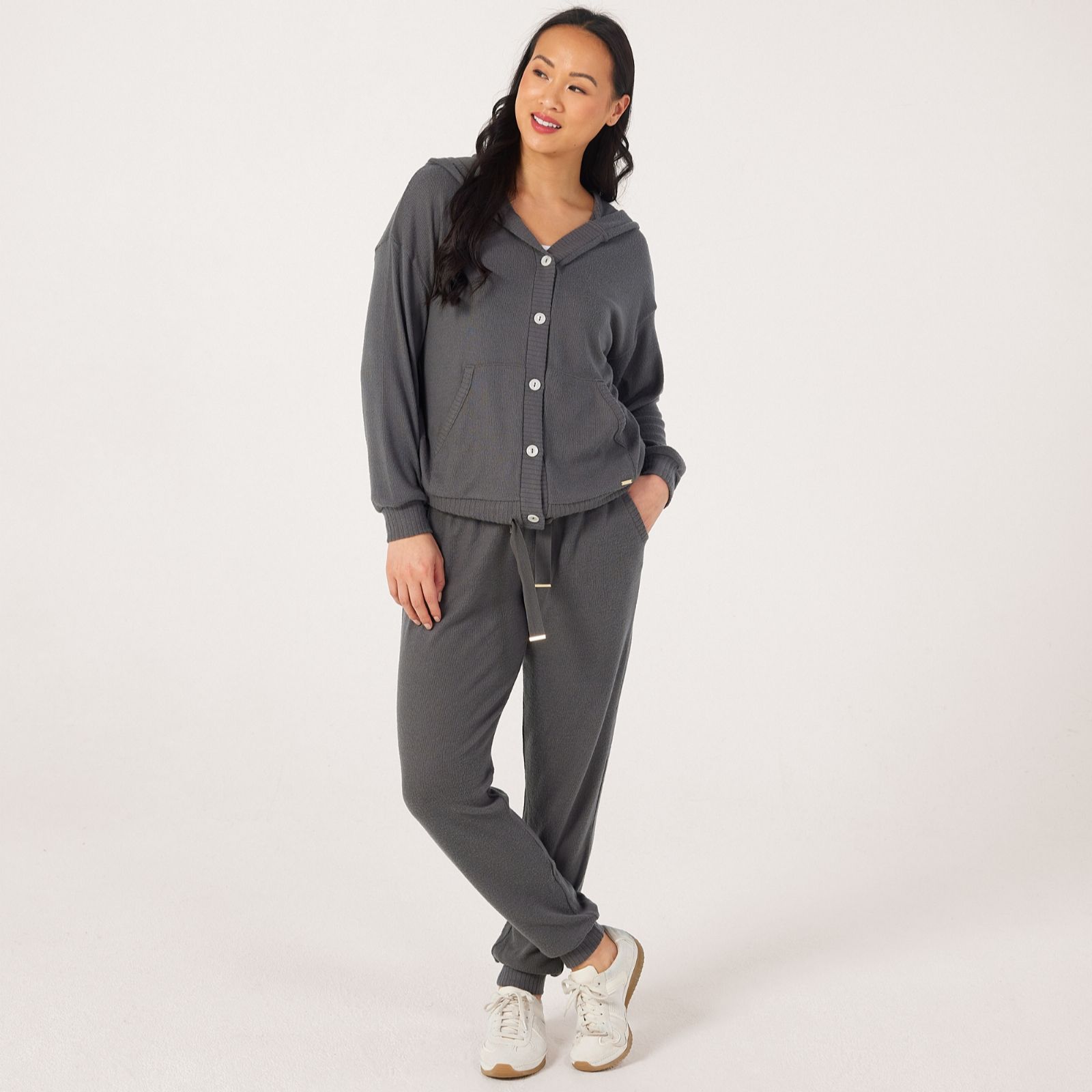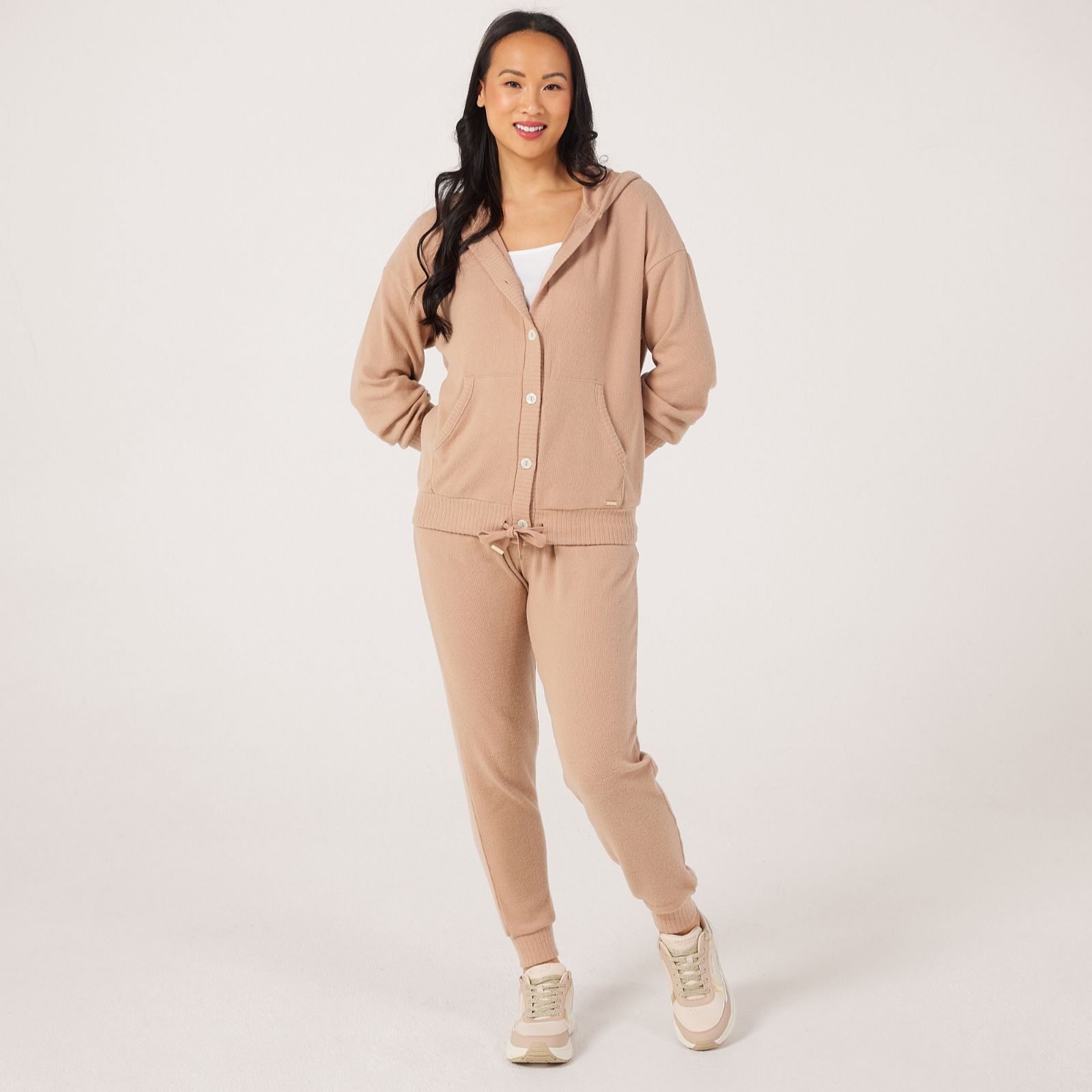 Wrap yourself in comfort with the lounge knitted hoodie from Cozee Home, designed in a relaxed fit and crafted with a soft brushed fabric for ultimate cosiness. The ribbed trims and functional drawcord add a stylish touch, while the kangaroo pocket and hood make it perfect for chilly evenings or laid-back weekends. Pair with your favourite joggers or leggings for a snug, effortless look that's ideal for lounging at home or casual outings.