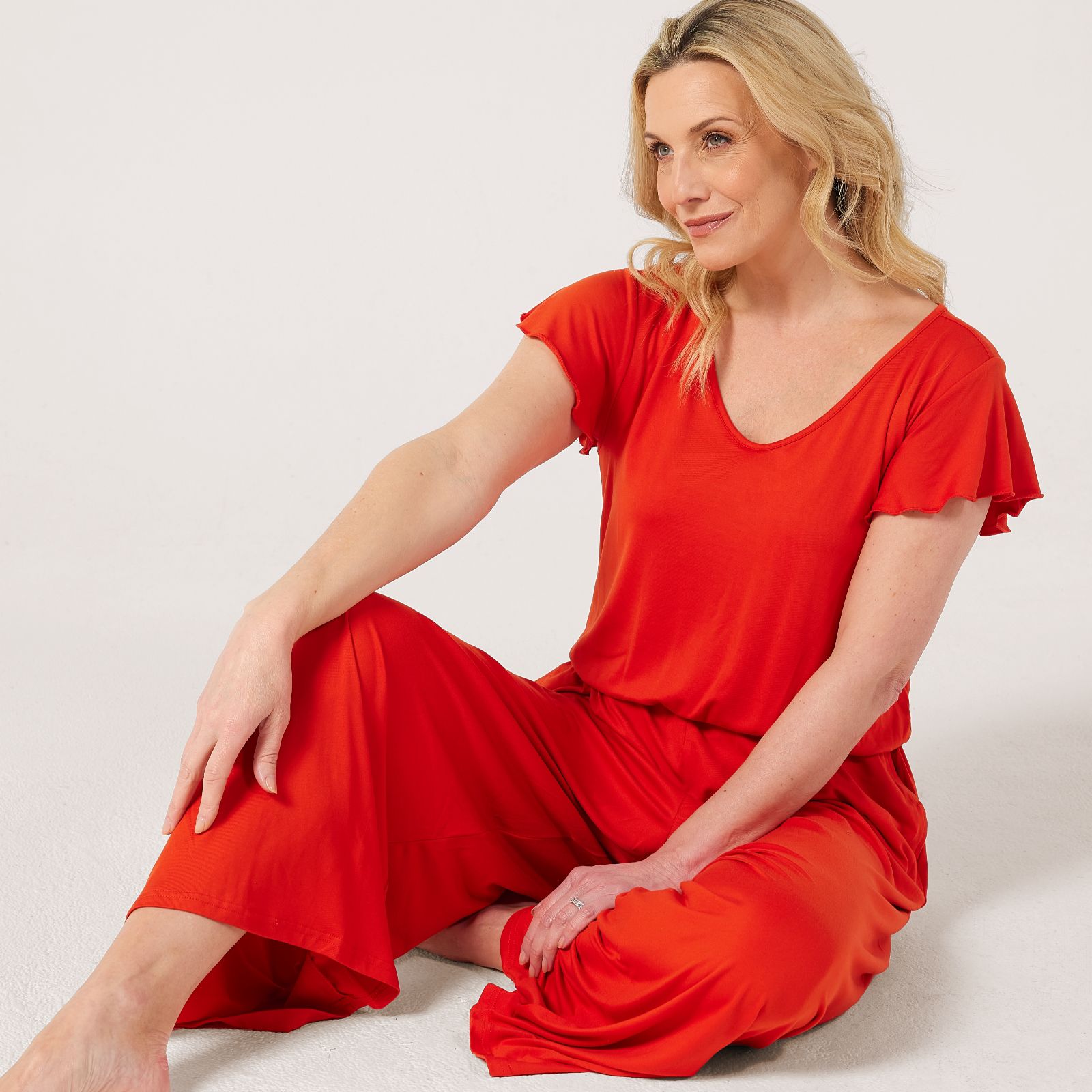 Comfort, meet chic. This jumpsuit from Cozee Home lets you have the best of both - from the contemporary wide legs to the soft, stretchy (and breathable!) fabric, it's your answer to all-day comfort that feels as good as it looks. Finished with delicate, fluttery sleeves, this piece is the ultimate all-in-one lazy-day ensemble that you won't mind answering the door or popping to the shops in. Pair it with your favourite TV show and a mug of hot chocolate for the perfect night in.