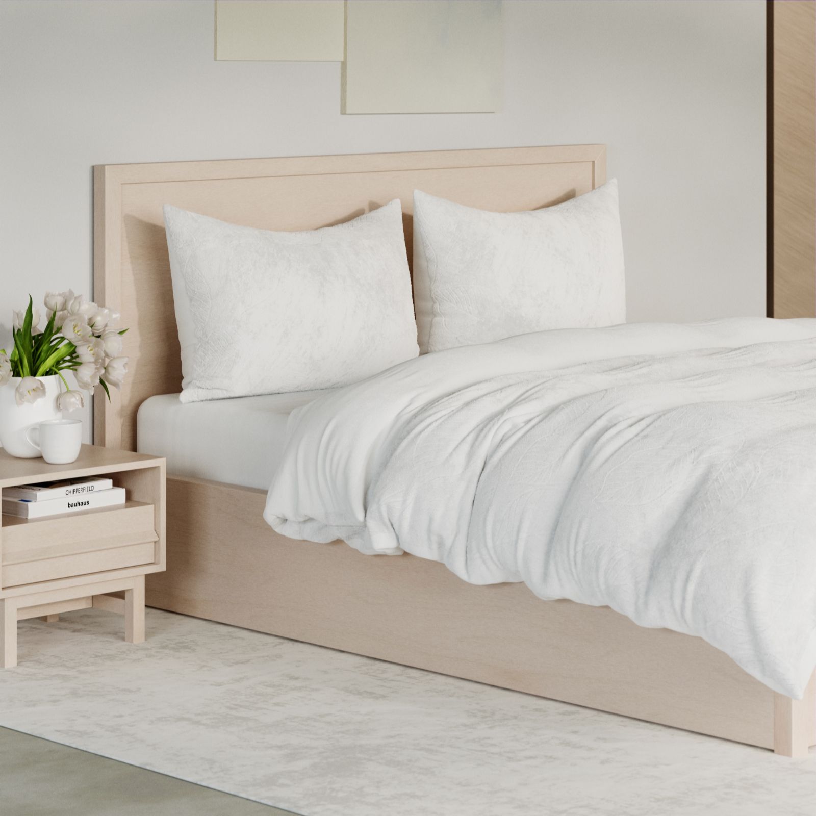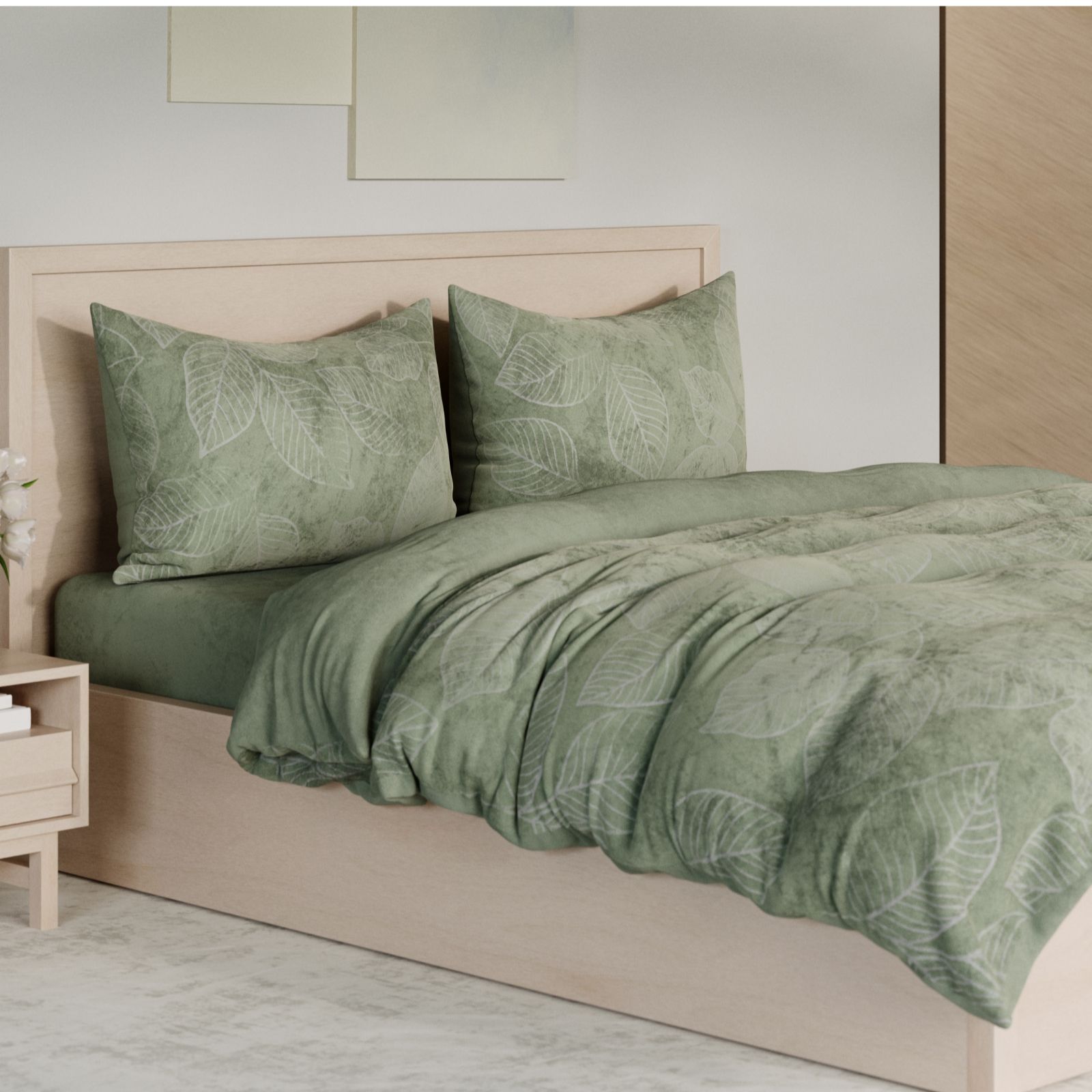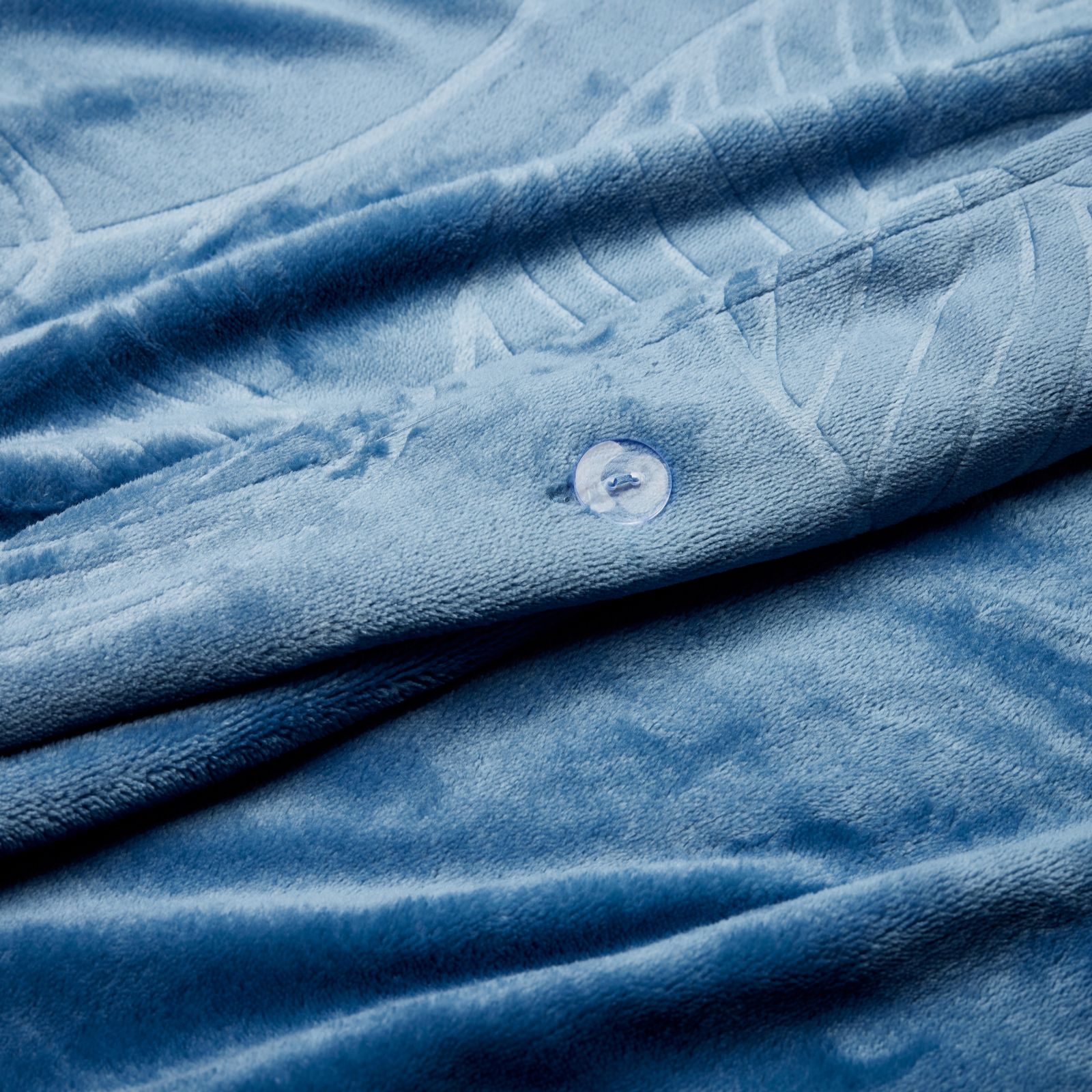 - Duvet cover and pillowcases feature a 200gsm velvetsoft leaf-embossed front with a solid velvetsoft reverse