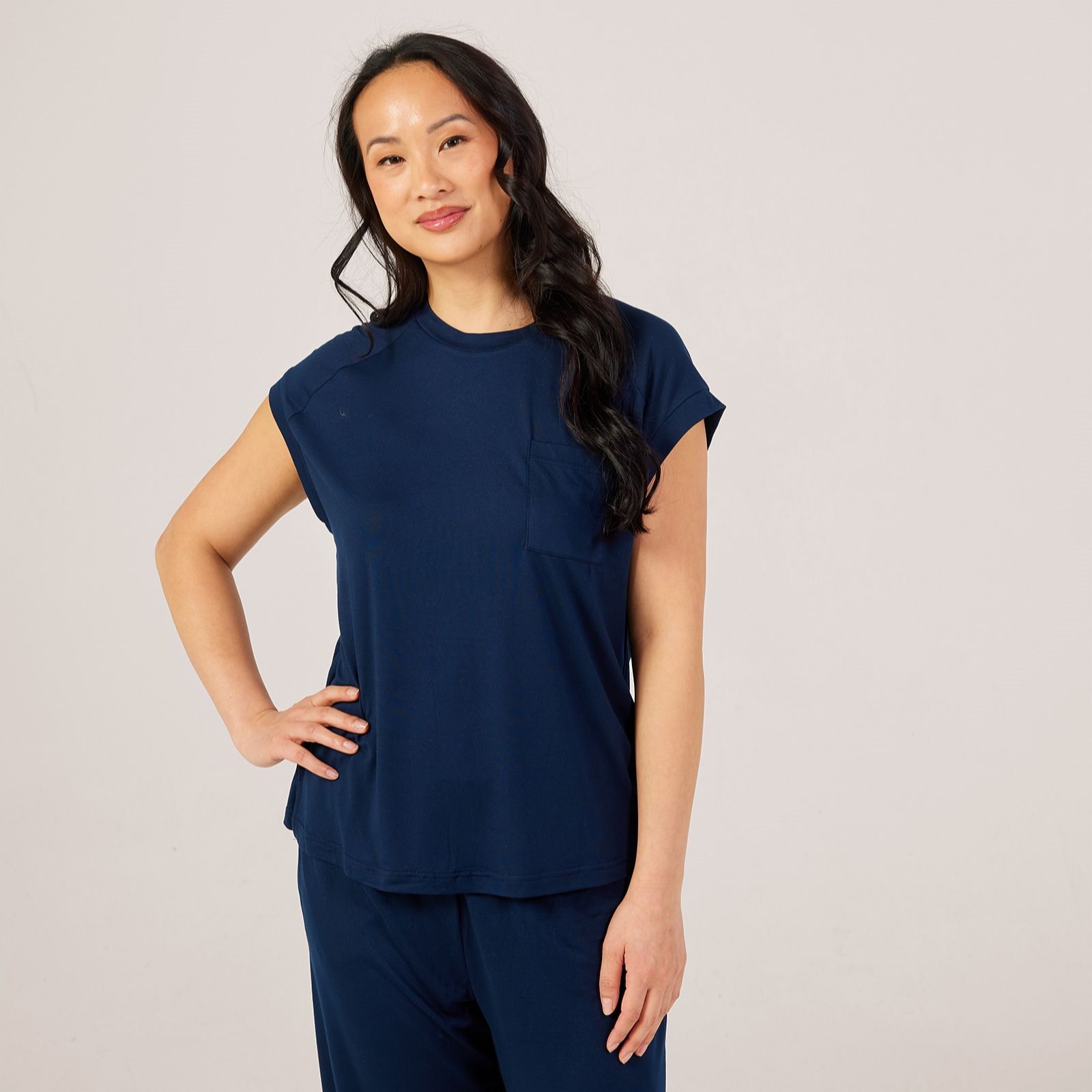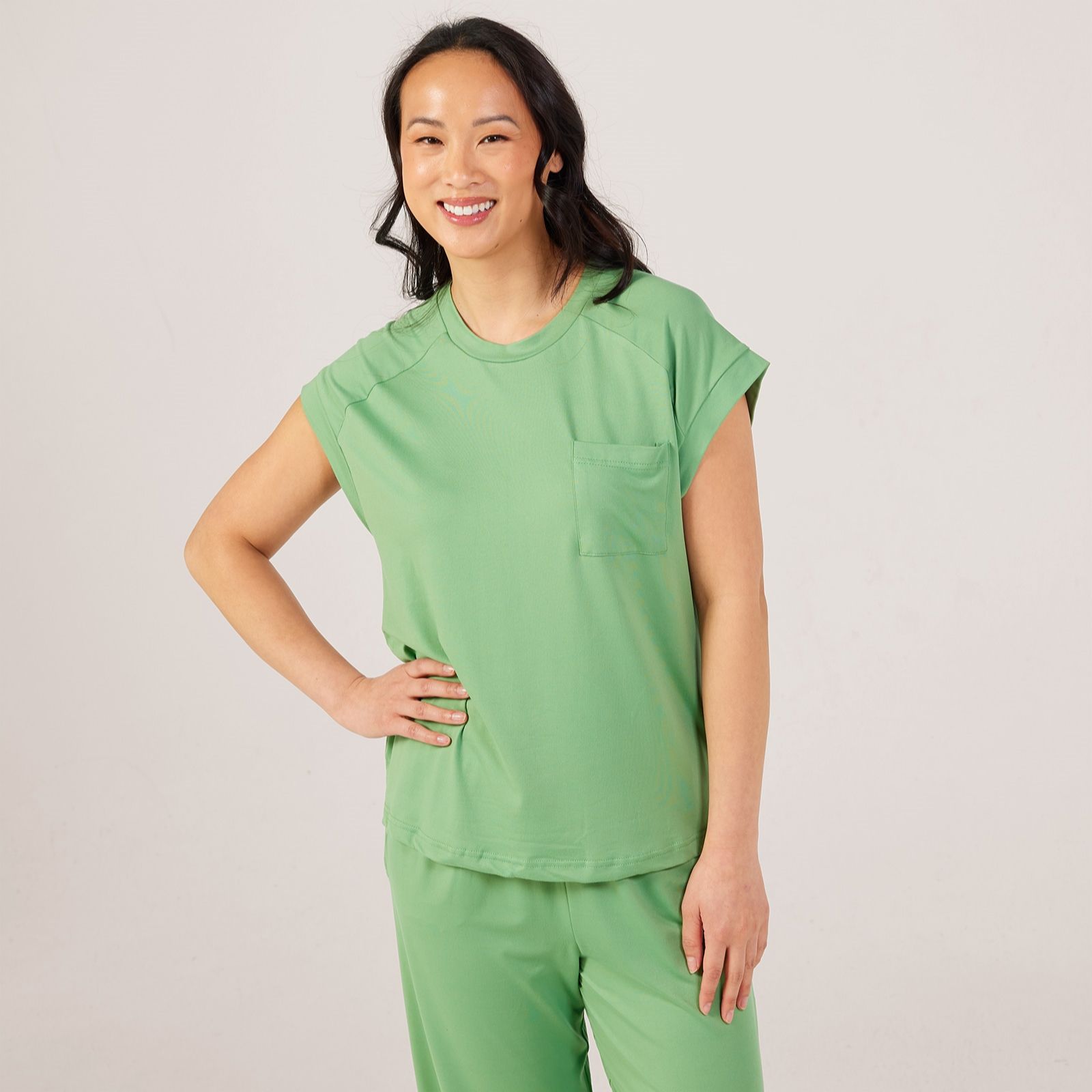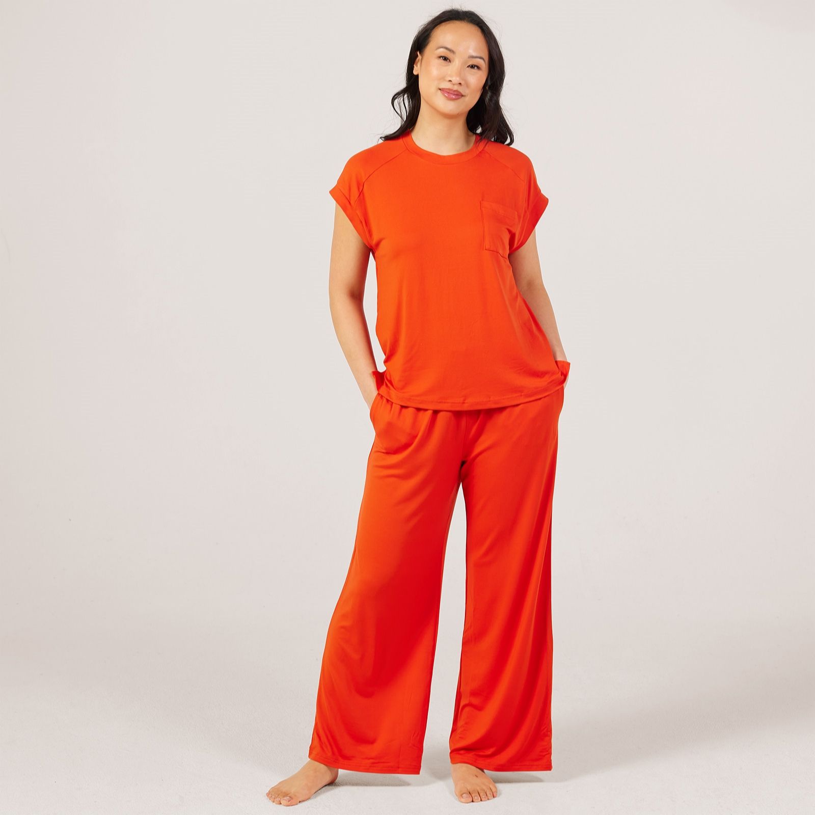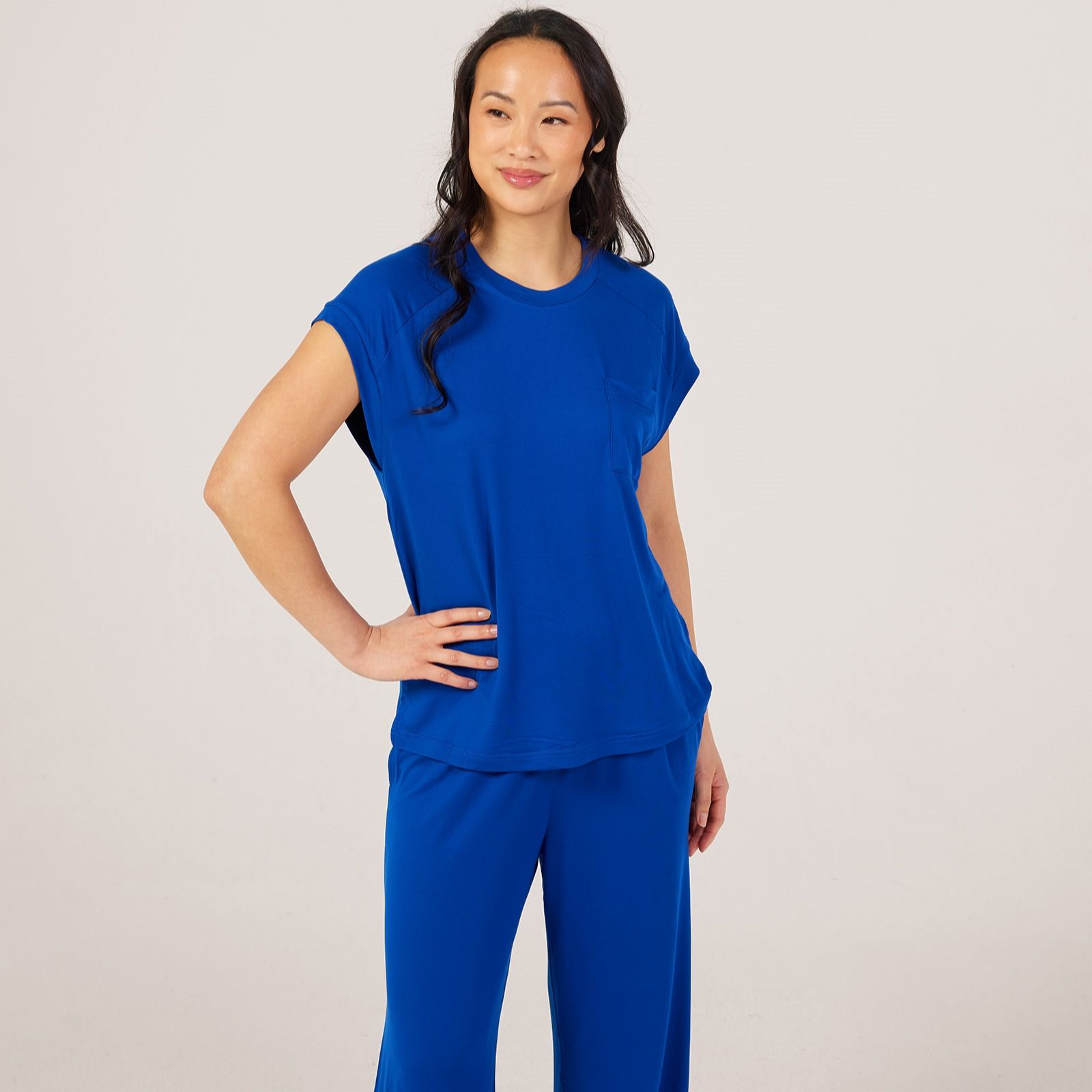 Relax in cool, casual style with the silky soft pyjama set from Cozee Home, featuring a smooth crew neck cap-sleeved top with a handy patch pocket and matching trousers with side pockets and an elasticated waist. Perfect for unwinding at home, enjoying a lazy weekend morning or curling up with a good book on the sofa, this pyjama set blends comfort with understated elegance. Pair with cosy slippers or a lightweight robe for a complete loungewear look you'll love.