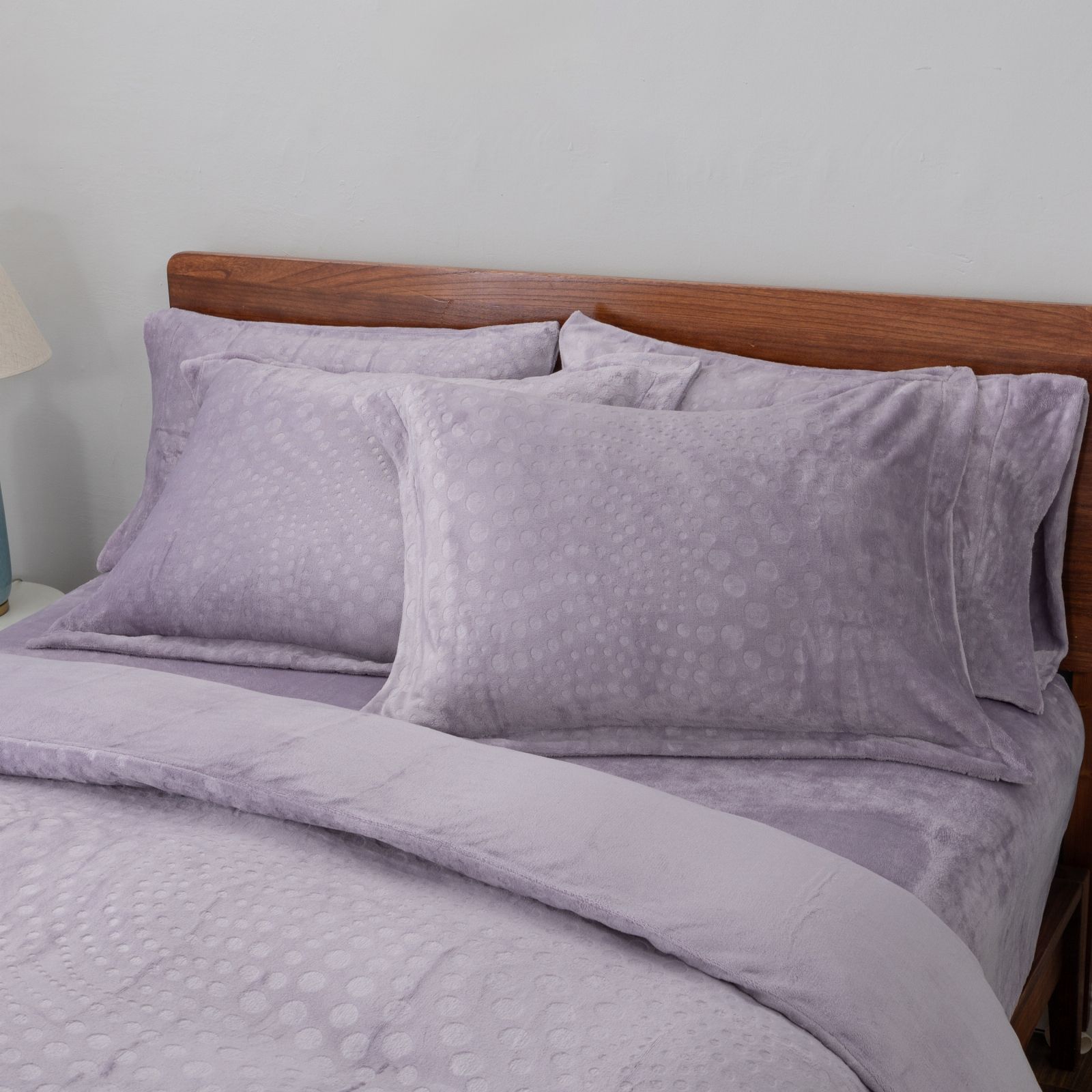 - Spot Embossed Velvetsoft face fabric and Loftmink reverse on duvet cover and pillowcases