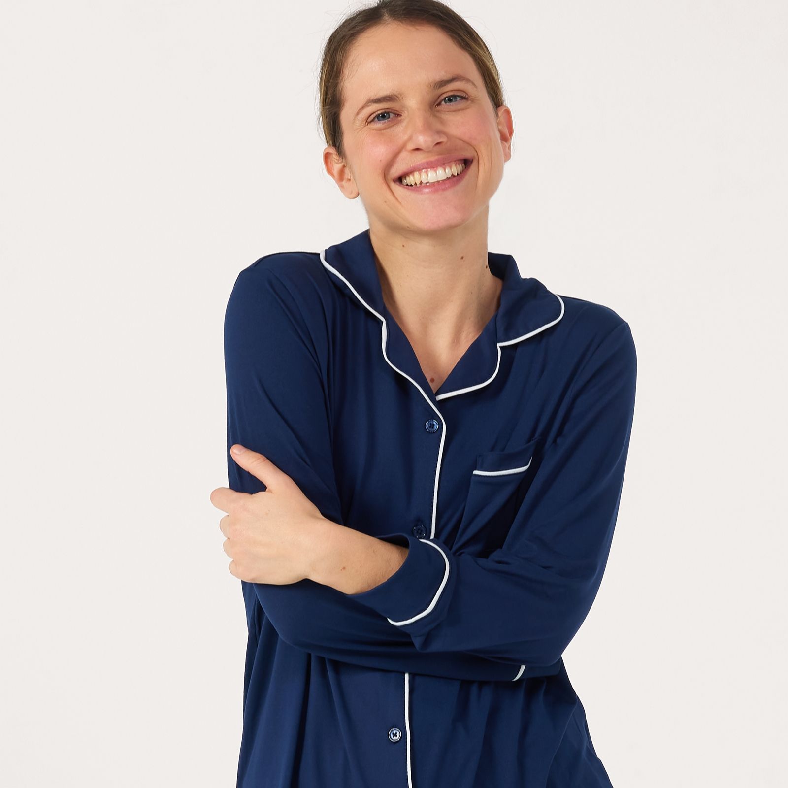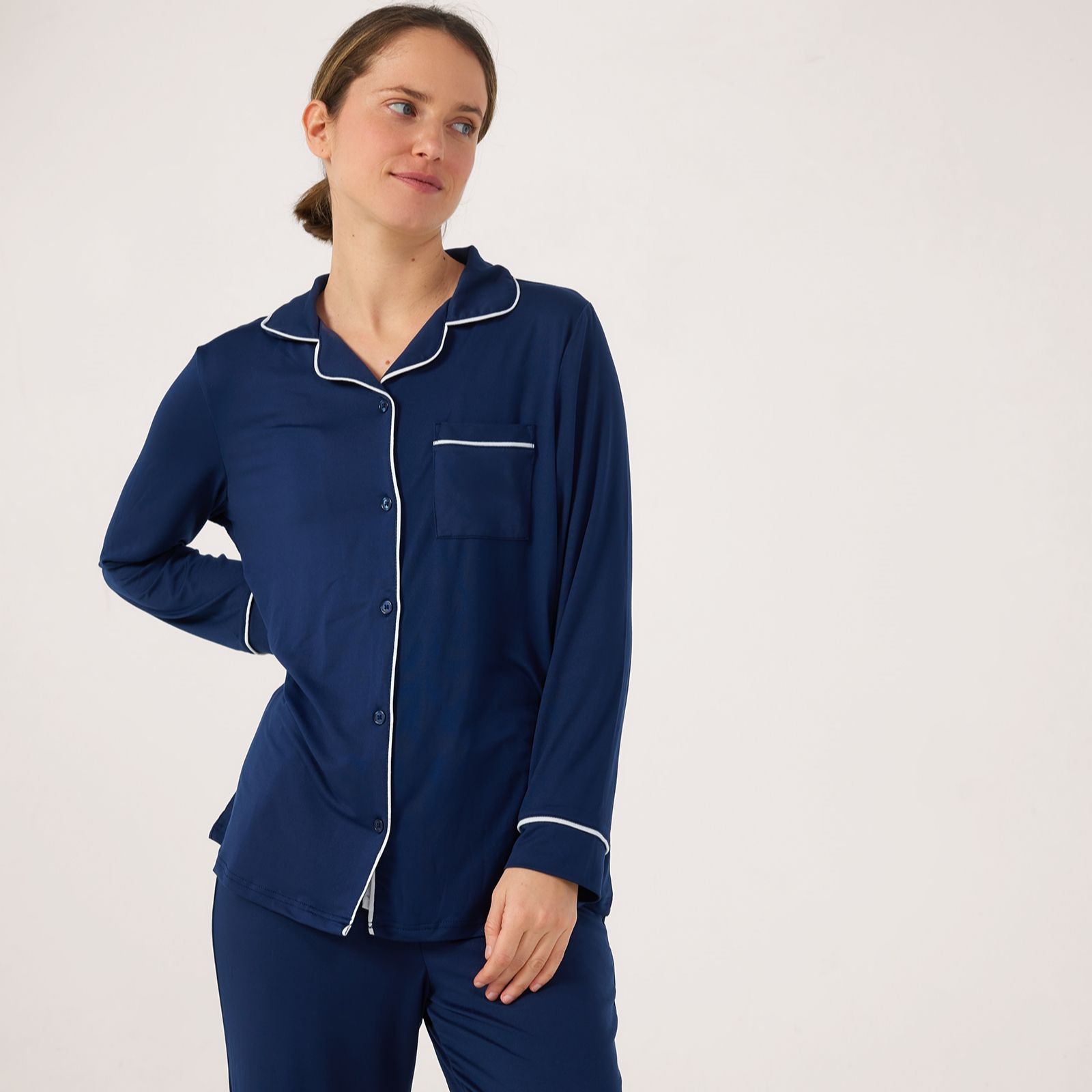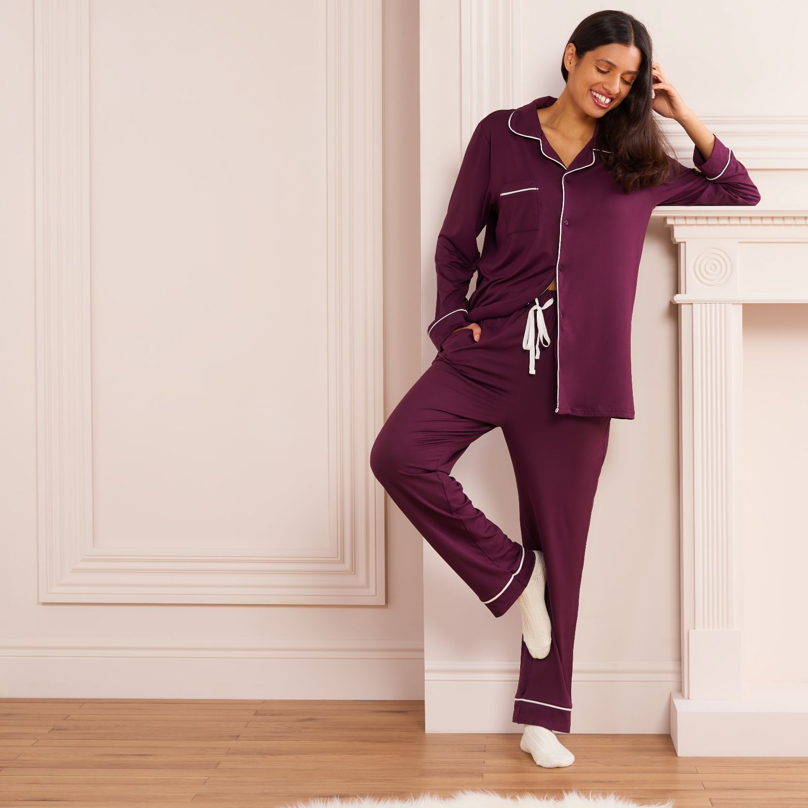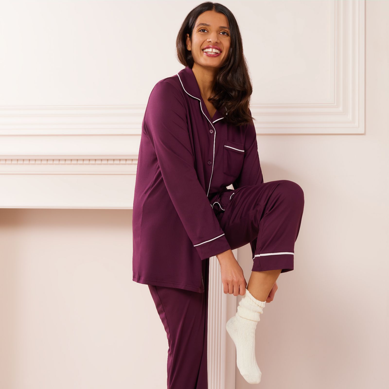 now you don't have to choose between them! These pyjamas boast a classic collared design with a button-down front and an elegant piped trim, perfect for lounging in as well as snuggling down in bed.