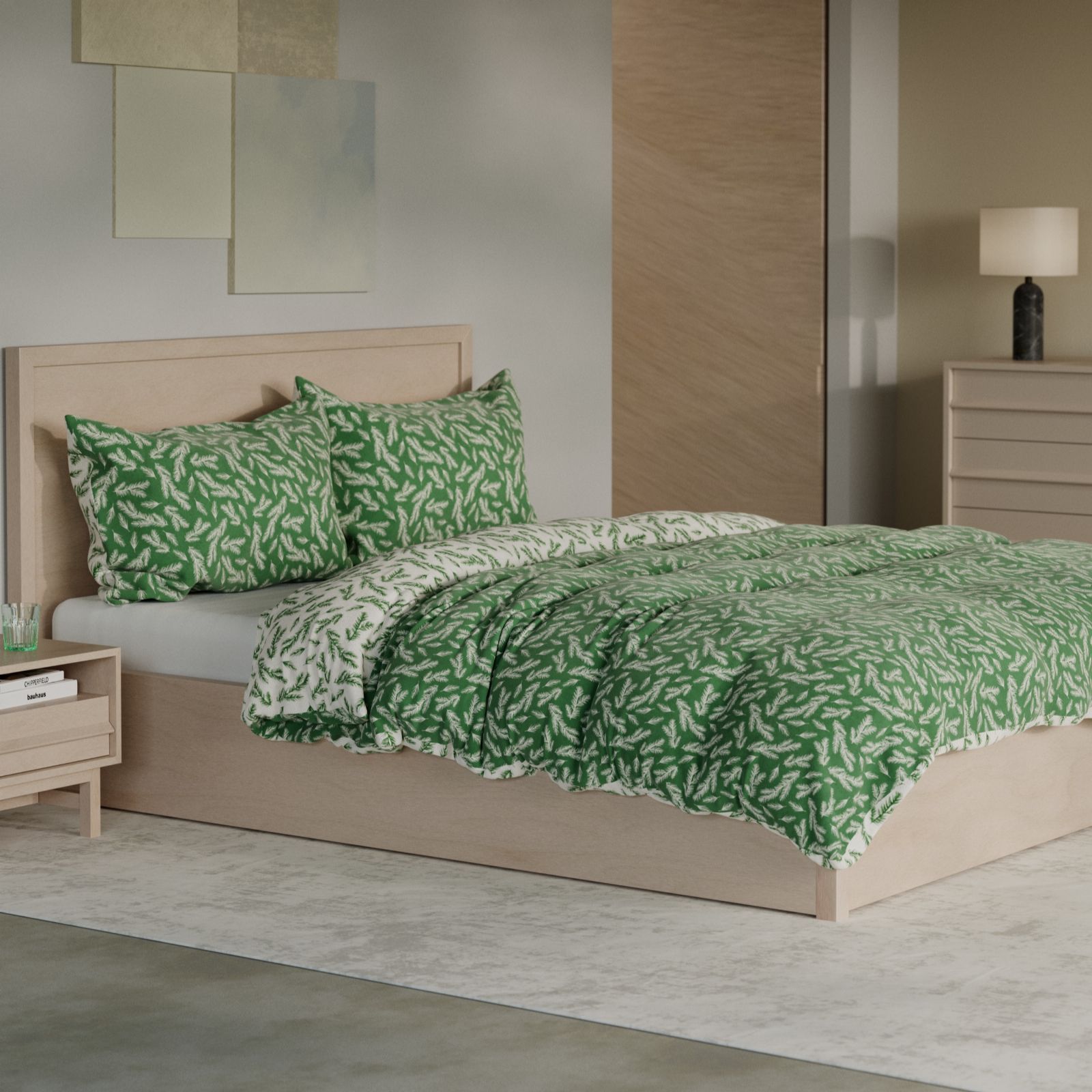 Refresh your bedding with the Velvetsoft Evergreen three-piece duvet set from Cozee Home, designed to envelop your bedroom in plush comfort and botanical charm. Each set includes a duvet cover and two pillowcases, both showcasing a Velvetsoft Evergreen print on the front and reverse, perfect for adding warmth and a fresh new look to your space.
