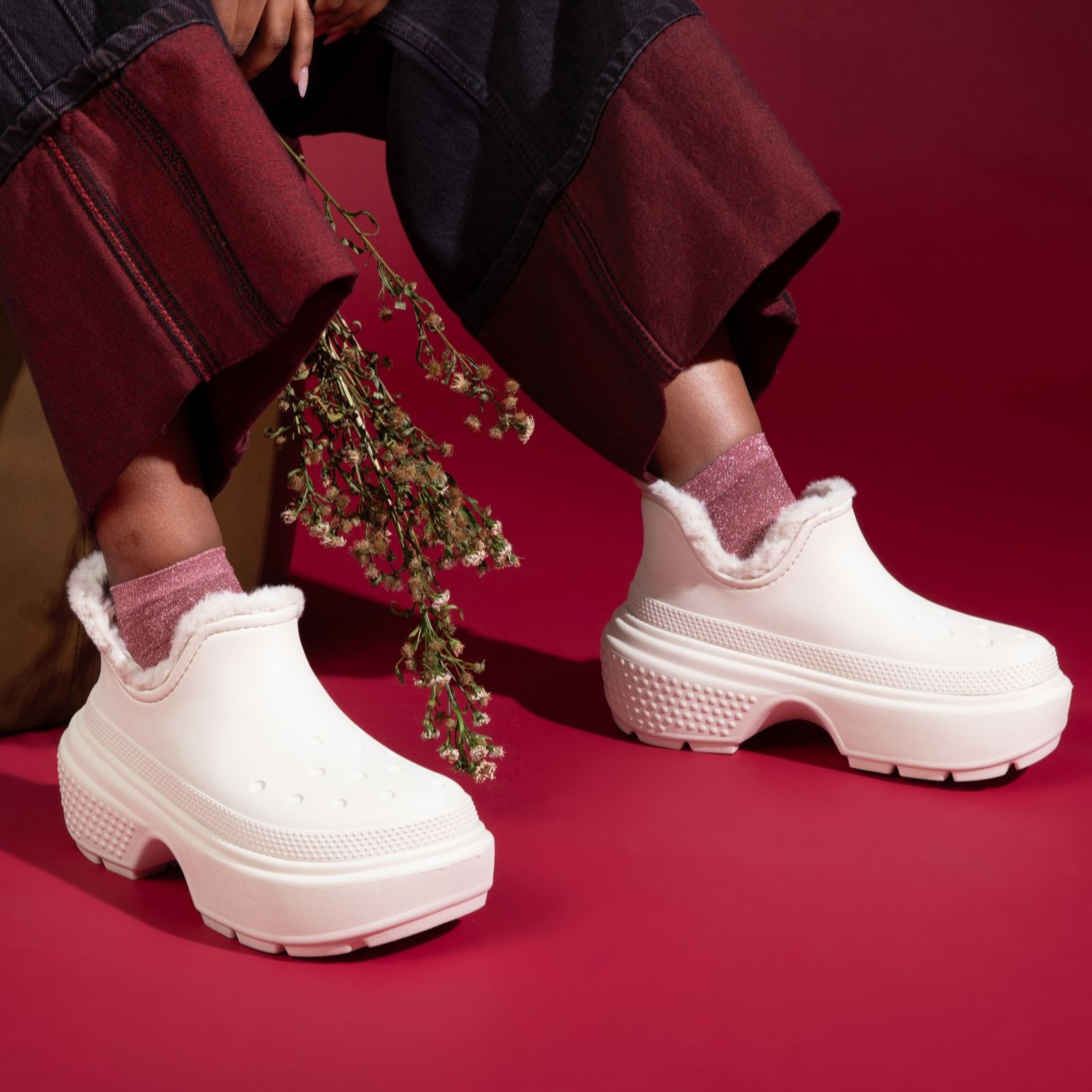 Make a bold statement with the Stomp Shorty clog from Crocs, where exaggerated chunky soles meet lightweight comfort for a look that's daring yet easy to wear. Perfect for adding edge to your everyday outfits, these clogs transition effortlessly from casual brunches to outdoor adventures. Slip them on with wide-leg trousers or a relaxed jumpsuit for a confident, trend-forward finish.
