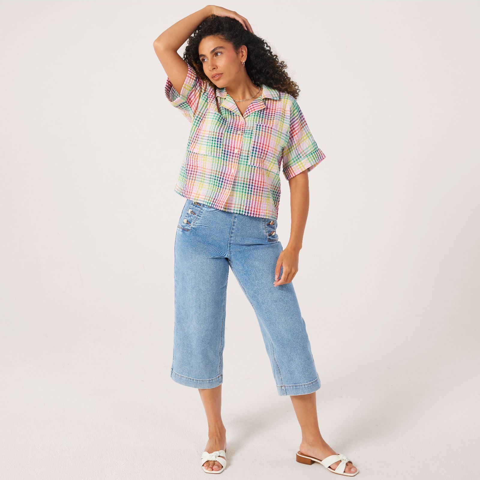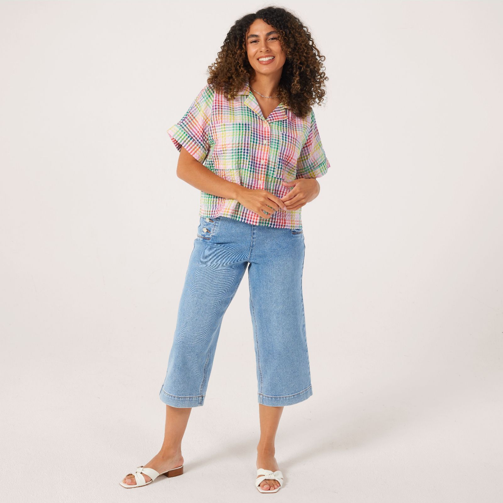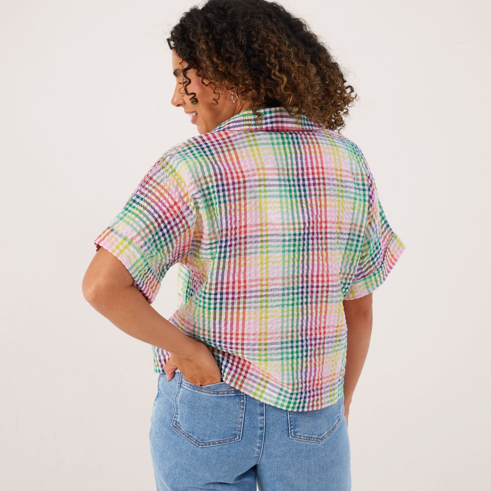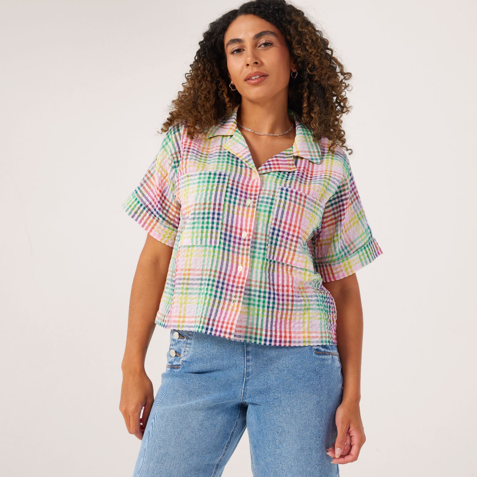 Embrace effortless style with the Dannii Minogue Check Revere Shirt in a petite fit. This chic shirt boasts a timeless check pattern and a revere collar, offering a classic yet contemporary look. Perfect for both casual outings and more polished occasions, this versatile piece can be dressed up or down with ease. Pair it with jeans for a laid-back vibe or tuck it into a skirt for a more refined ensemble.