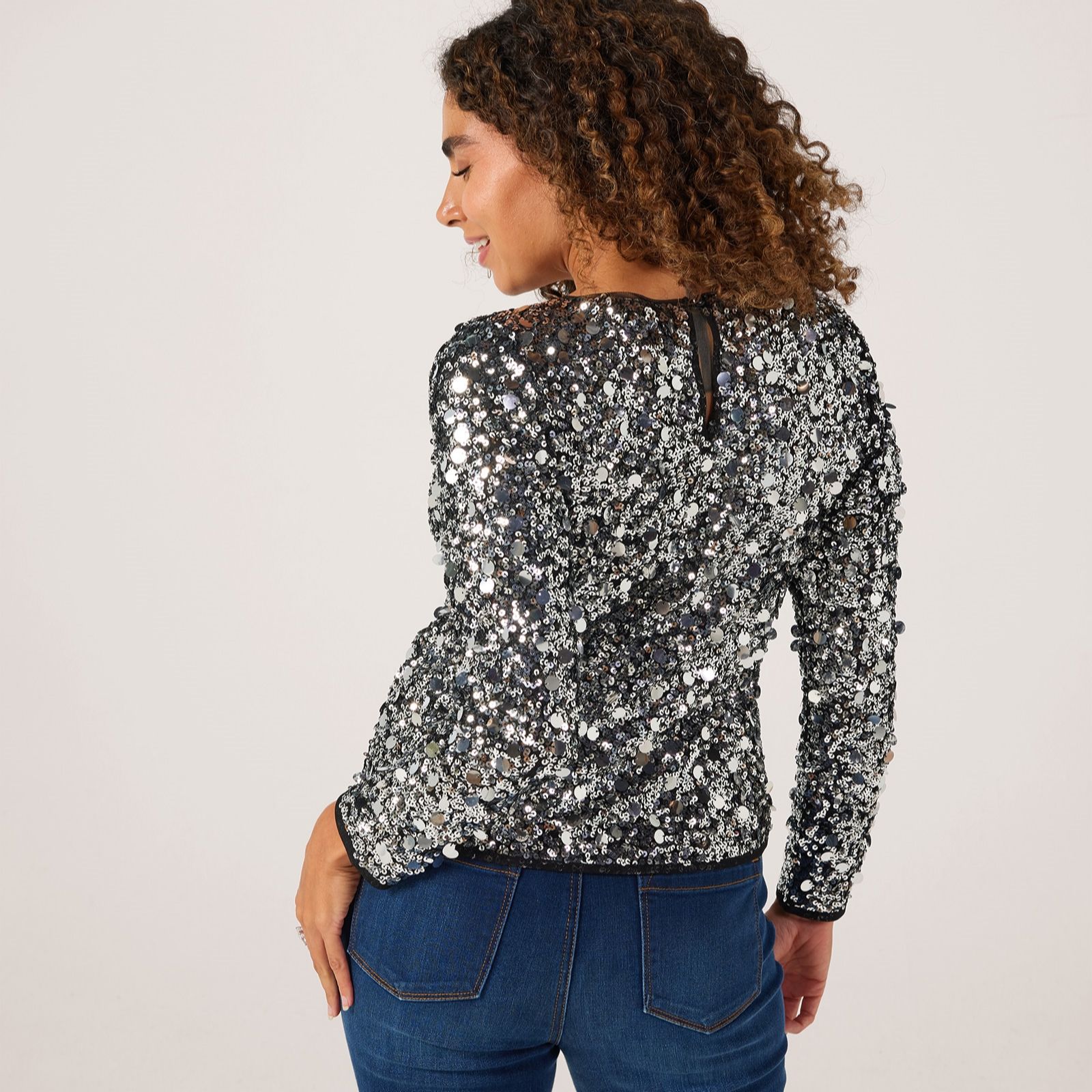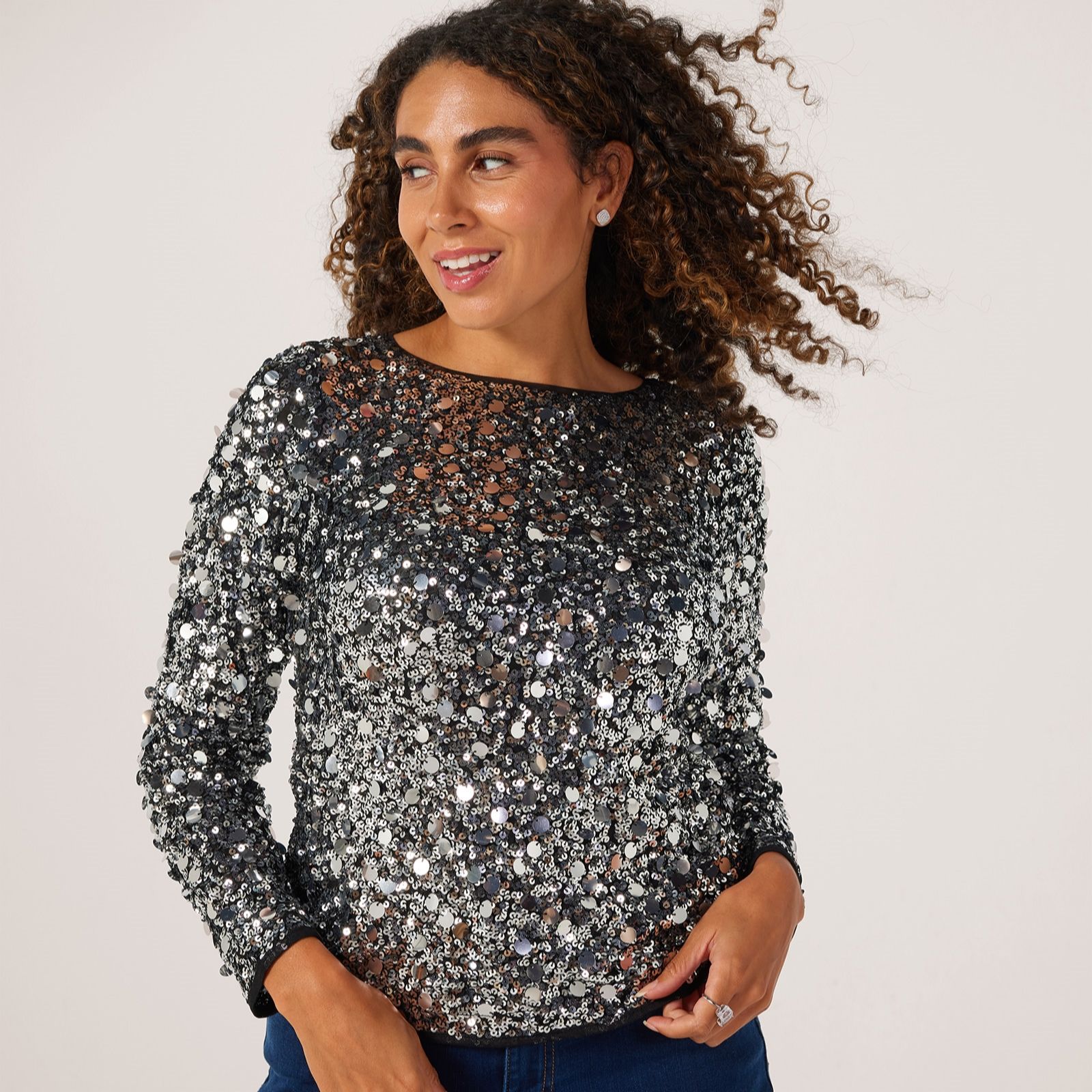 Be ready for anything in the Dannii Minogue sequin long sleeve top petite, a dazzling piece that brings instant glamour to your wardrobe with its all-over sequin embellishment. Perfect for glamorous soirees, evenings out or adding sparkle to your everyday, this top's elegant long sleeves make it both sleek and versatile. Try pairing it with tailored trousers or a pencil skirt for a chic, party-ready look.