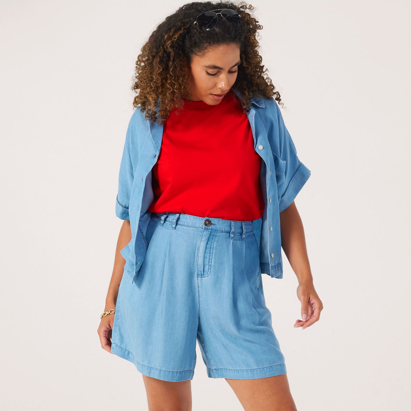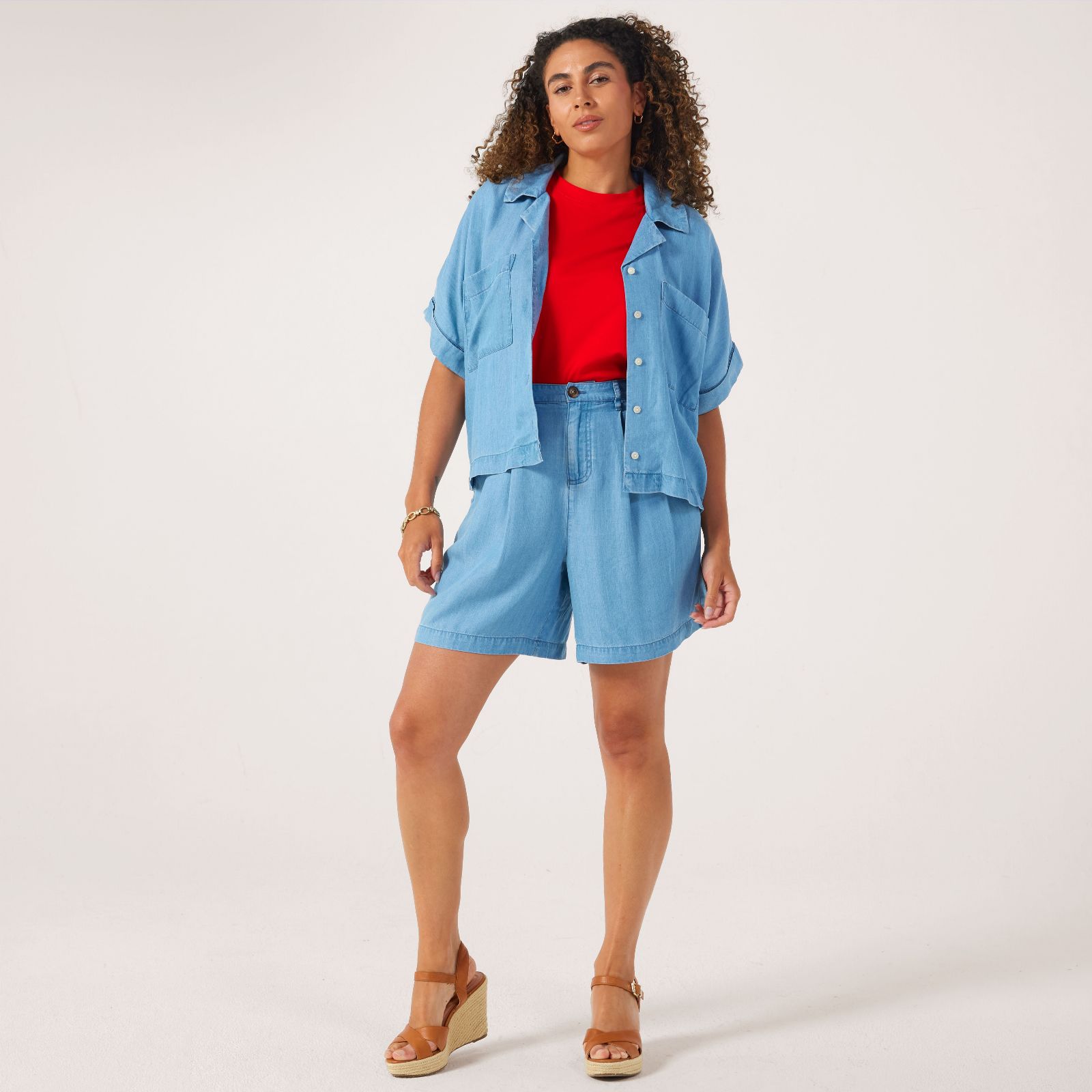 Step into a world of comfort and chic with these Dannii Minogue shorts in a petite length. Crafted from soft Tencel denim, these shorts are designed to offer a relaxed fit that complements both casual outings and leisurely weekends. Whether you're heading to a brunch or a beach day, their versatile style ensures you stay fashionable. Pair them with a breezy blouse or a tucked-in T-shirt for a laid-back yet stylish look.