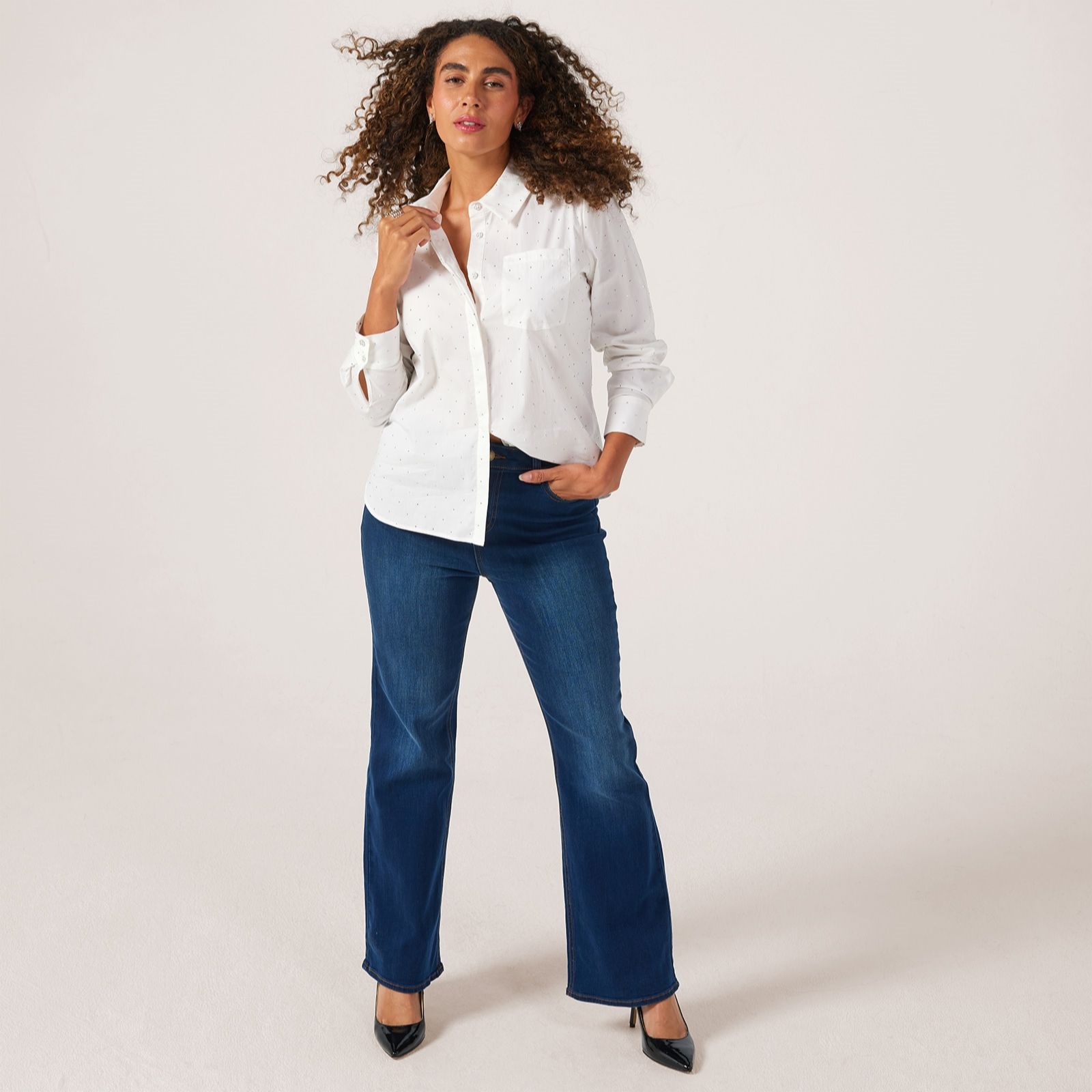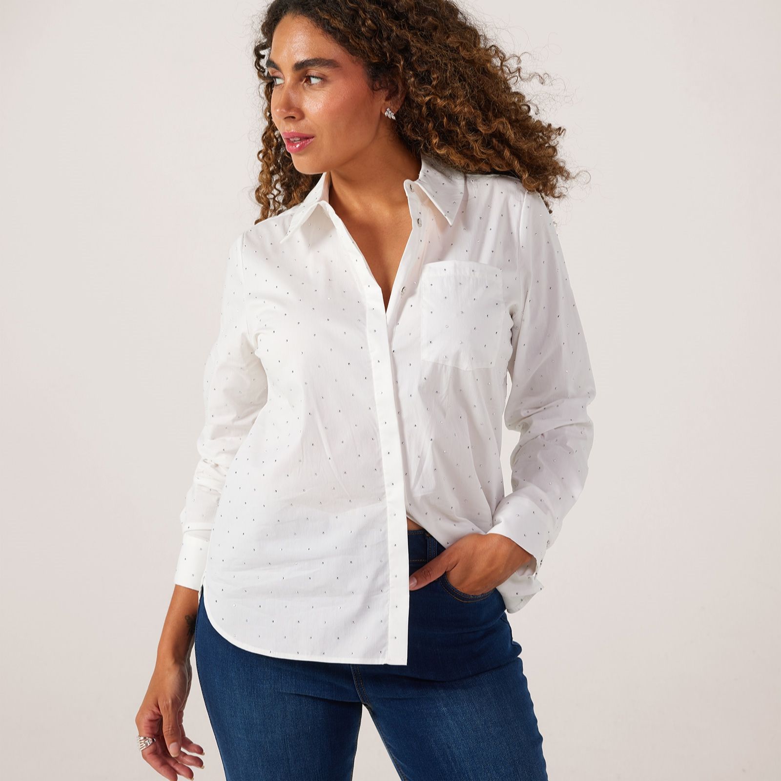 Glam up your office attire with the sparkle embellished shirt petite from Dannii Minogue, a crisp white staple elevated by dazzling hotfix embellishments for a touch of glamour. Perfect for workdays, evening events or smart-casual outings, this shirt brings a chic twist to classic tailoring. Pair it with tailored trousers or a sleek pencil skirt for a polished look that shines from day to night.