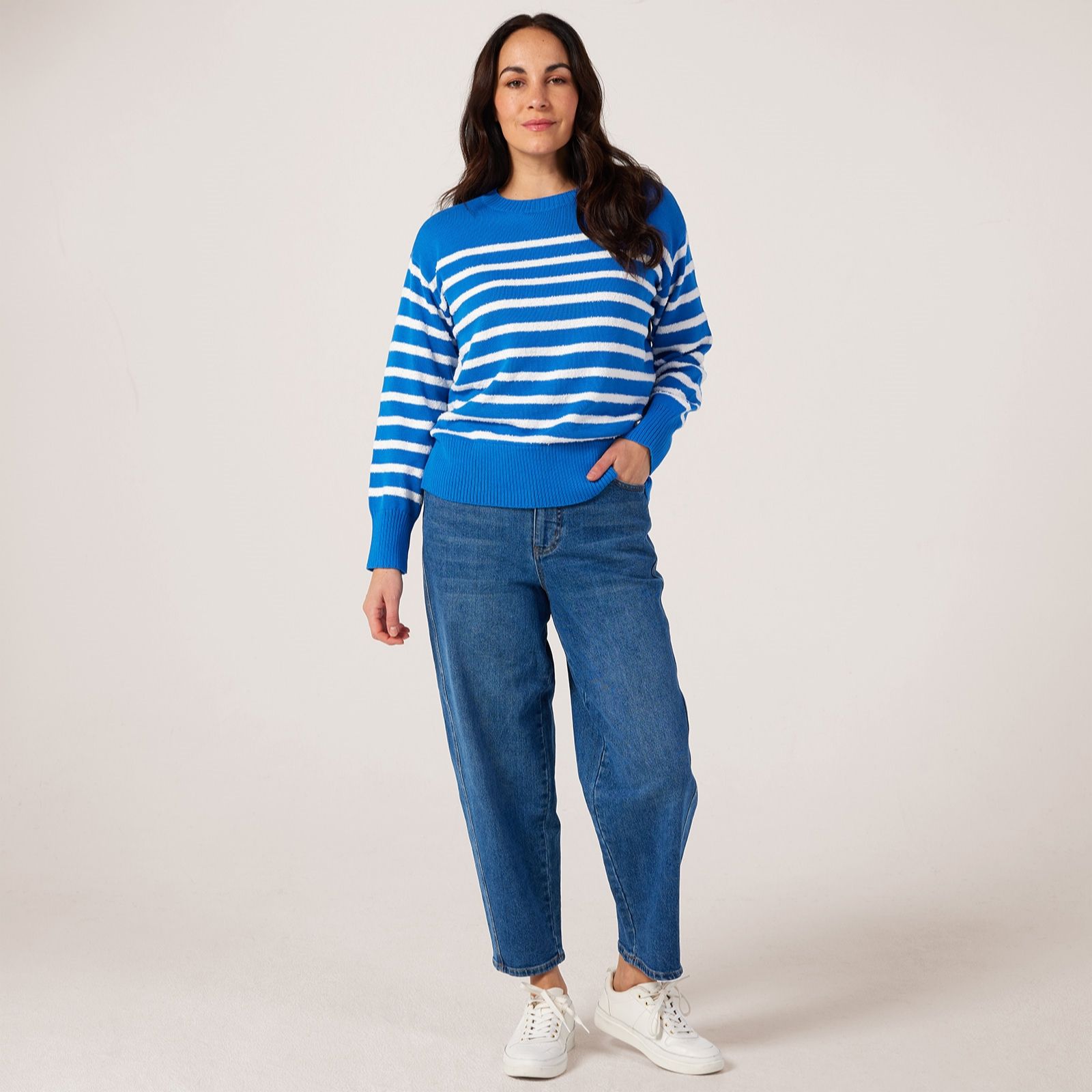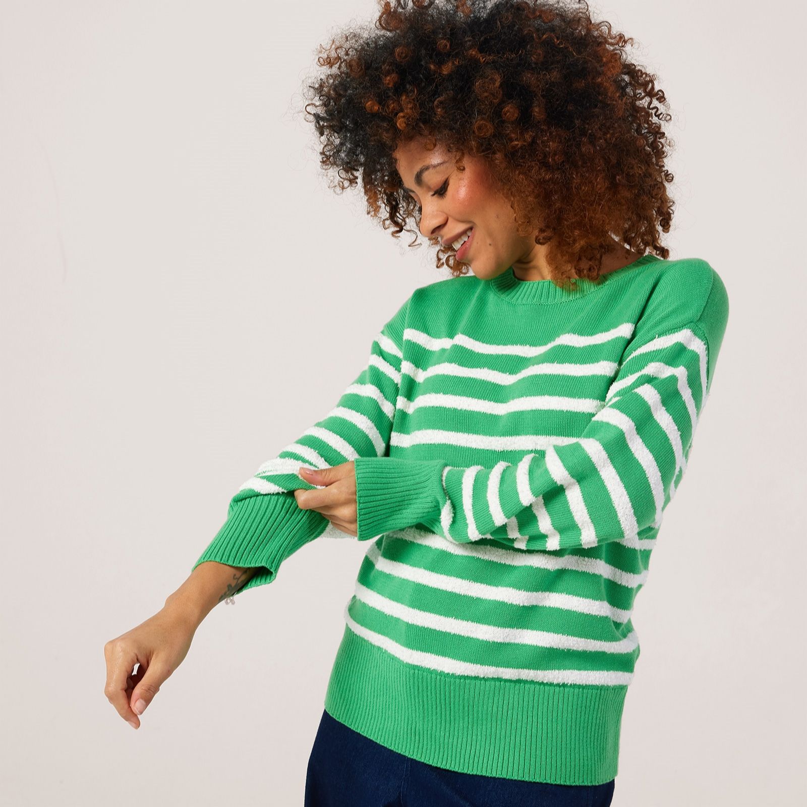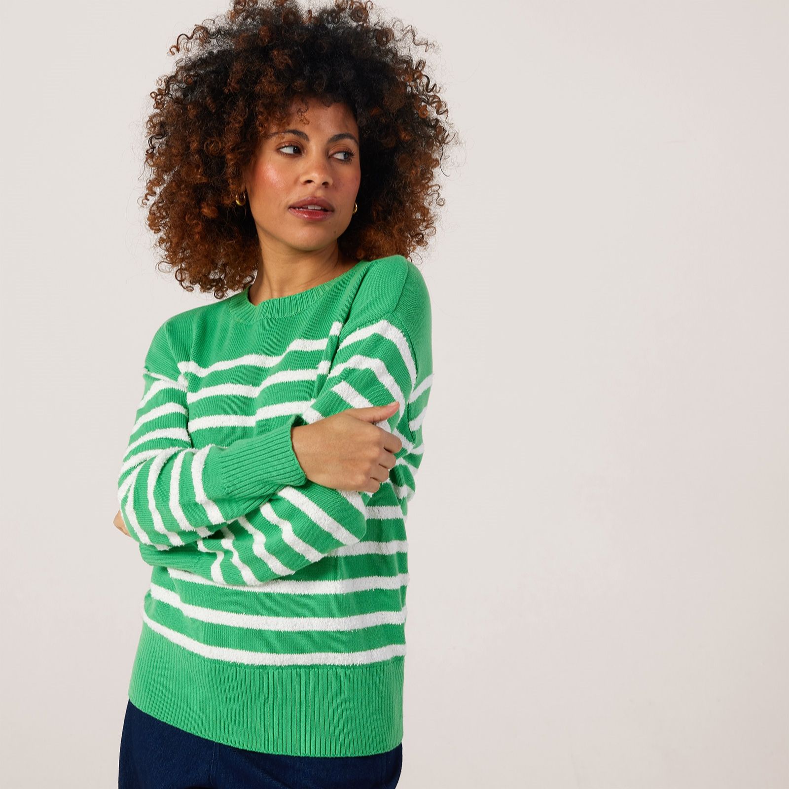 Add a pop of colour to your everyday wardrobe with this boucle stripe jumper from Denim & Co. Crafted with a classic round neckline and long sleeves, its textured stripes offer a fresh twist on a timeless silhouette. Perfect for relaxed weekends, coffee catch-ups or chilly office days, this jumper brings effortless style to any occasion. Team it with your favourite jeans or layer over a shirt for a smart-casual look.