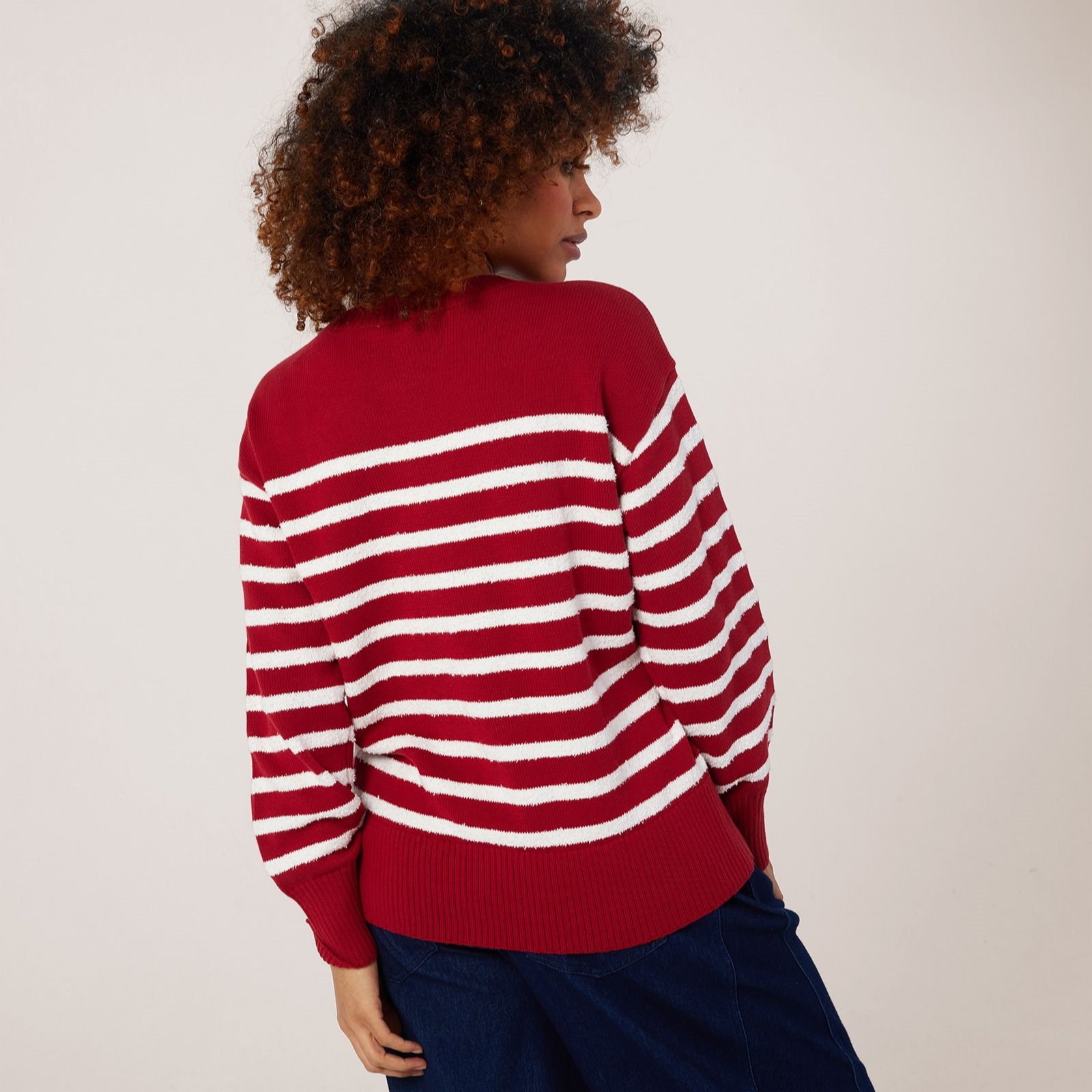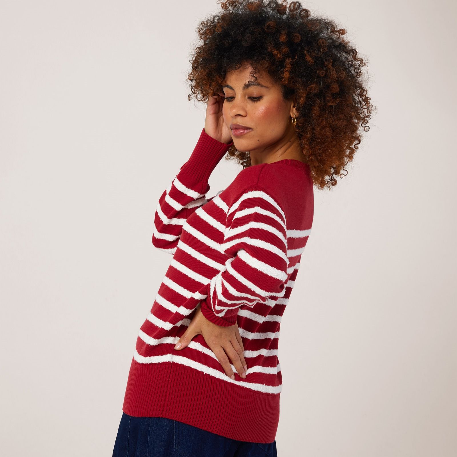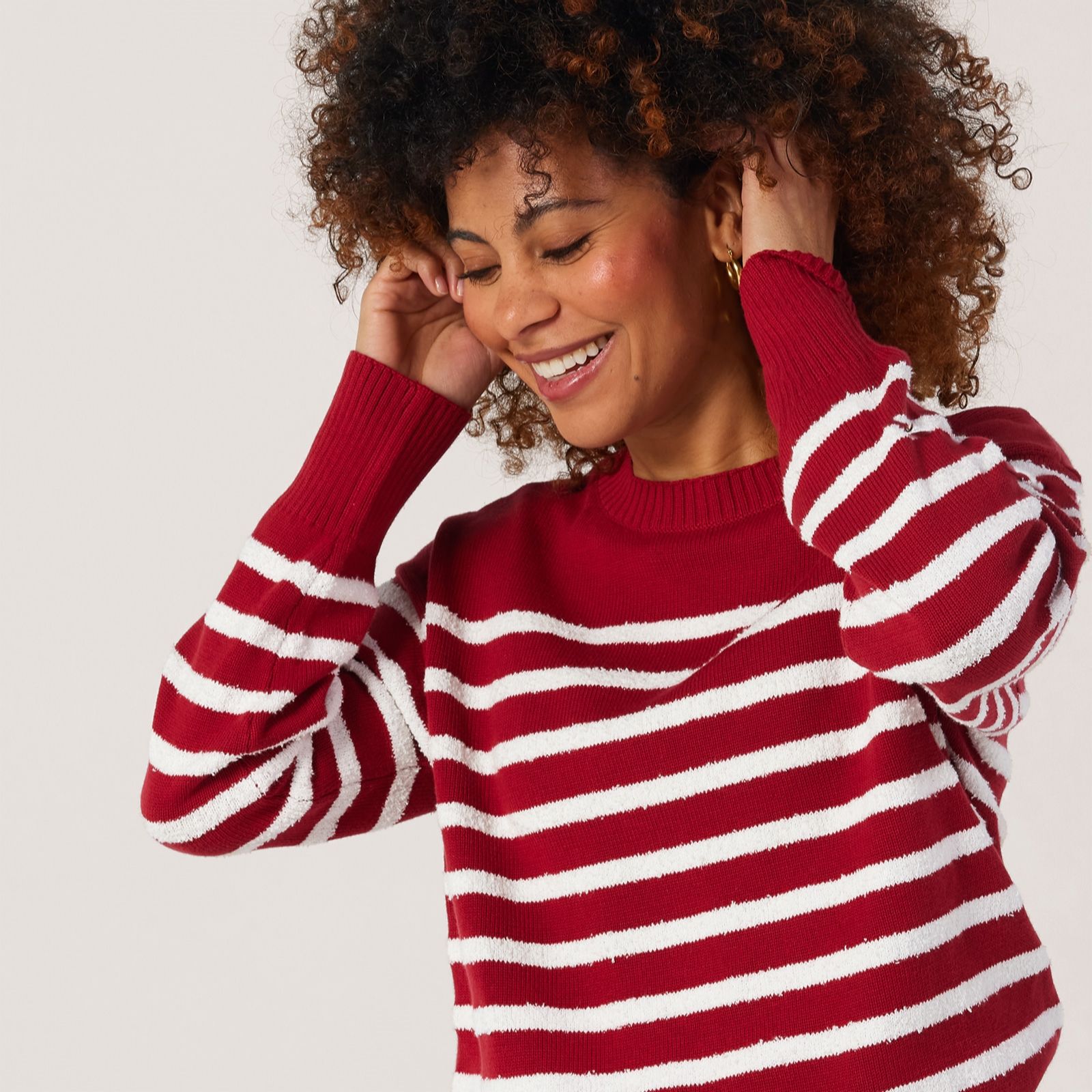 Add a pop of colour to your everyday wardrobe with this boucle stripe jumper from Denim & Co. Crafted with a classic round neckline and long sleeves, its textured stripes offer a fresh twist on a timeless silhouette. Perfect for relaxed weekends, coffee catch-ups or chilly office days, this jumper brings effortless style to any occasion. Team it with your favourite jeans or layer over a shirt for a smart-casual look.