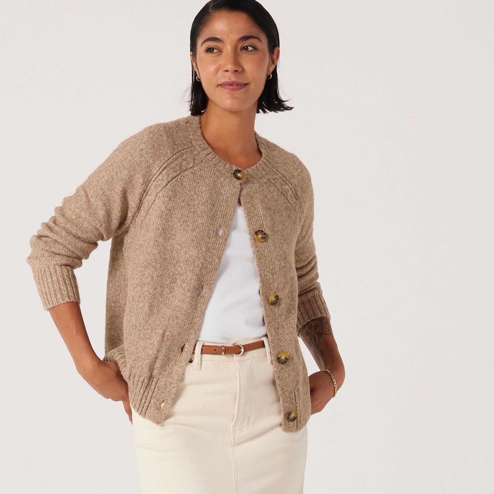 Meet the cardigan you'll wear day in, day out, courtesy of Denim & Co.! With 4% wool content and elegant cable knit details, this versatile cardigan is a chic twist on a classic design, pairing perfectly with any of your favourite outfits. Ideal for the changeable British weather, this luxurious layering staple will become a mainstay in your transitional wardrobe this season.