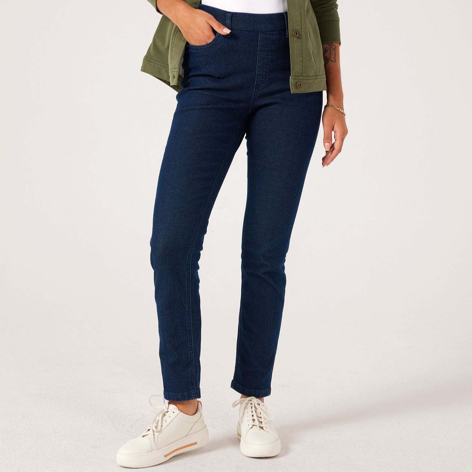 Slip into effortless style with these classic slim straight jeans from Denim & Co., designed to offer a timeless look with just the right touch of stretch for everyday comfort. Perfect for everything from casual outings to smart-casual events, these jeans bring versatility to your wardrobe. Try pairing them with a crisp shirt or a cosy knit for a chic, put-together finish.