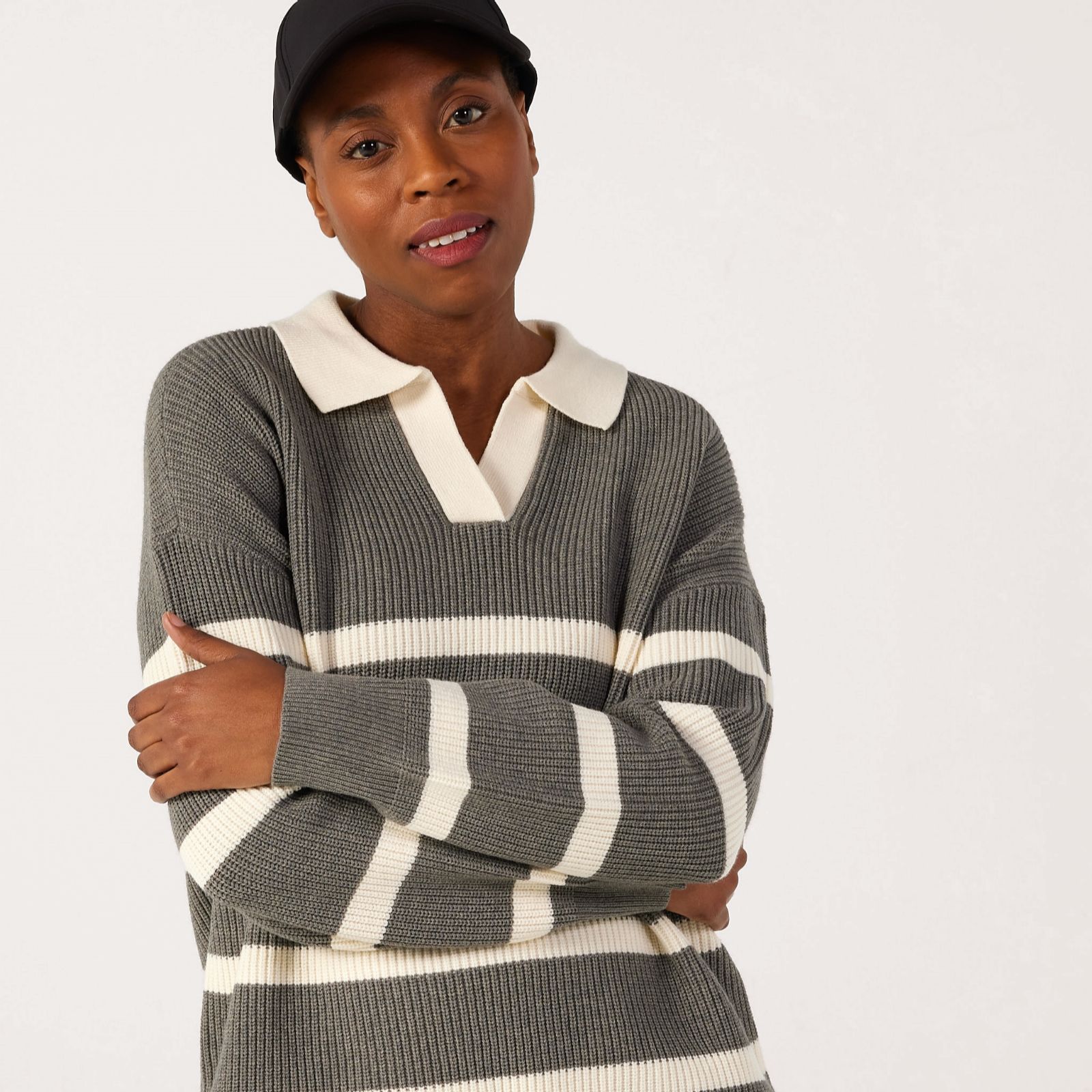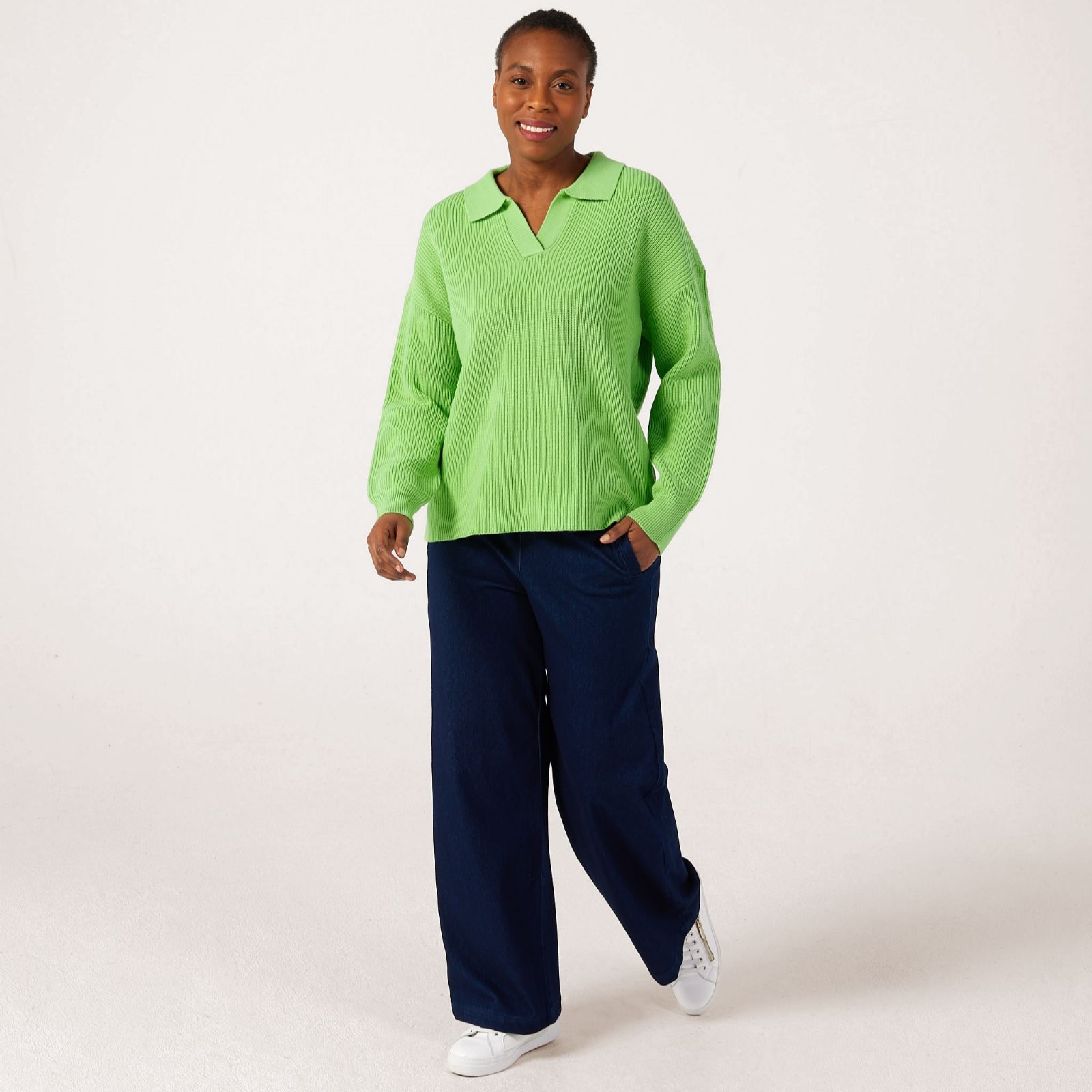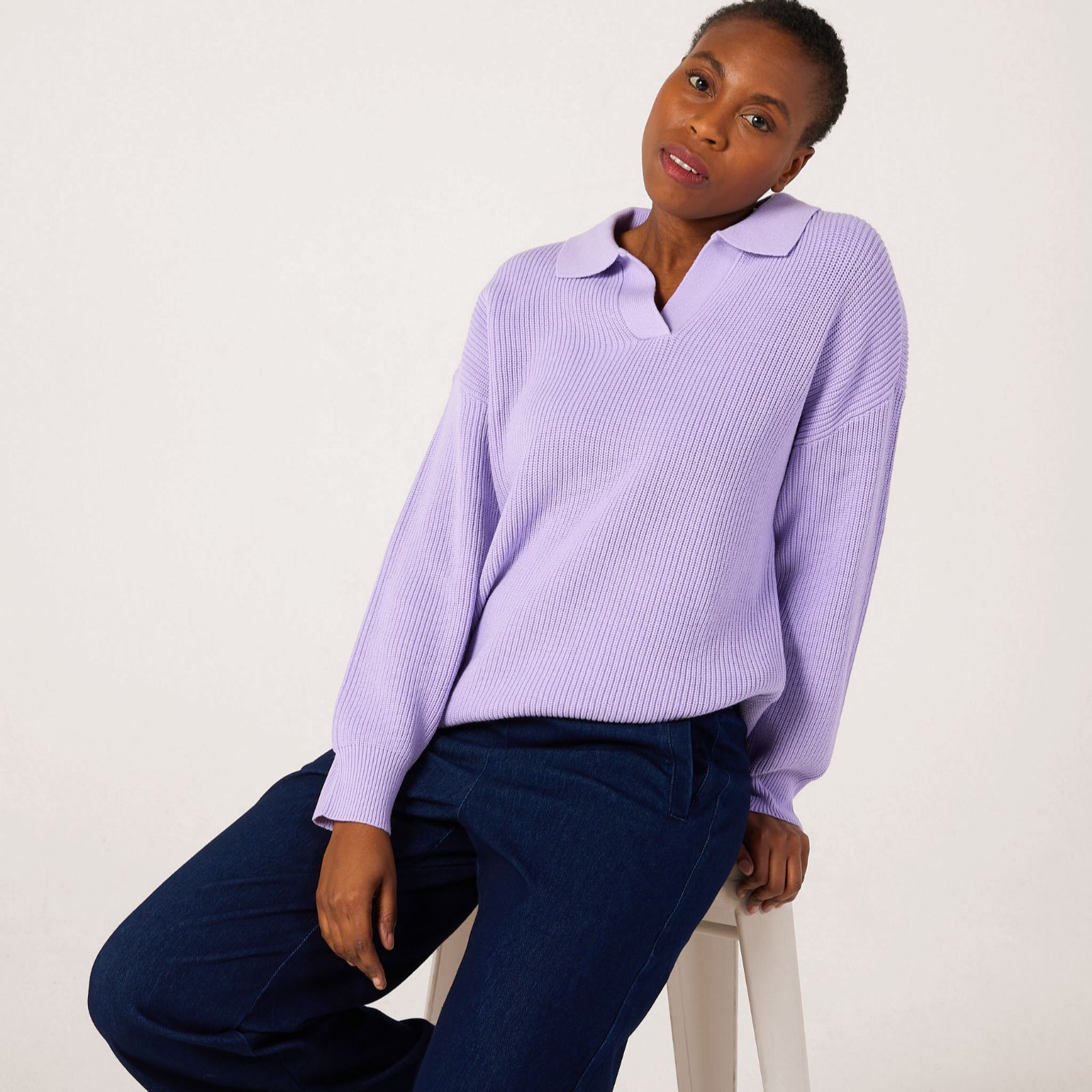 Discover a fresh take on classic knitwear with this collared jumper from Denim & Co., featuring a knitted collar and dropped shoulders. Whether you're heading to brunch, enjoying a stroll in the park, or elevating your workday wardrobe, this jumper brings a polished yet relaxed vibe to any setting. Pair it with tailored trousers or your favourite jeans for a look that's effortlessly chic and versatile.