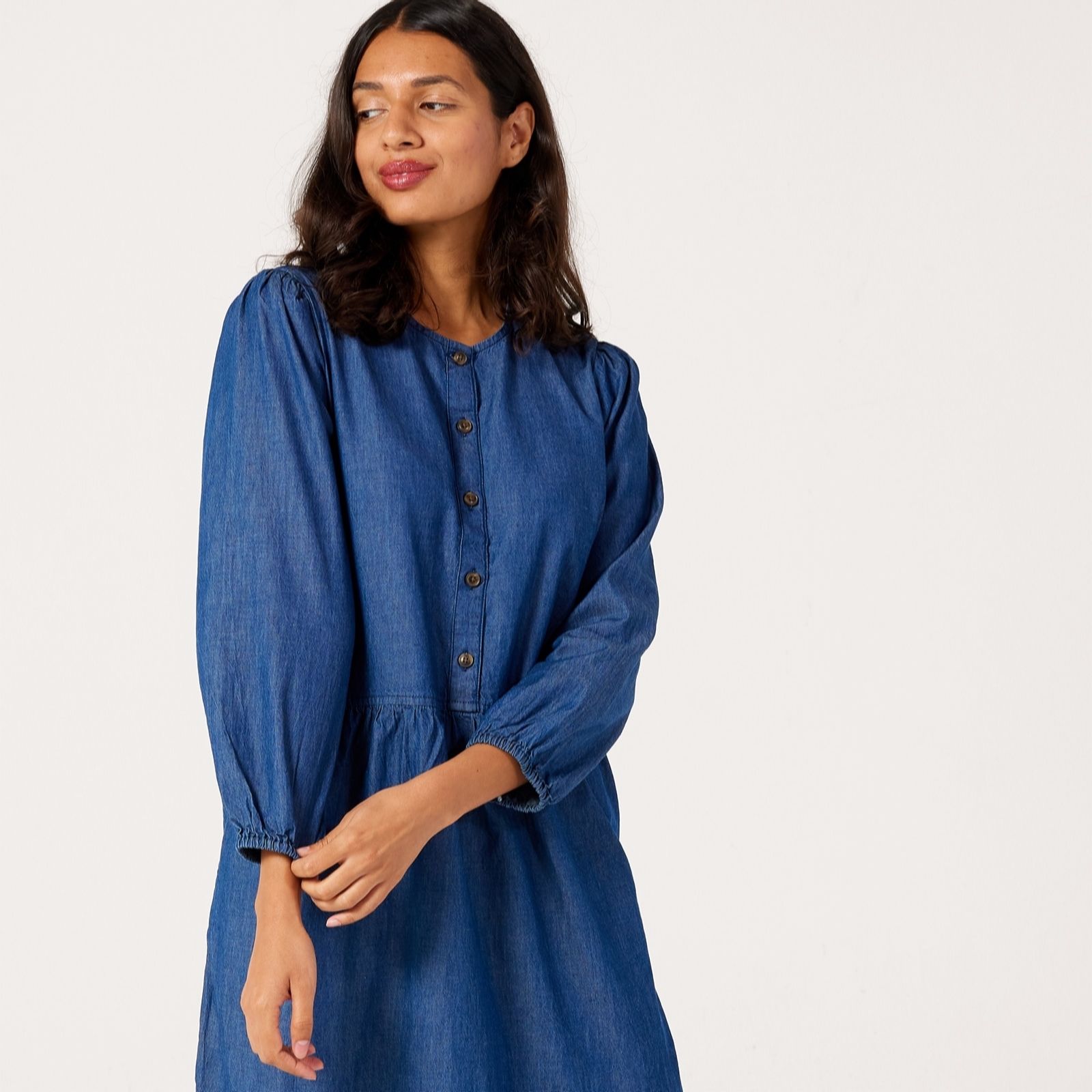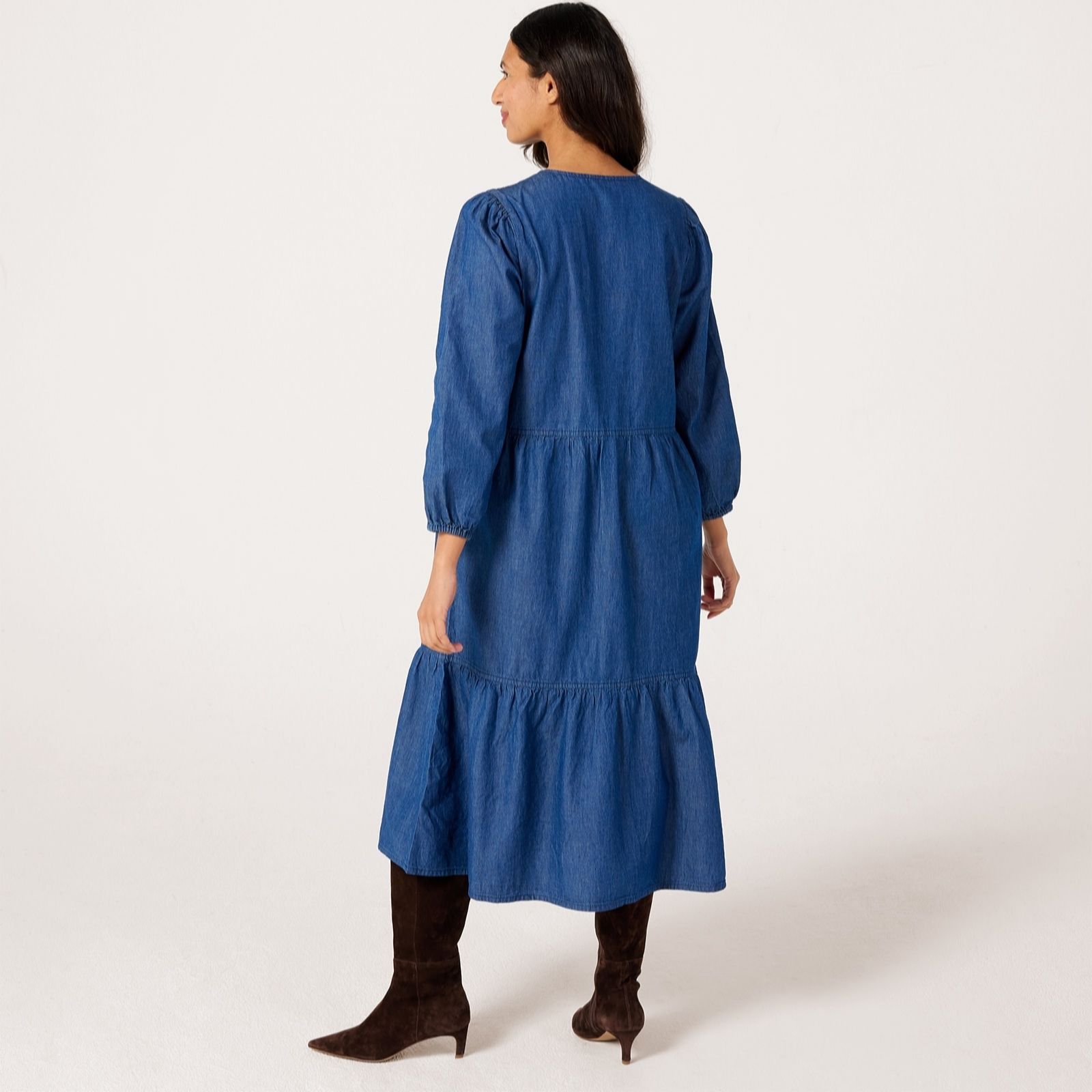 Slip into effortless style with this petite tiered midi dress from Denim & Co., where a softly structured silhouette and gentle gathering create a look that's as easy-going as it is flattering. Ideal for relaxed weekends, holidays or casual get-togethers, this dress transitions seamlessly from day to evening. Pair with trainers for a laid-back vibe or dress it up with statement jewellery and sandals.