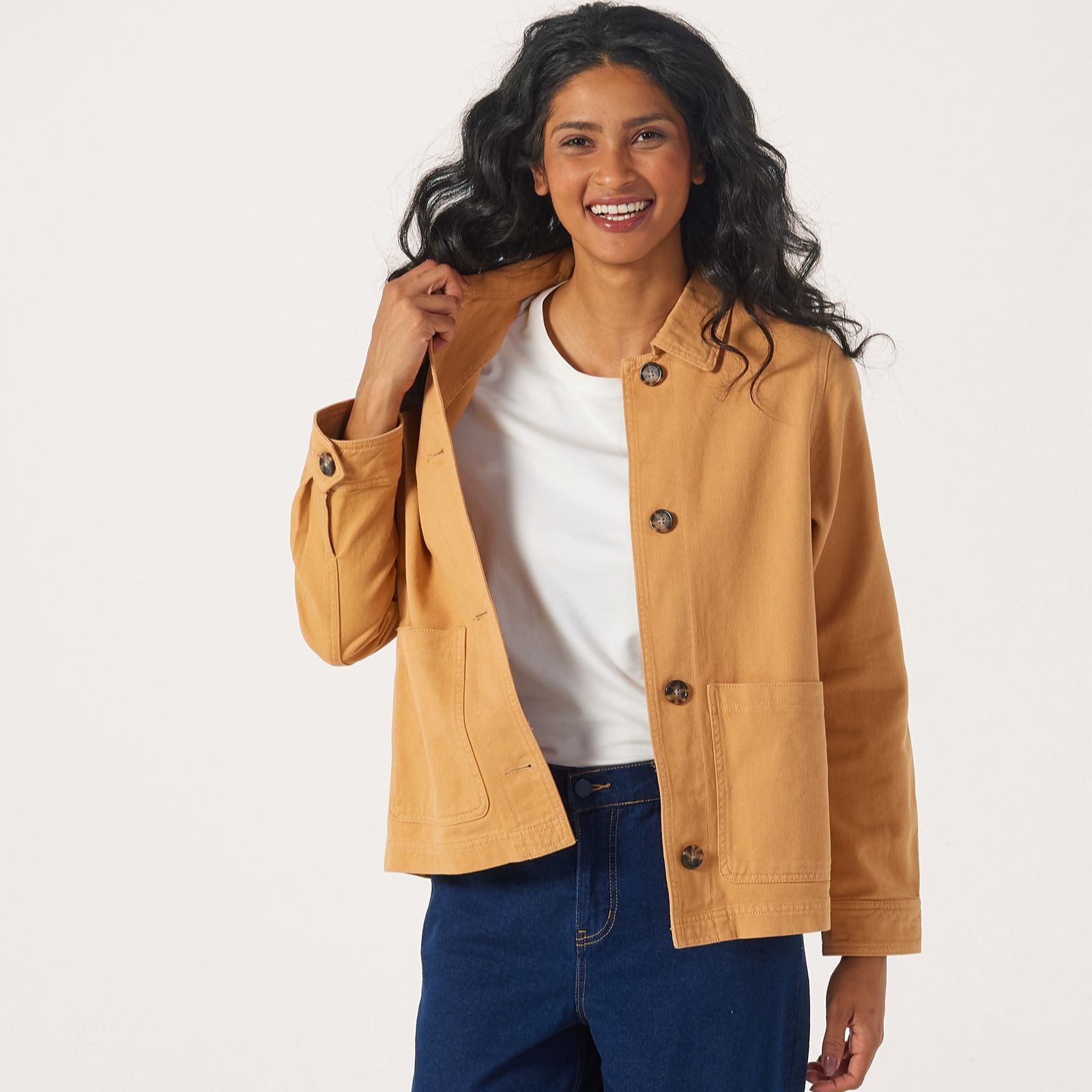 Discover the perfect unlined utility jacket from Denim & Co. This jacket mixes comfort with great design and features buttons that can be un-popped for a relaxed look or buttoned up if preferred. With its long sleeves and collar, this soft cotton jacket offers versatile solutions for a broad age of women. Whether you're heading out for a casual gathering or want to layer up in colder weather, this jacket will complement many outfits and can be dressed up as well.