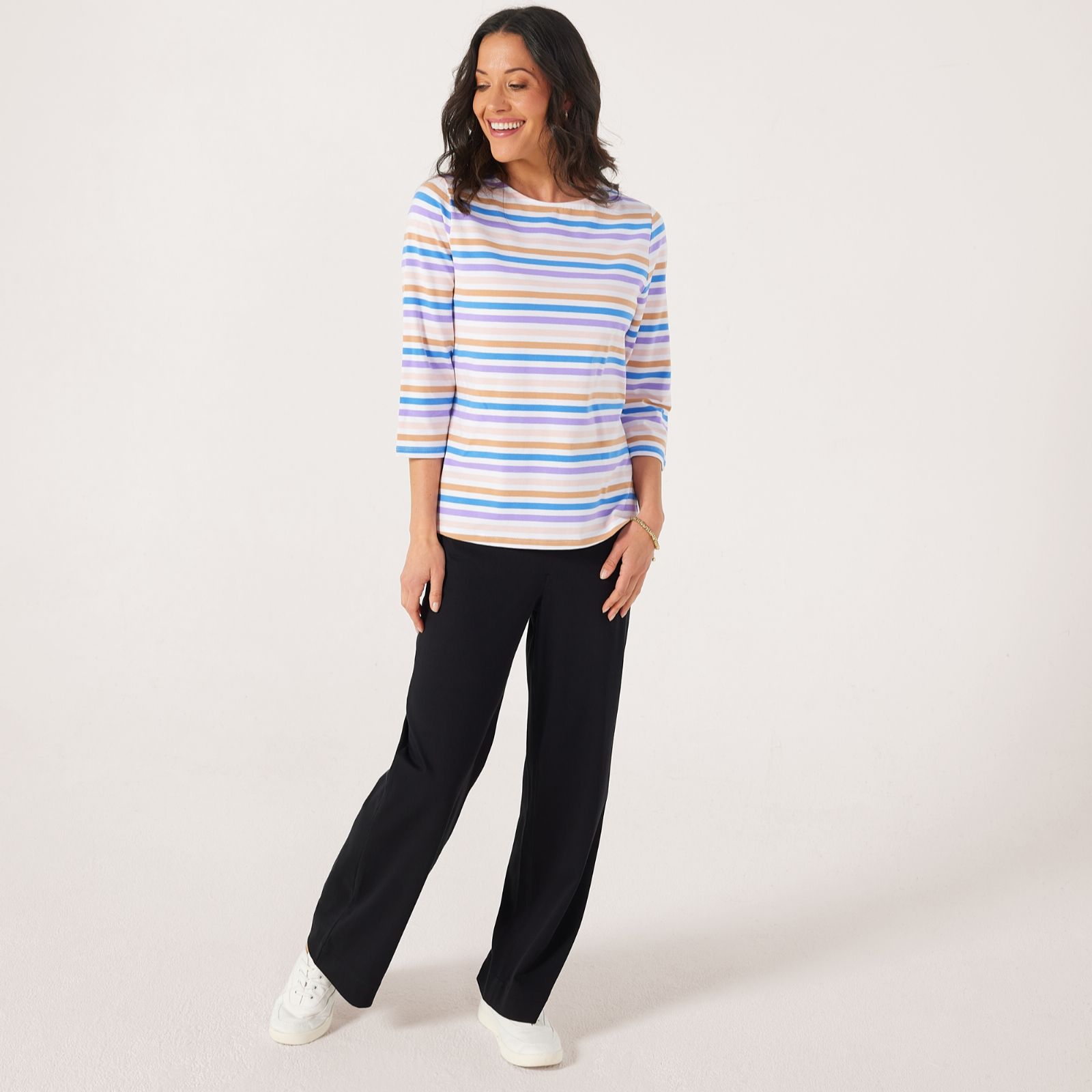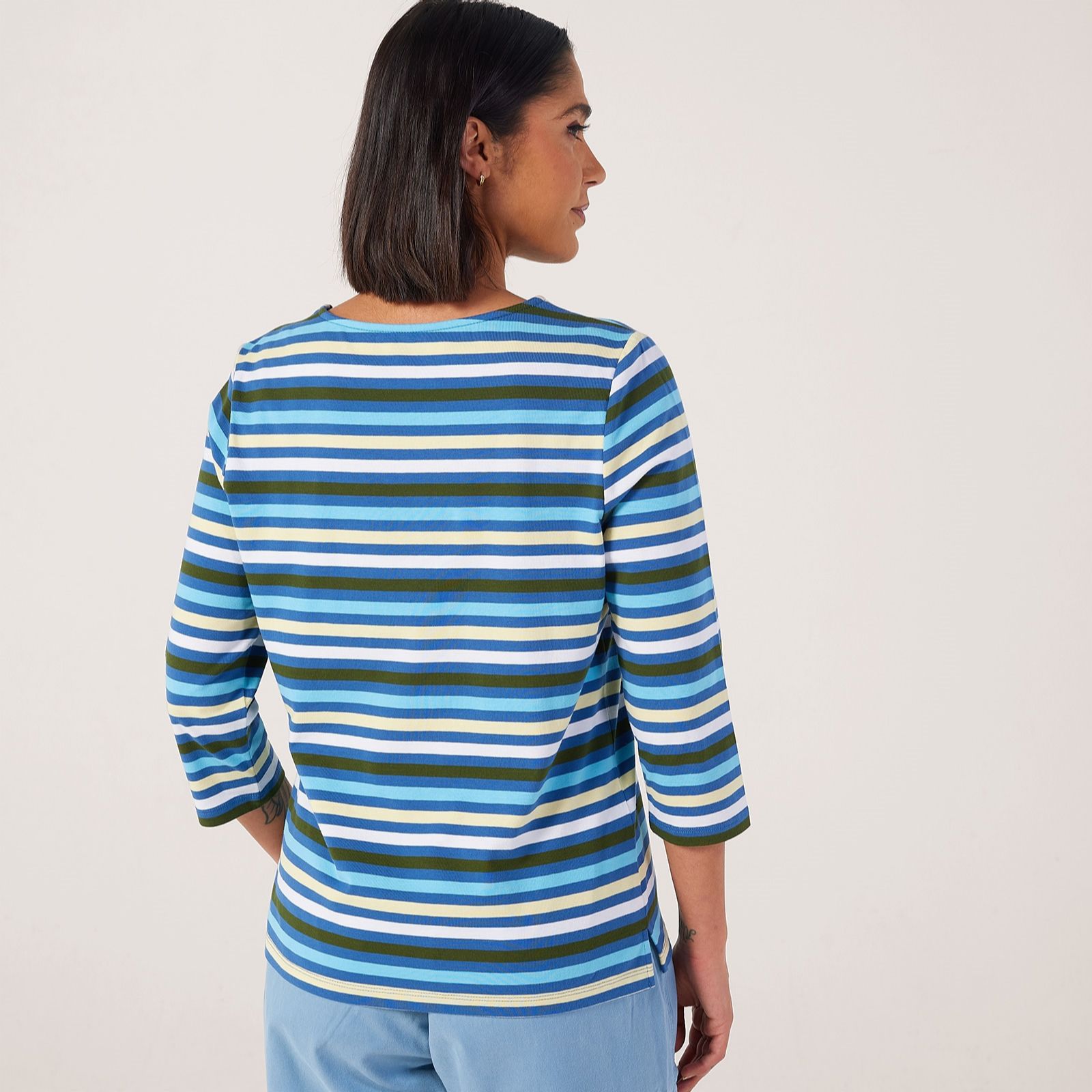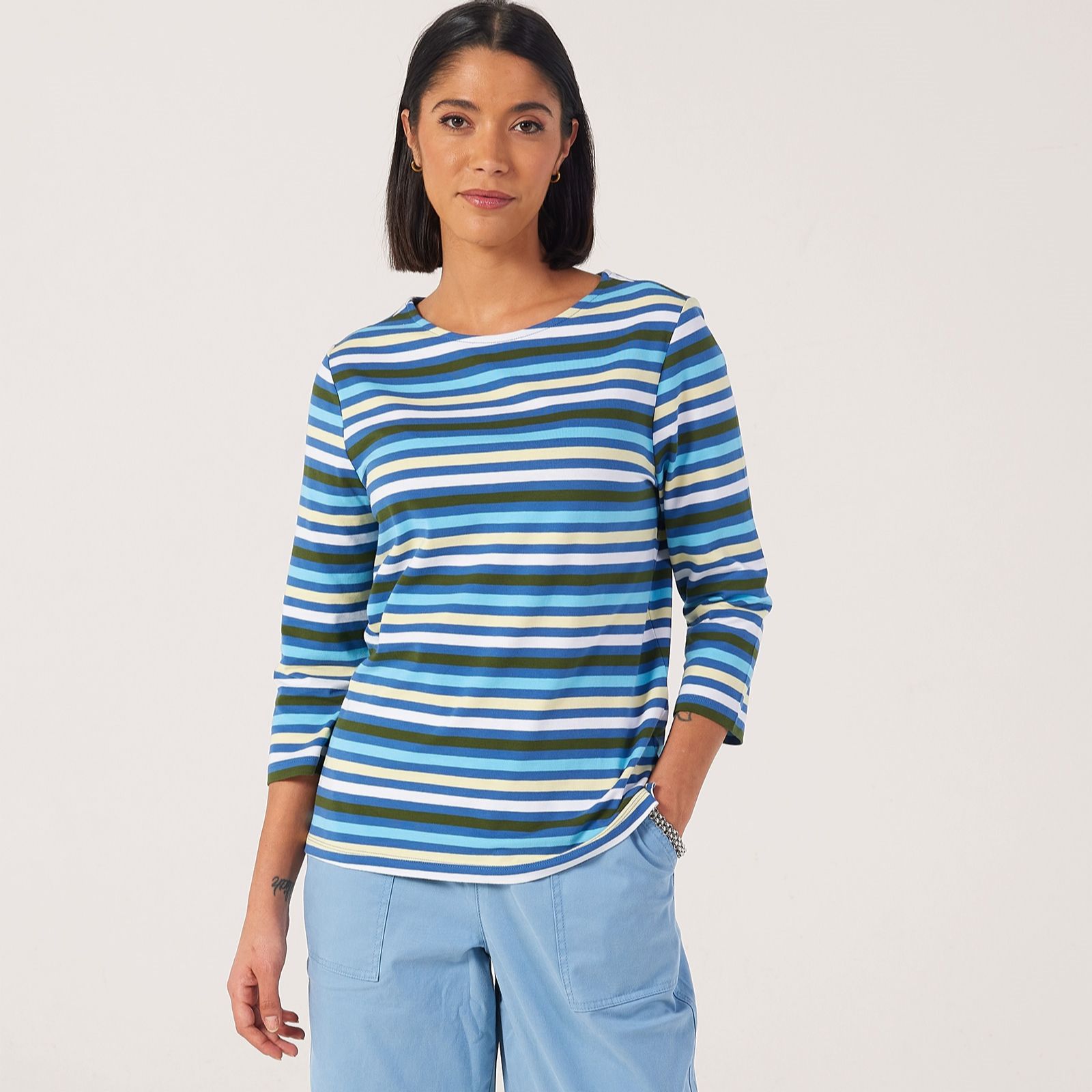 Add a striped staple to your wardrobe with this essential boat neck top from Denim & Co. Designed in a semi-relaxed fit, it brings a timeless nautical charm to your everyday style. Whether you're heading out for a casual brunch or relaxing at home, this easy-going top offers comfort and chic appeal. Pair it with cropped jeans and trainers for a laid-back weekend look that never goes out of style.