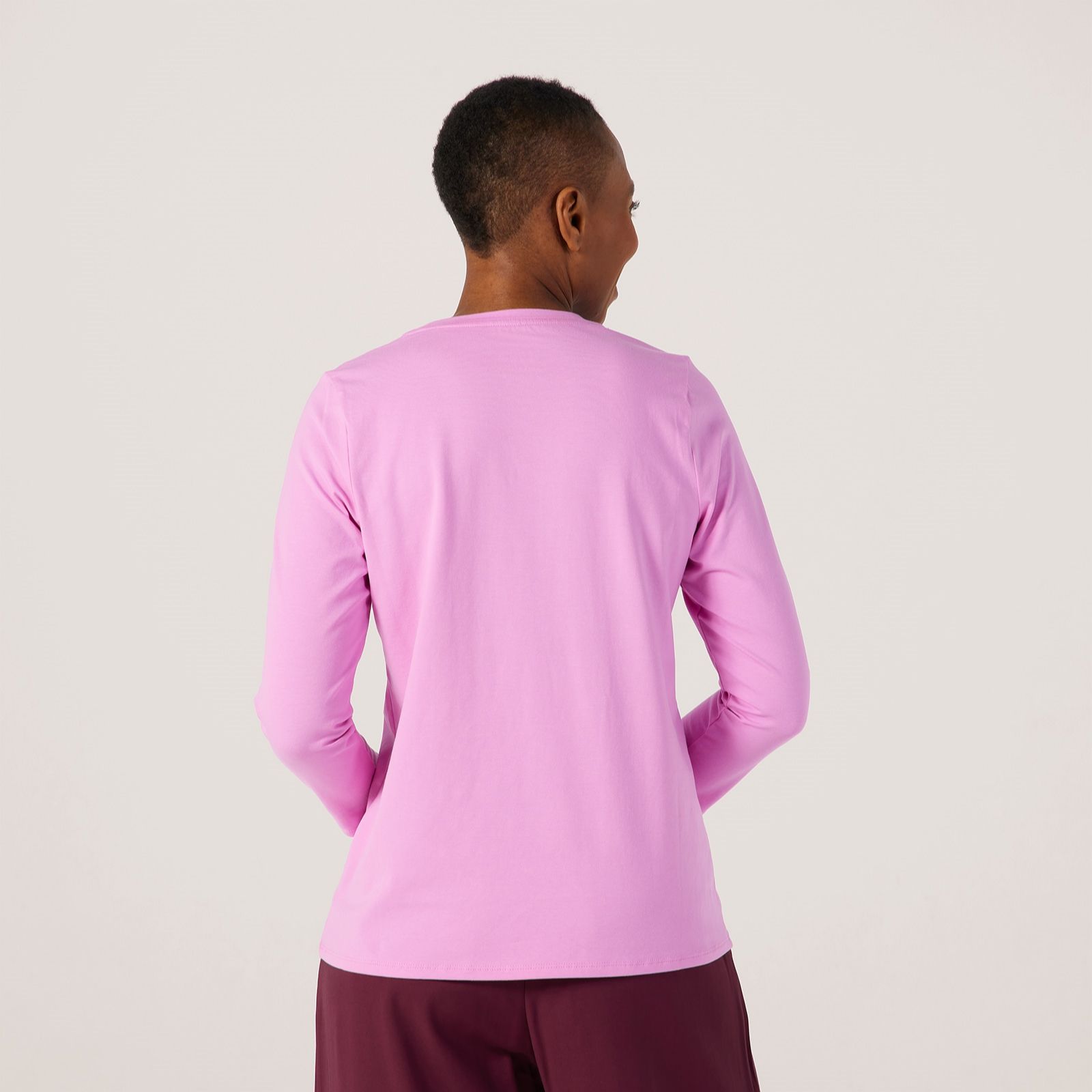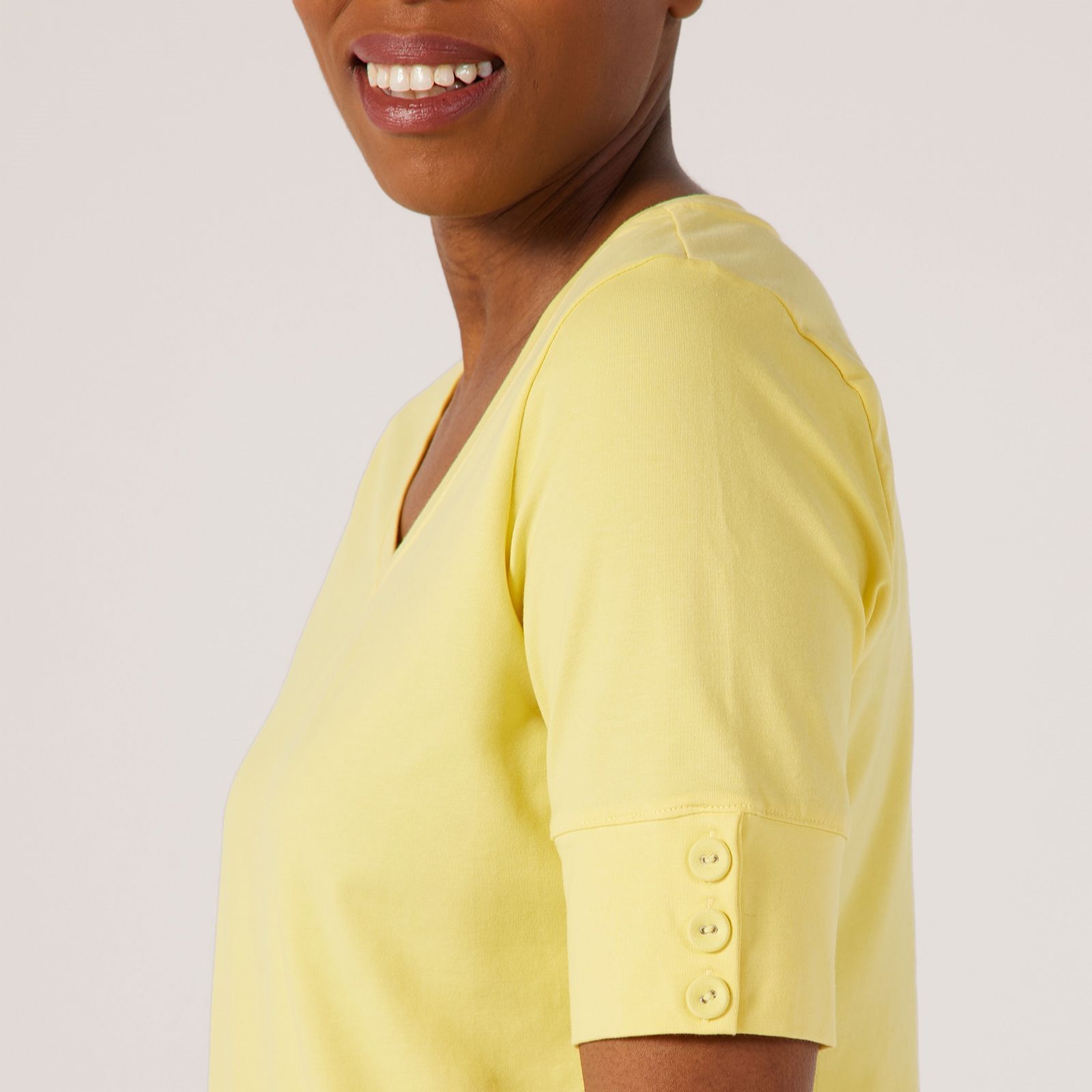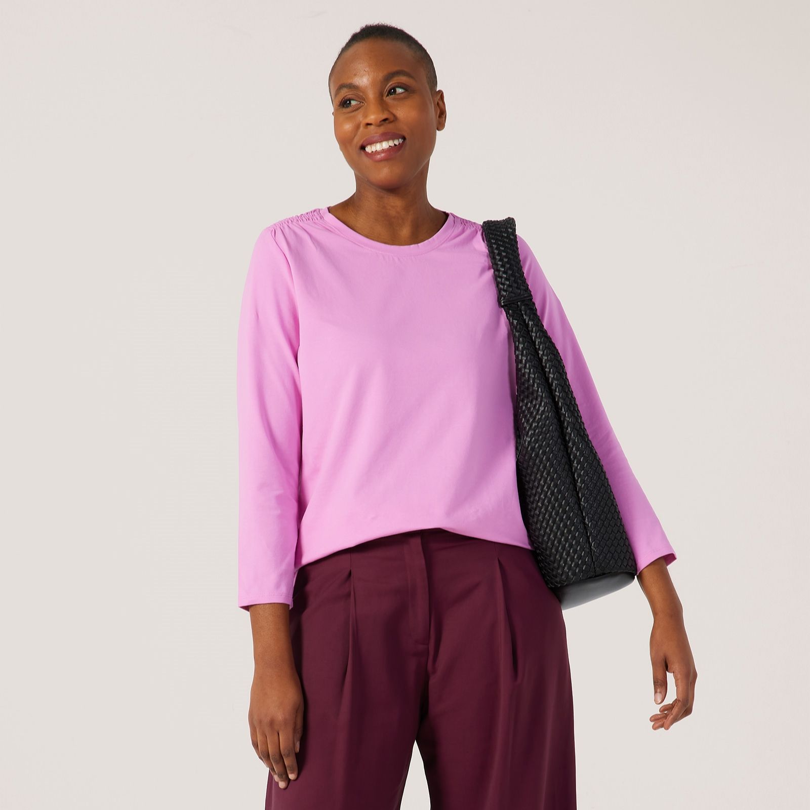 Slip into everyday comfort with the Essentials bracelet sleeve top from Denim & Co., designed in their signature Perfect Jersey fabric with flattering ruching at the sleeves for a touch of feminine detail. Its semi-fitted shape follows your figure with ease, making it an ideal choice for everything from casual coffee dates to layering under blazers for work. Pair it with your favourite jeans or a midi skirt for an effortlessly chic look.