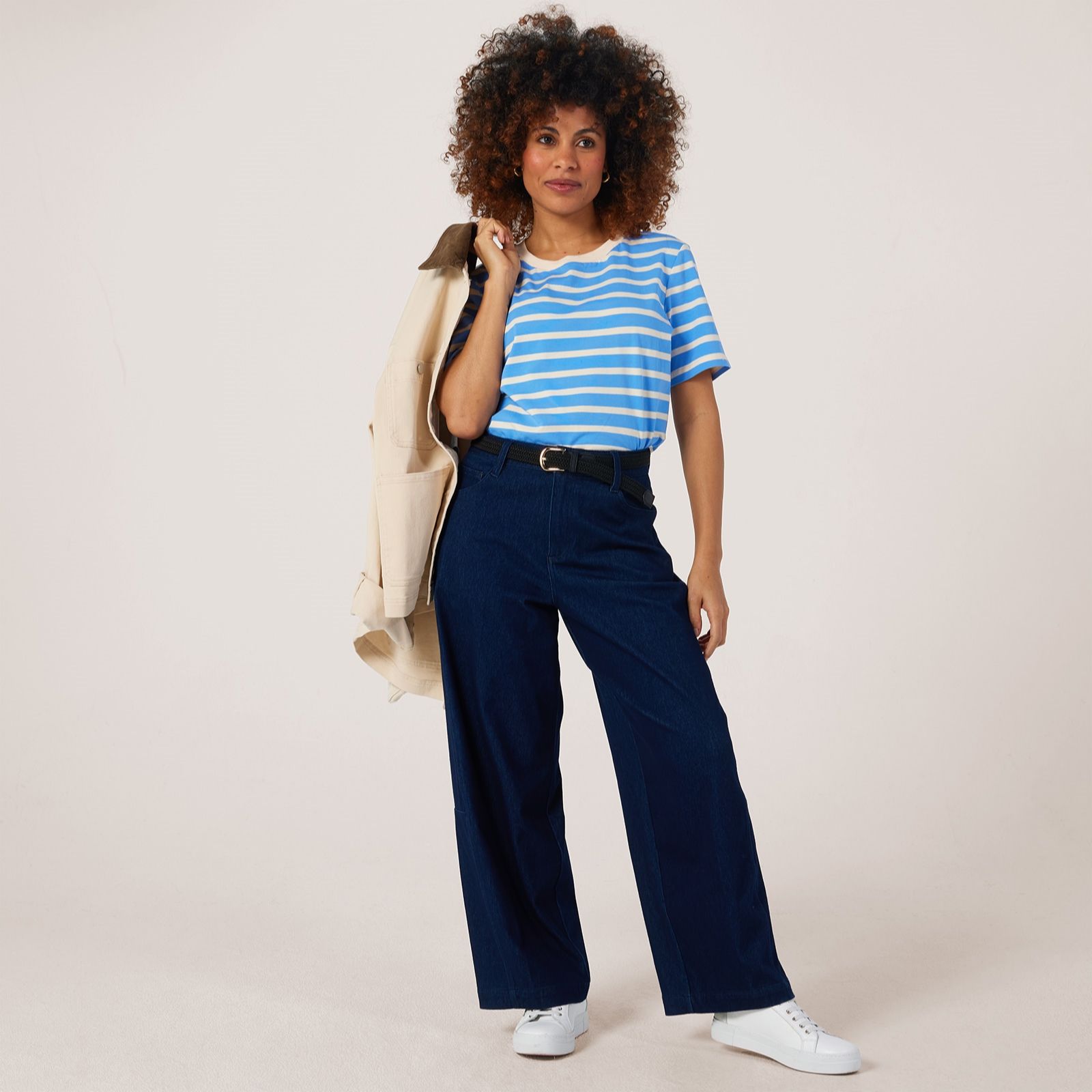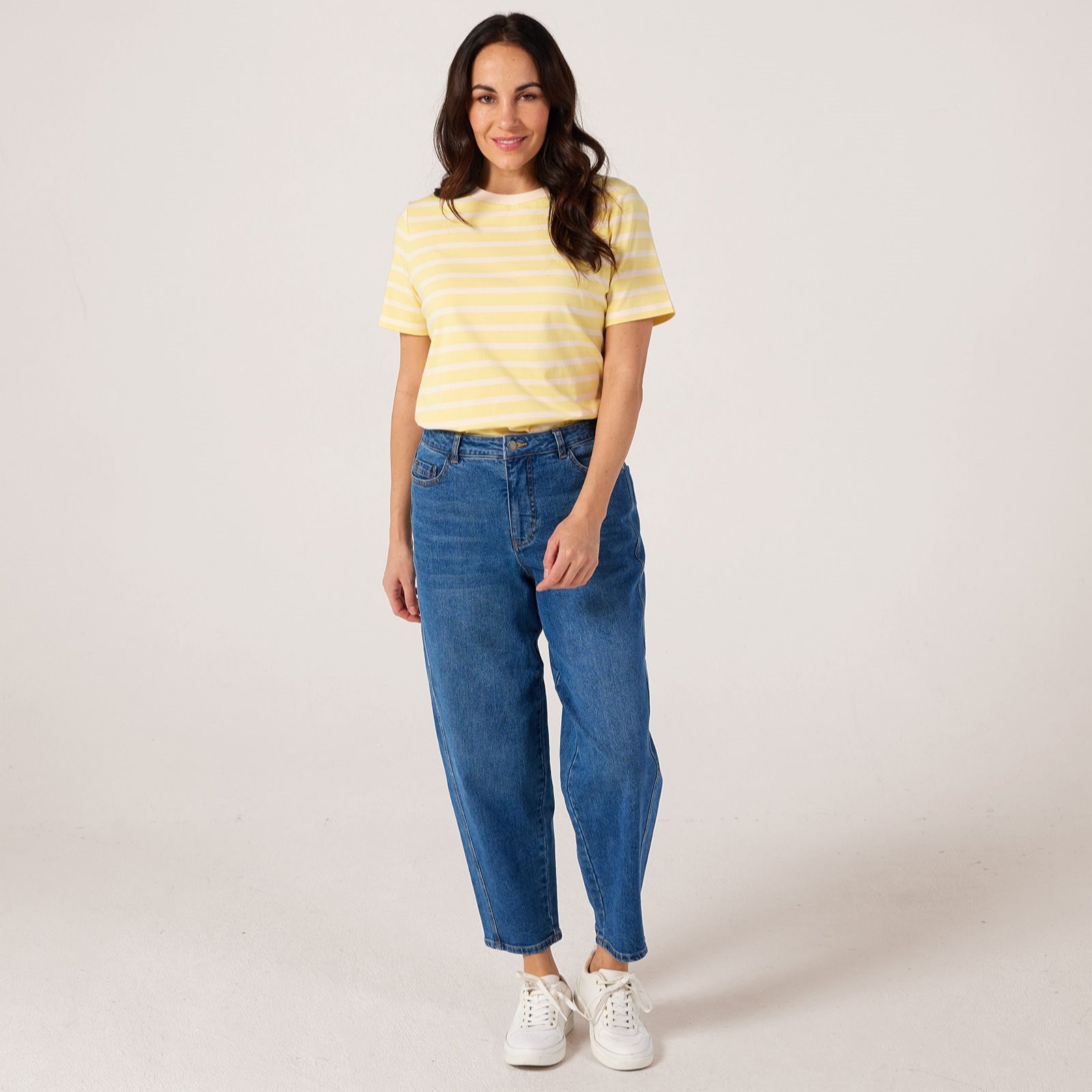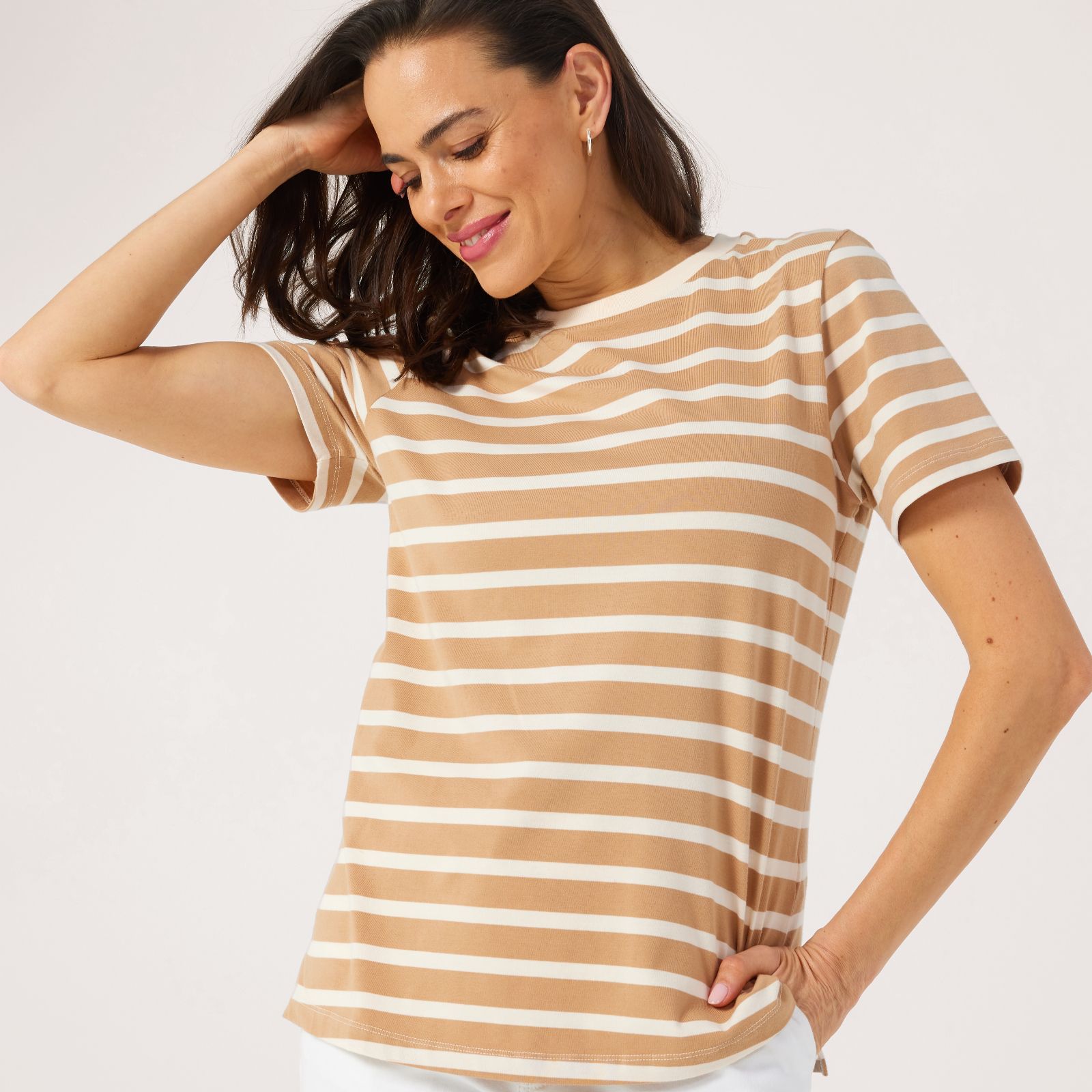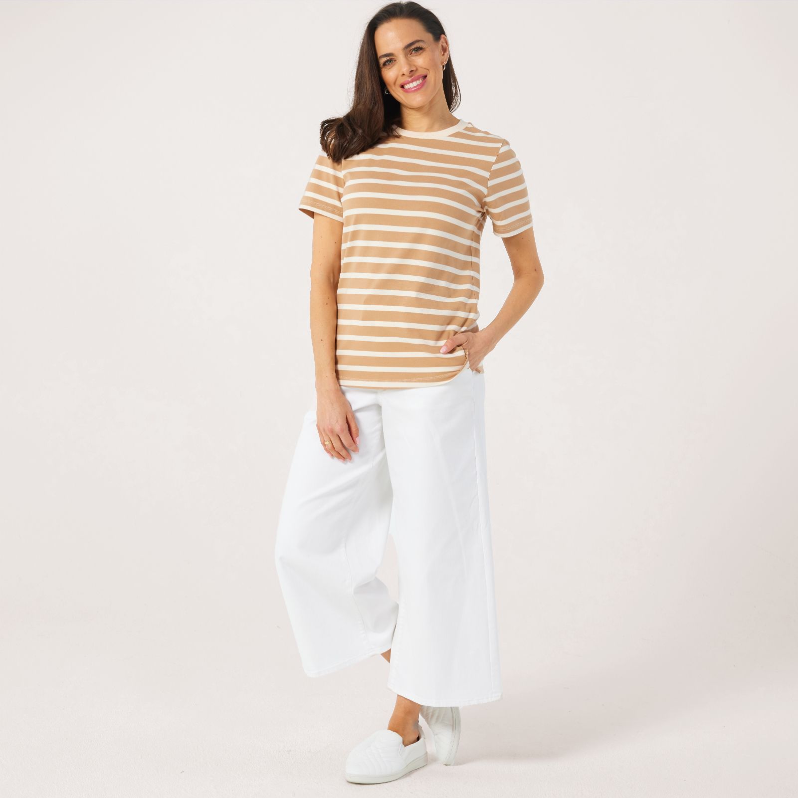 Denim & Co. Essentials Crew Neck Yarn Dyed Striped-Shirt