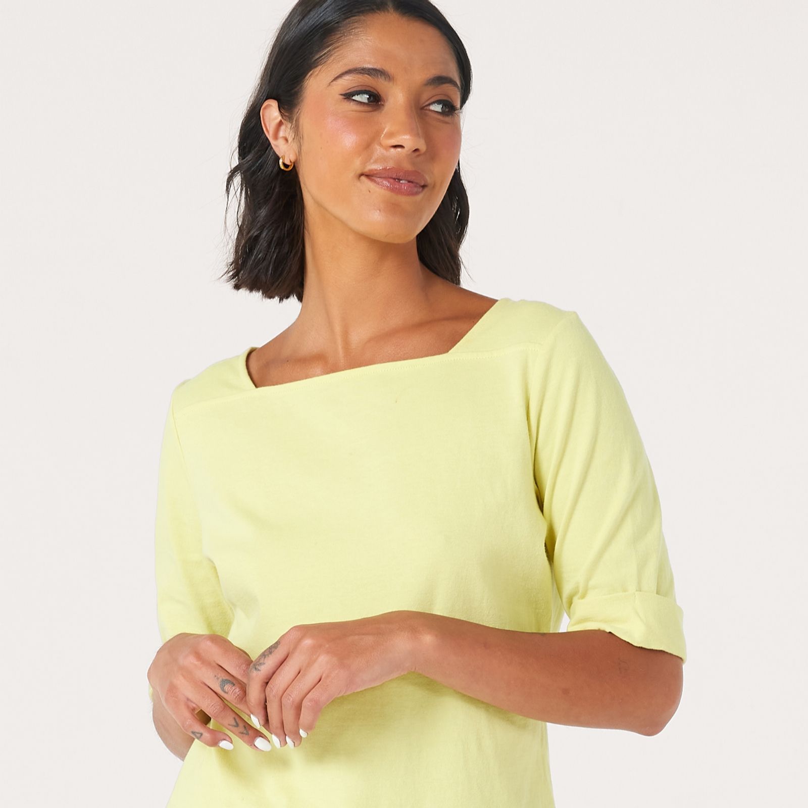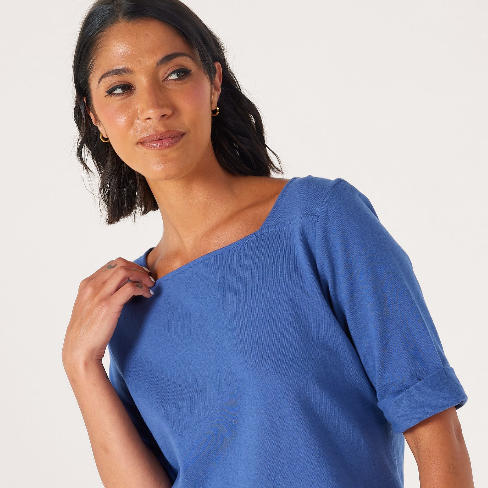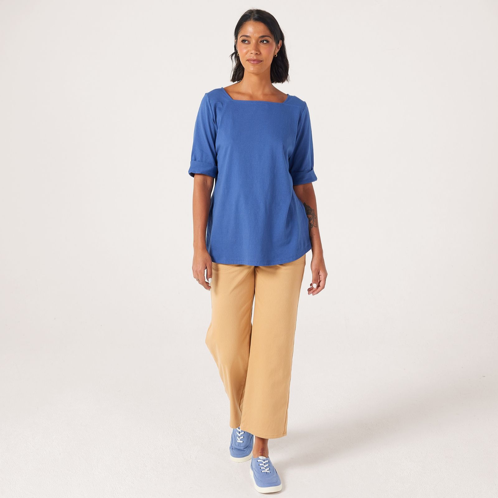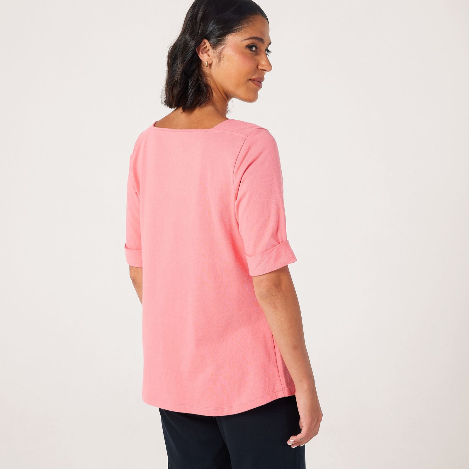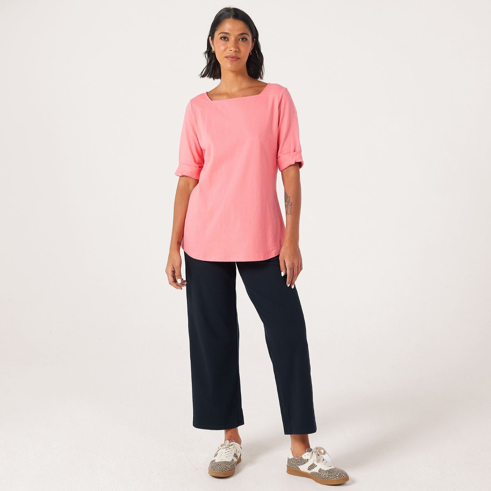 Refresh your everyday wardrobe with the understatedly chic boat neck top from Denim & Co. Essentials. Designed with elbow-length sleeves and a semi-fitted silhouette, this transitional top offers a sleek shape that's perfect for both casual days and smart-casual outings. Pair it with tailored trousers for a polished look or team it with jeans for relaxed weekend style.